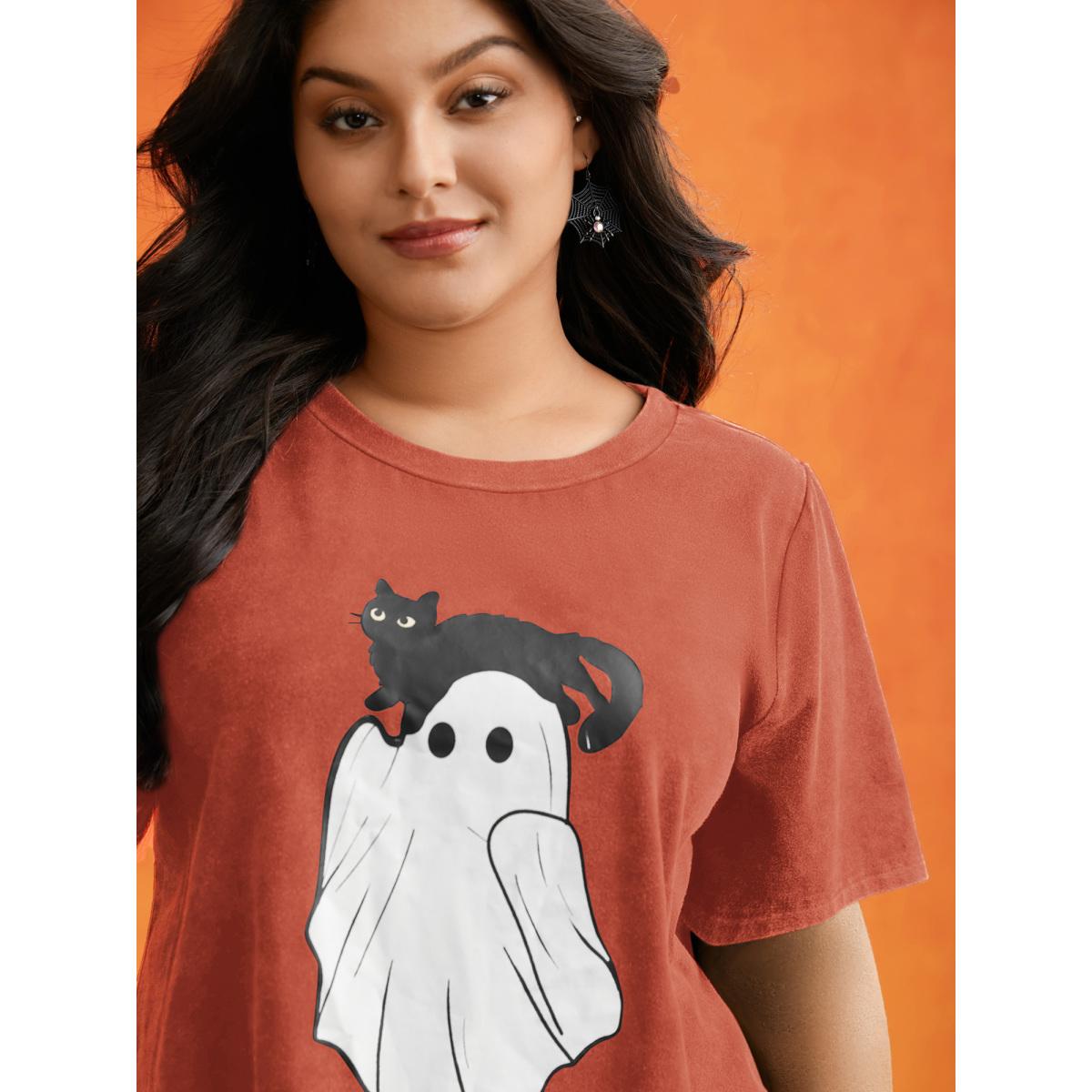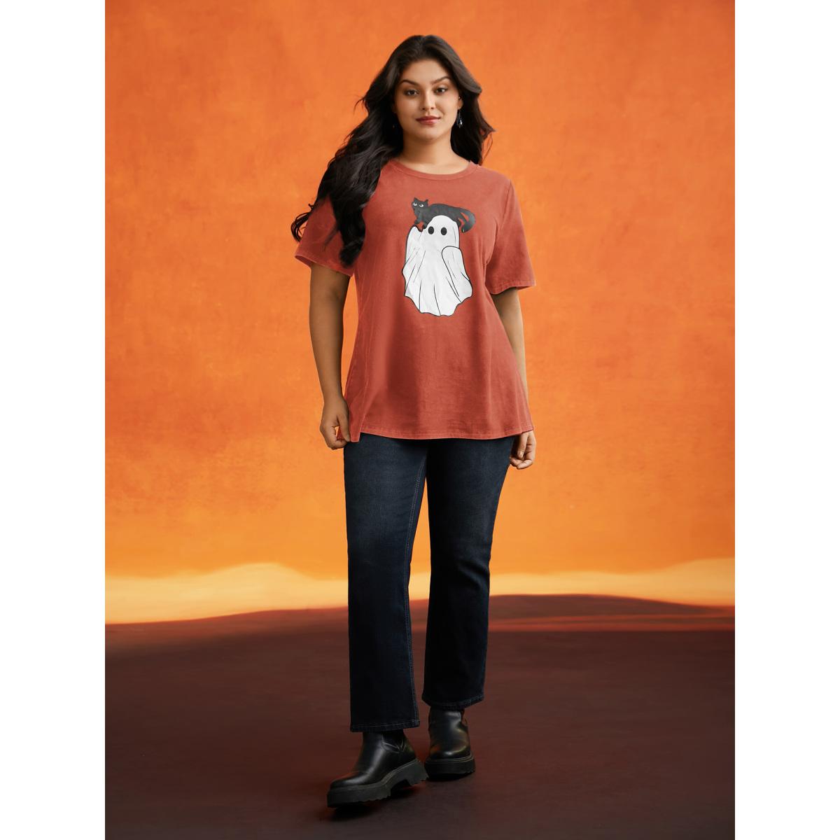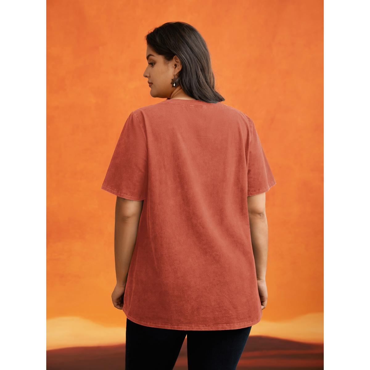 Plus Size Cotton Hide And Seek Washed Effect T-shirt Brightorange Women Casual Non Halloween Round Neck Everyday T-shirts BloomChic 26/4X
