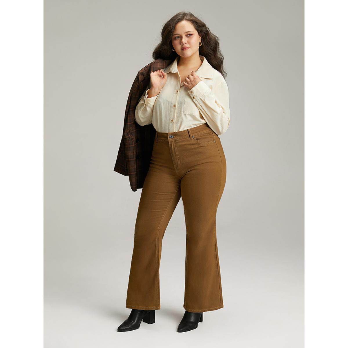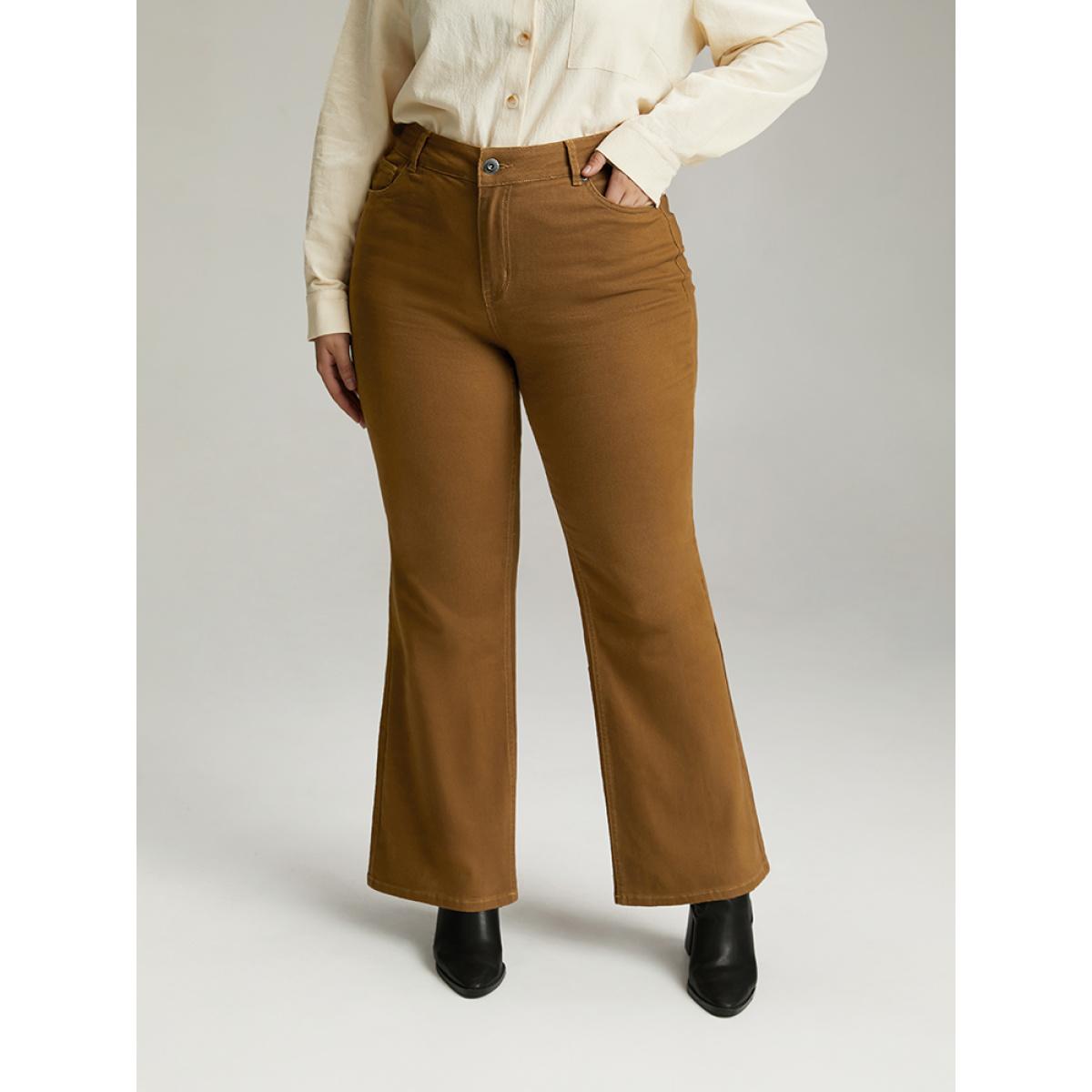 Plus Size Cotton Plain Color Wash Bootcut Jeans Women Bronze Casual Plain Plain High stretch Pocket Jeans BloomChic 20/2X