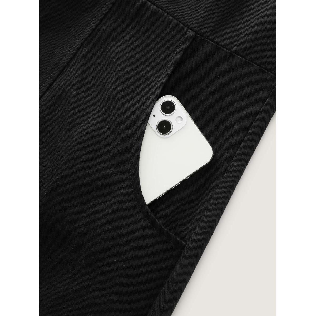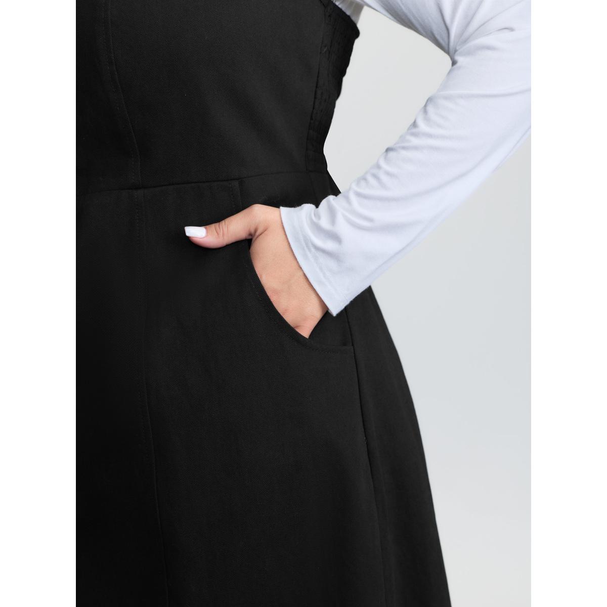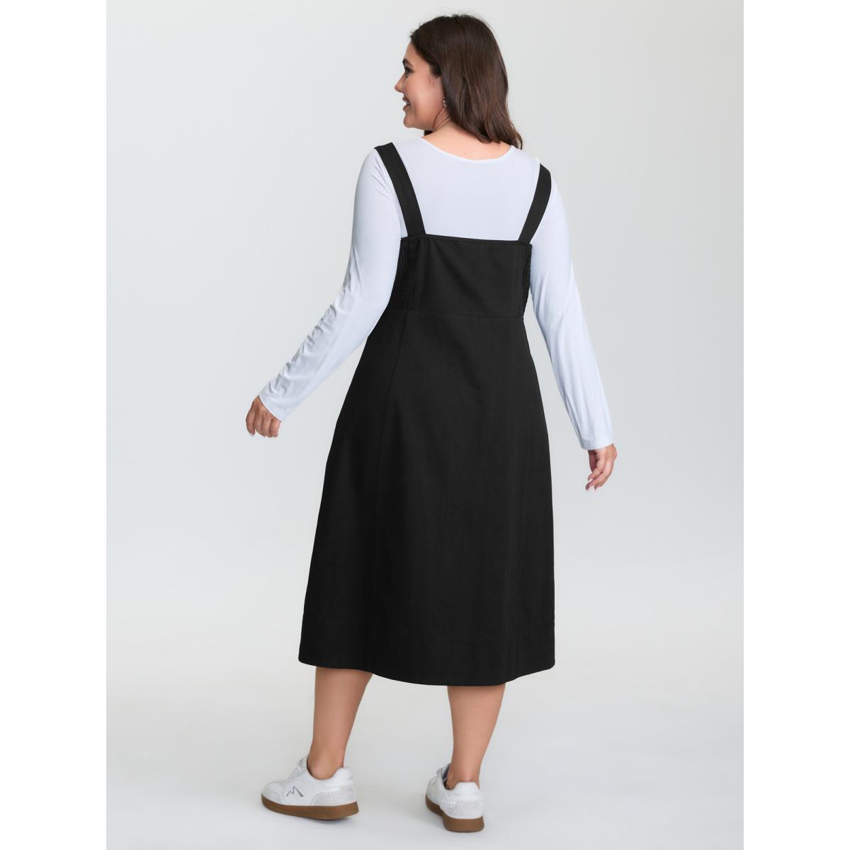 Plus Size Pure Cotton Diagonal Pockets Midi Dress Black Women Leisure Button Square Neck Sleeveless Curvy BloomChic 22-24/3X