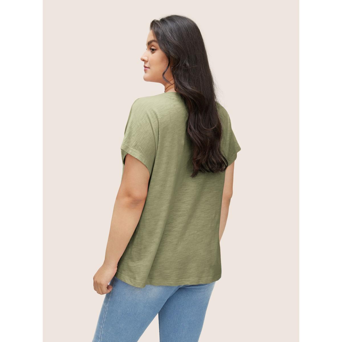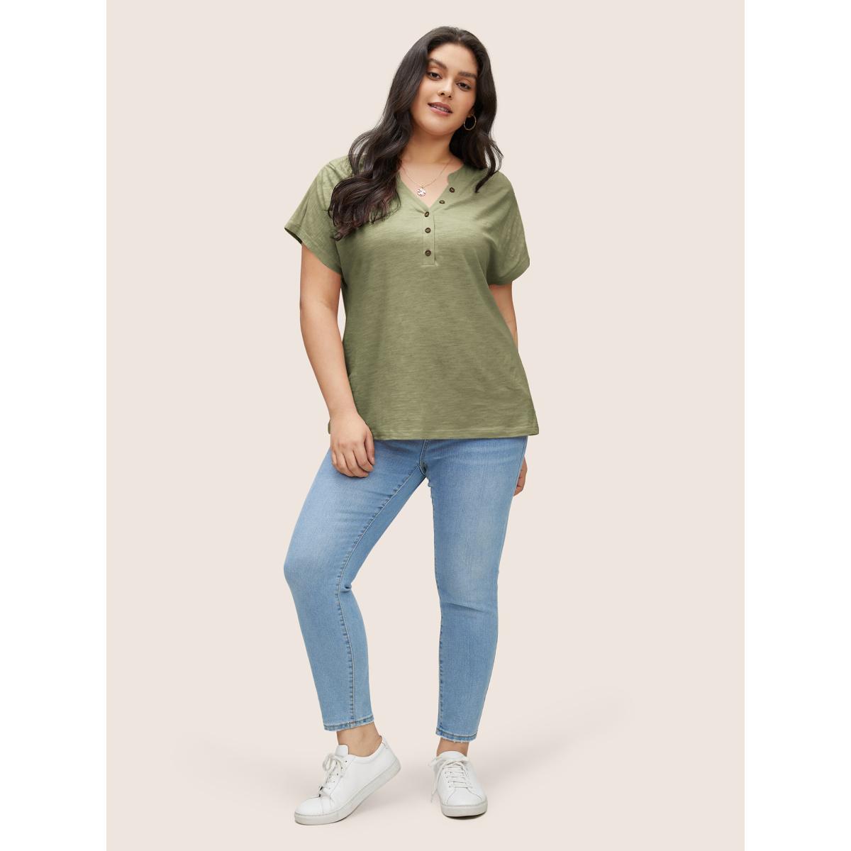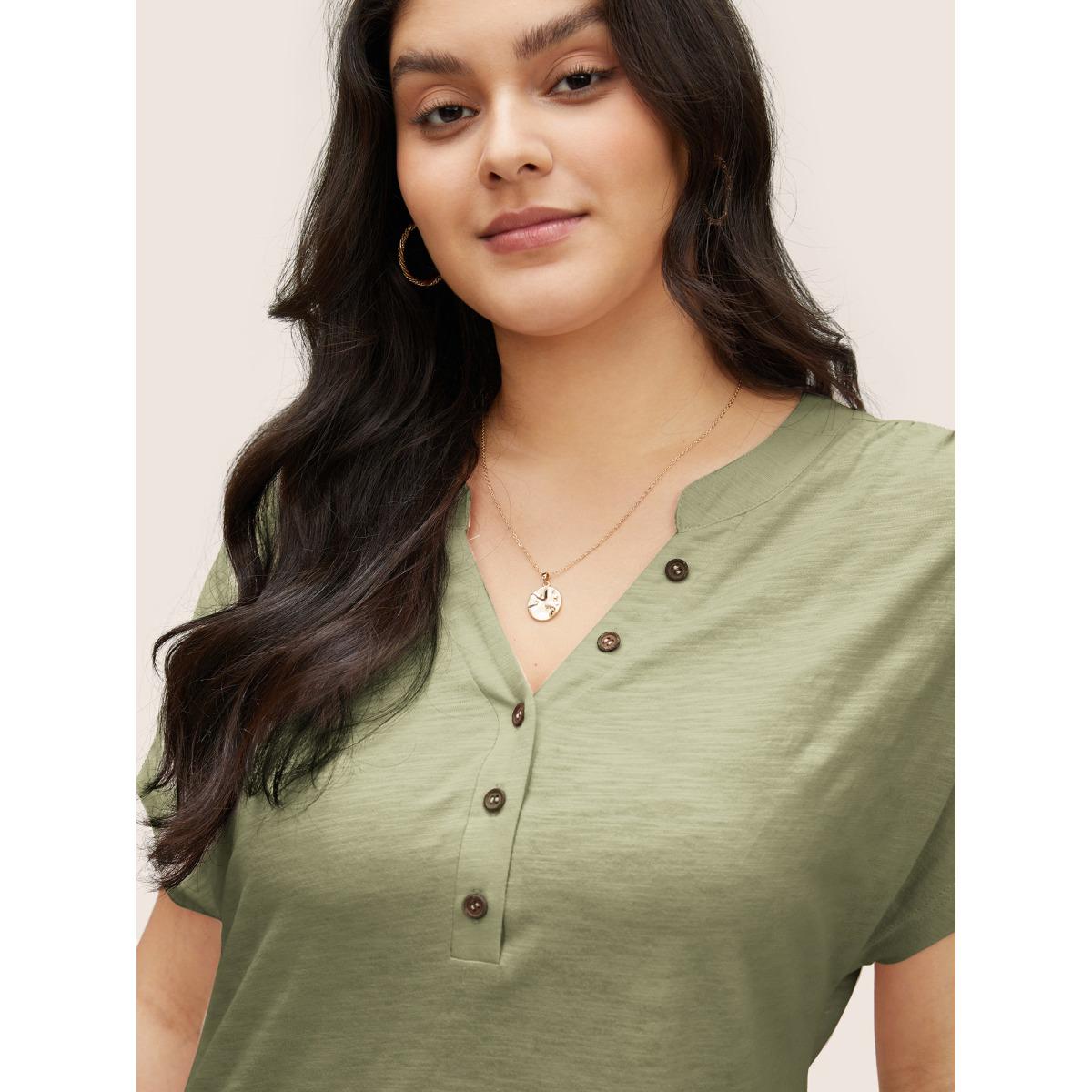 Plus Size Cotton Solid Notched Dolman Sleeve T-shirt Moss Women Casual Non Plain Notched collar Everyday T-shirts BloomChic 12/L