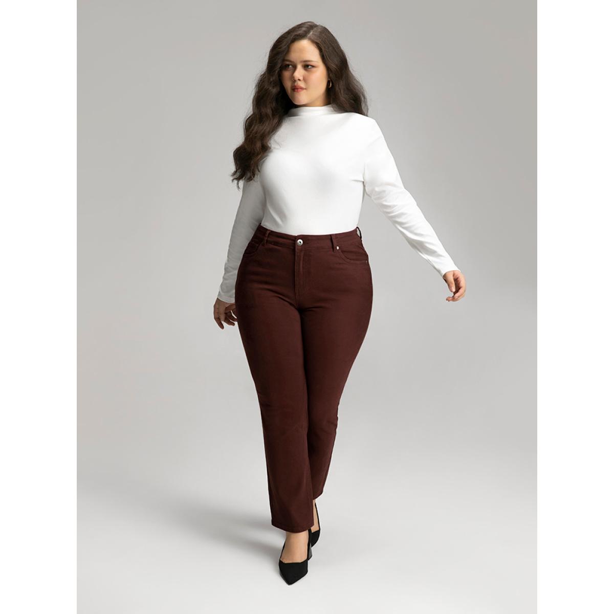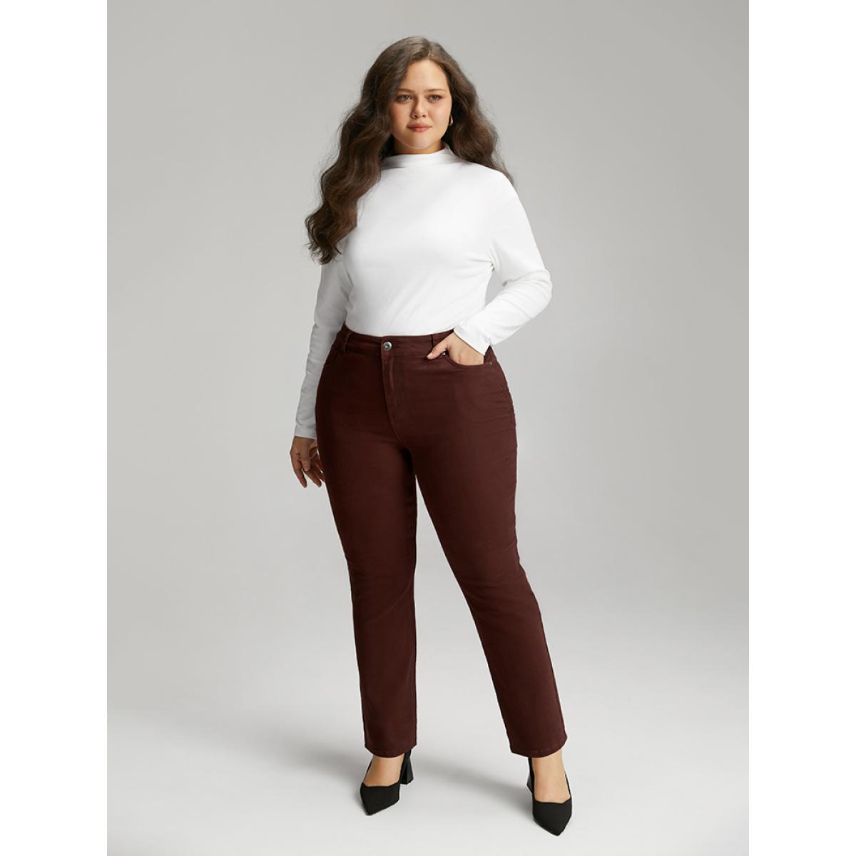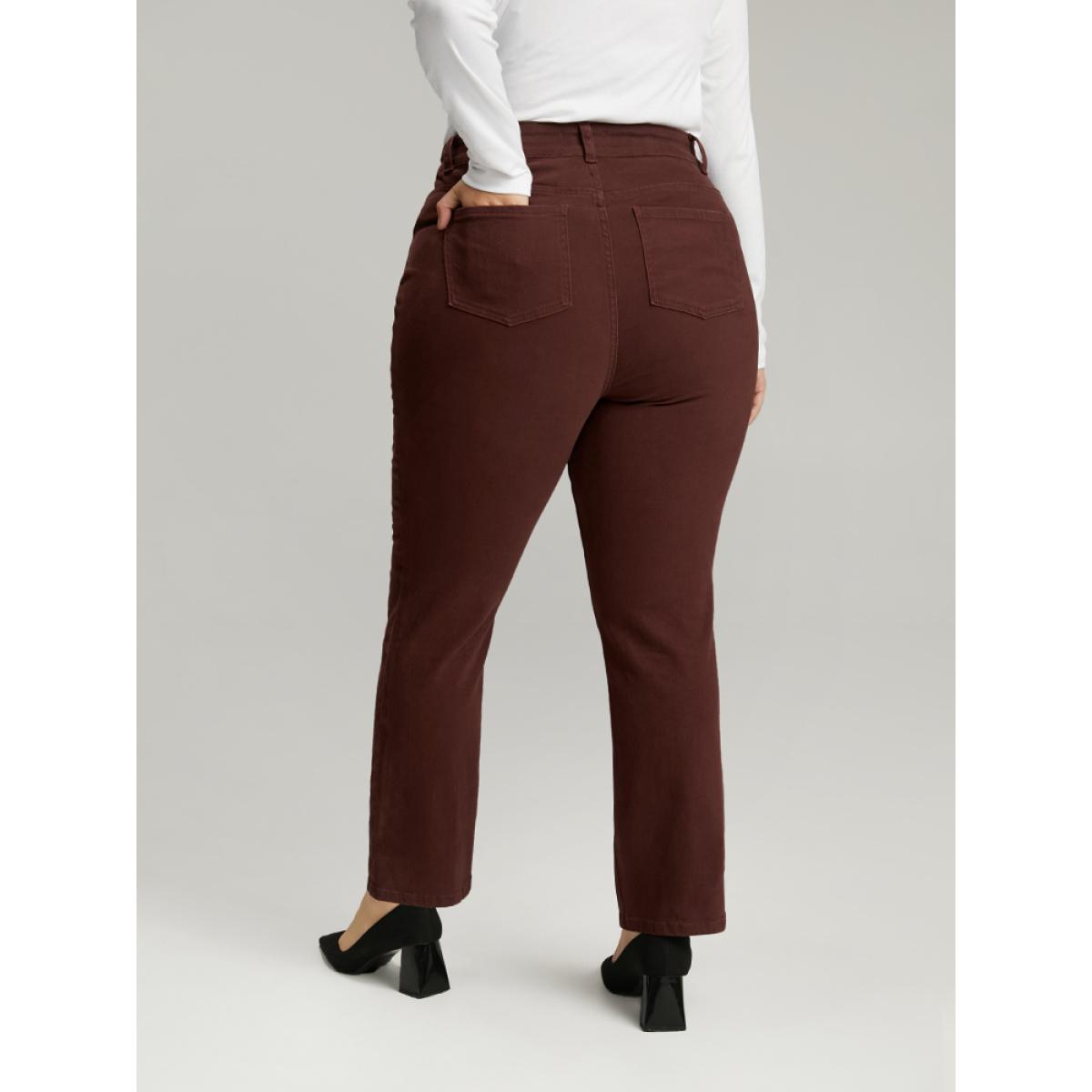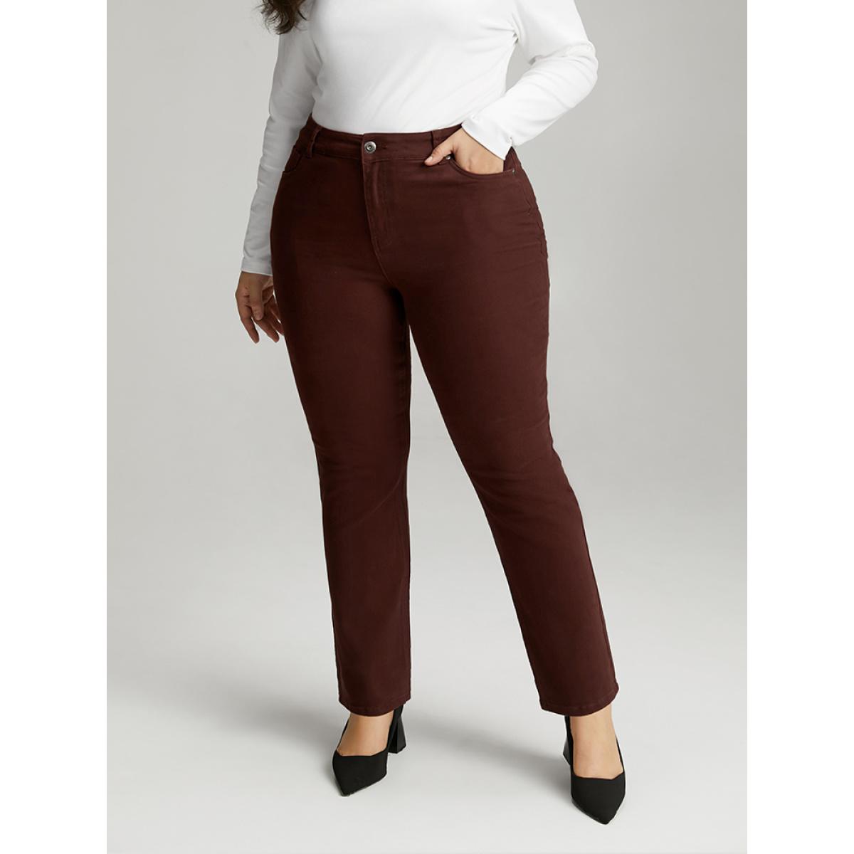 Plus Size Cotton Straight Leg High Rise Color Wash Jeans Women Maroon Casual Plain Plain High stretch Pocket Jeans BloomChic 30/6X