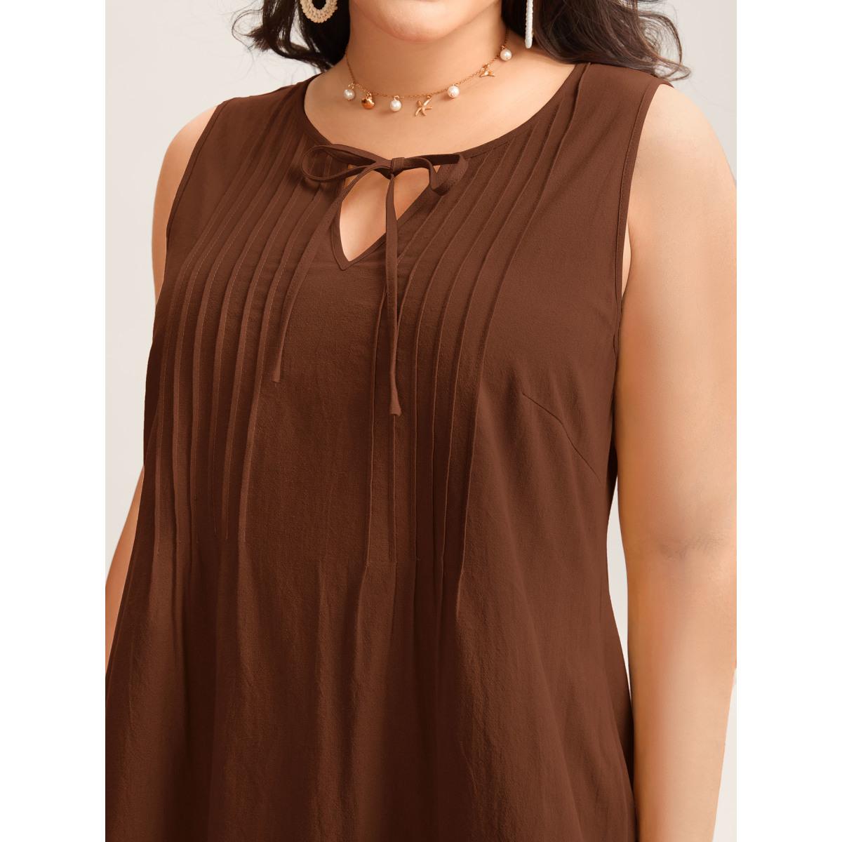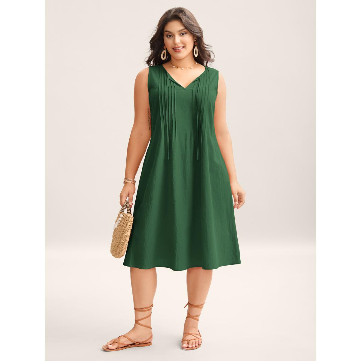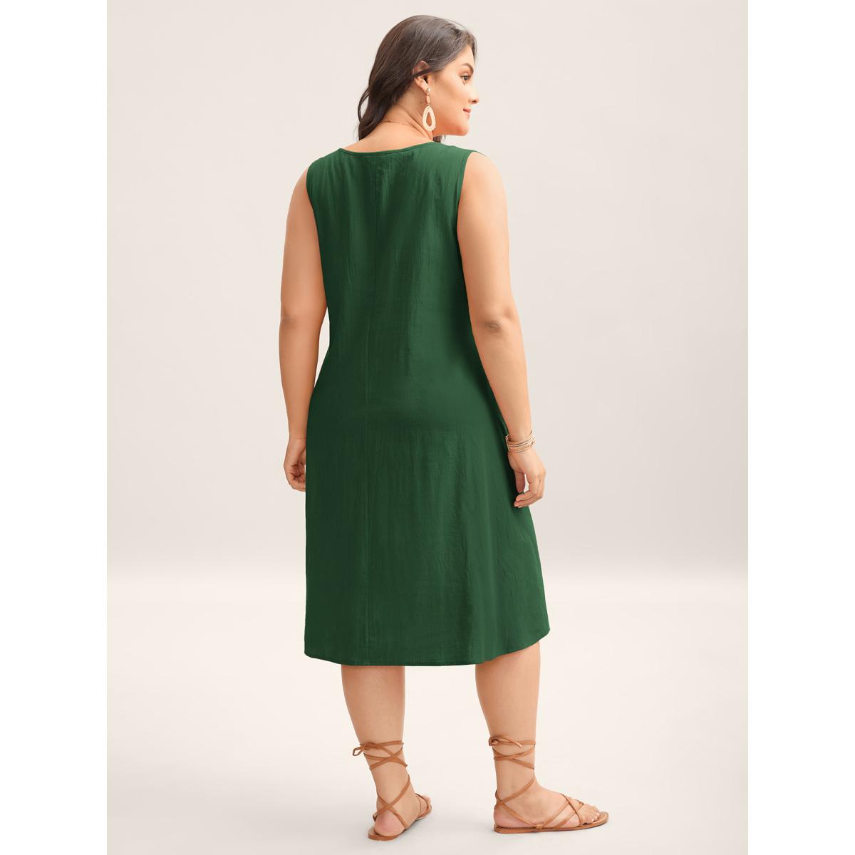 Plus Size Cotton Toothpick Pleat Plain Midi Dress Emerald Women Resort Notched collar Sleeveless Curvy BloomChic 10/M