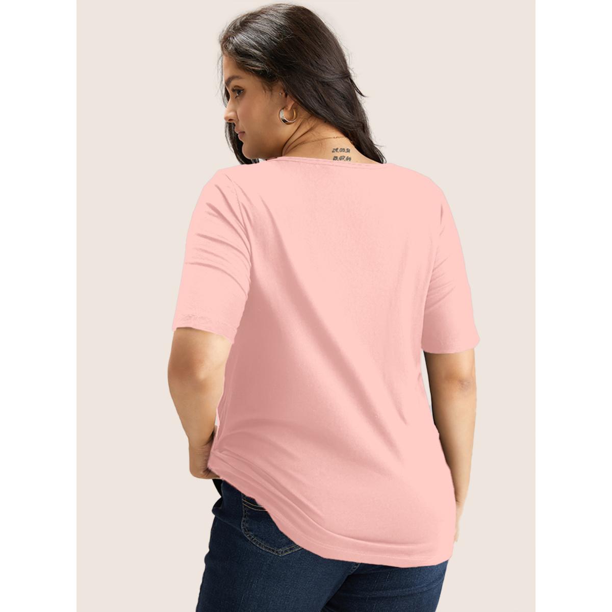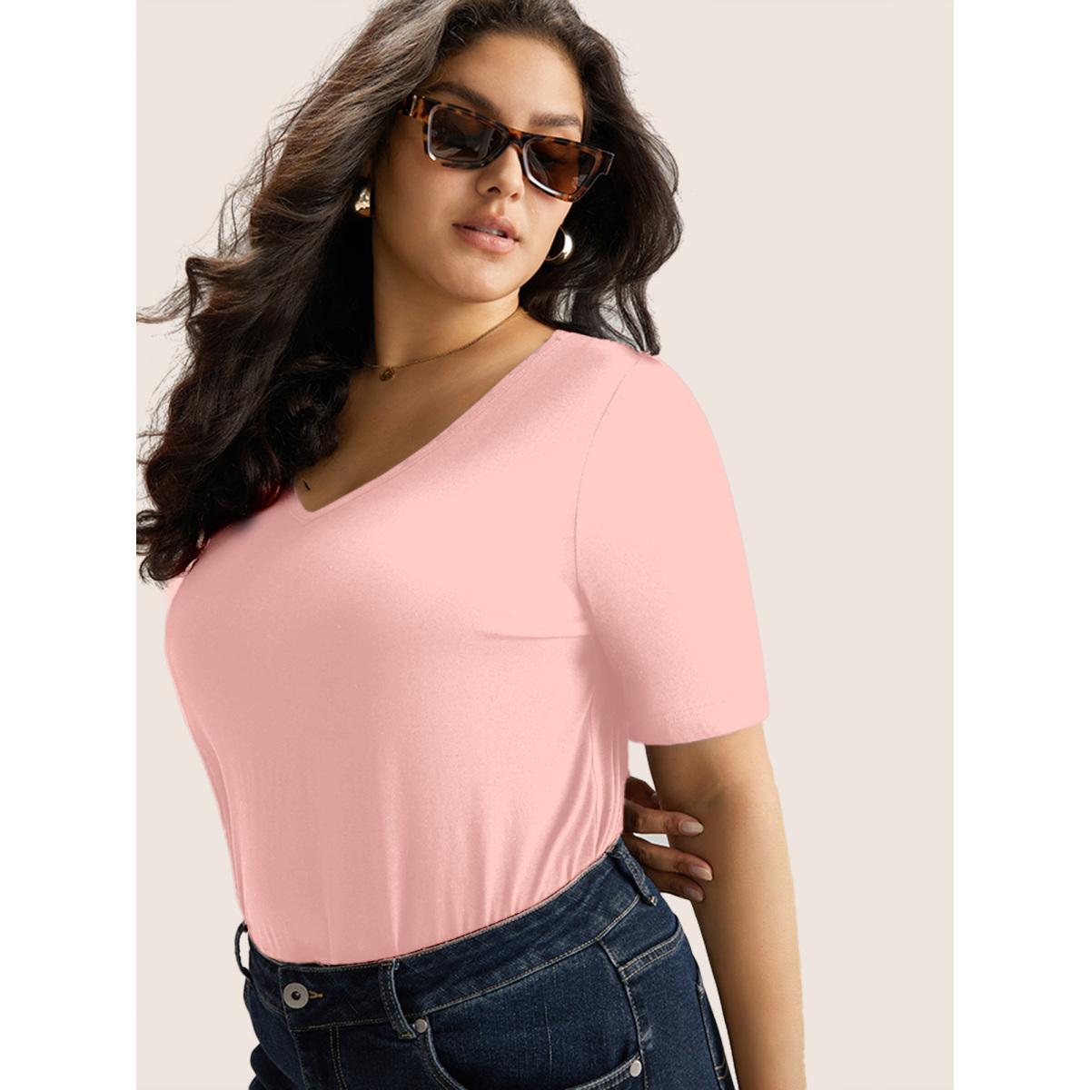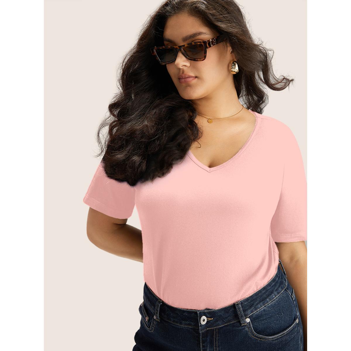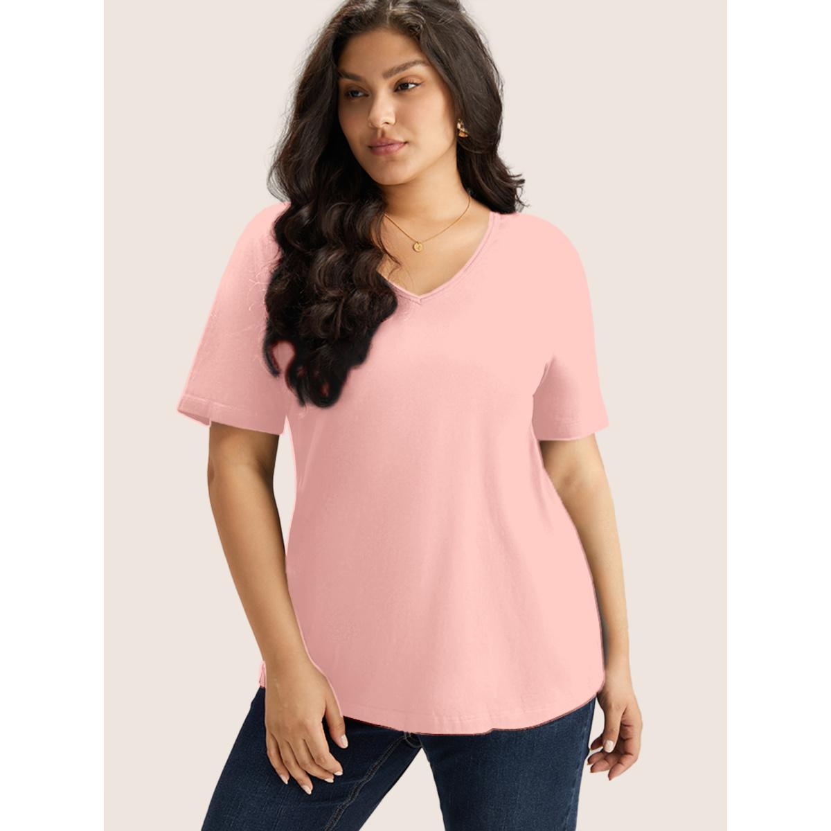 Plus Size Cotton V Neck Plain Basic T-shirt Lightpink Women Basics Non Plain V-neck Everyday T-shirts BloomChic 14-16/1X