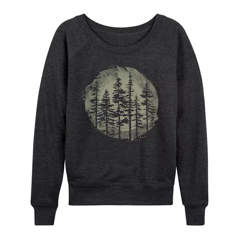 Women's Watercolor Pine Trees French Terry Long Sleeve Tee, Girl's,