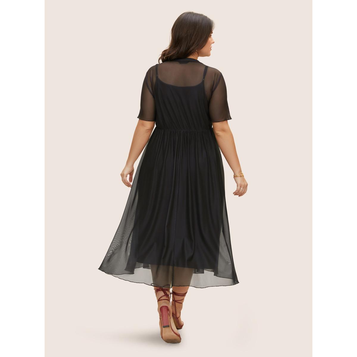Plus Size Crew Neck Mesh Butterfly Orchid Midi Dress Black Women Elegant See through Round Neck Short sleeve Curvy BloomChic 26/4X Product Image