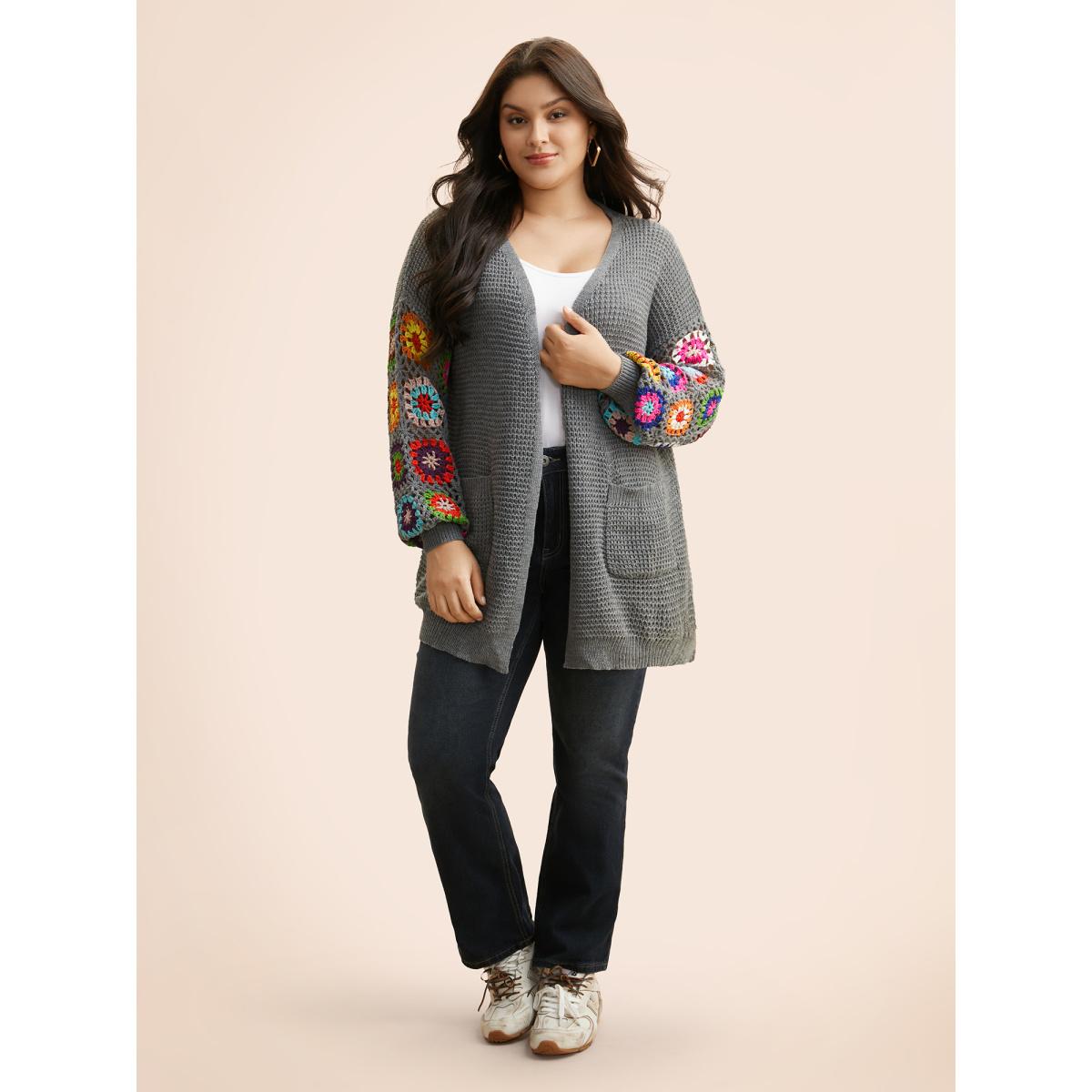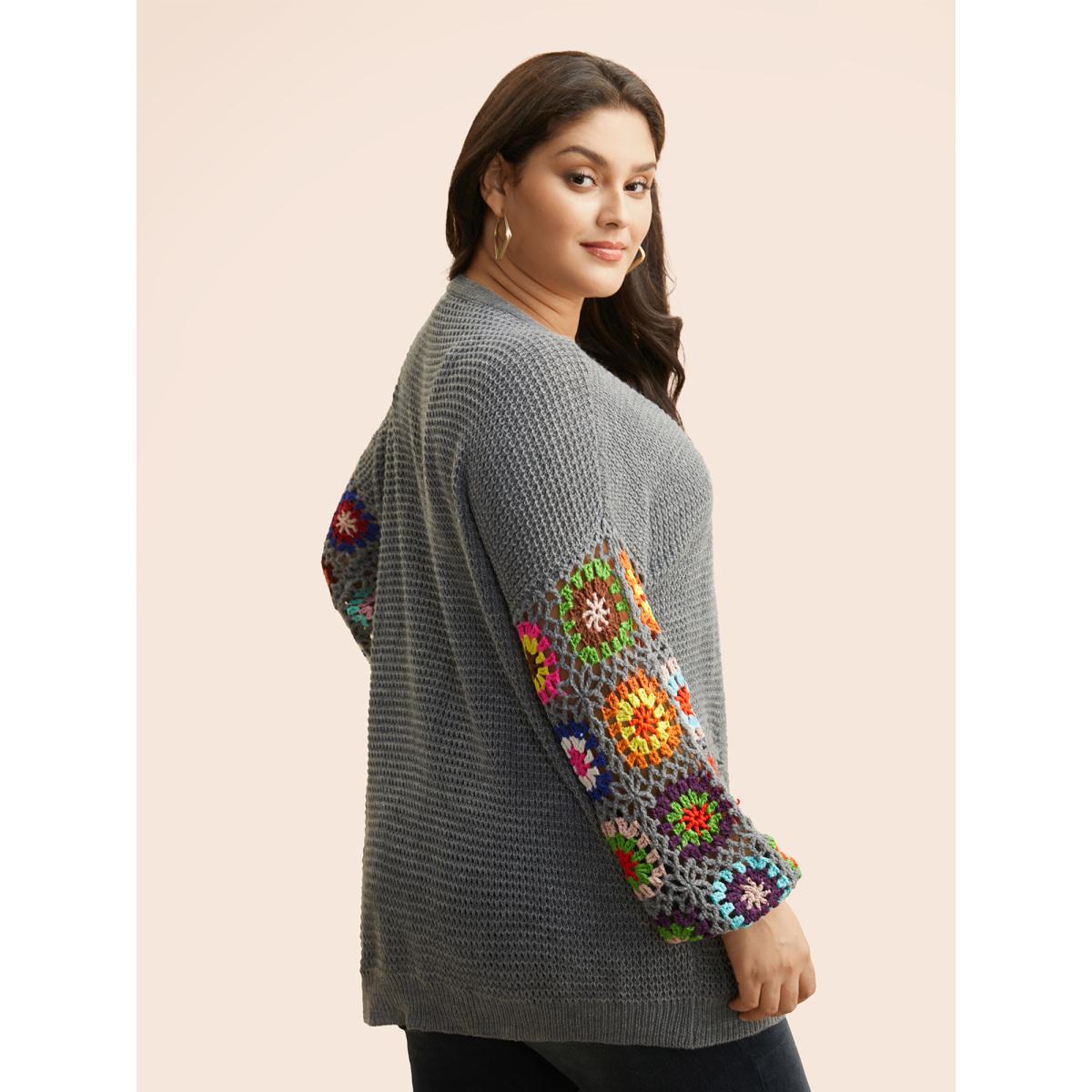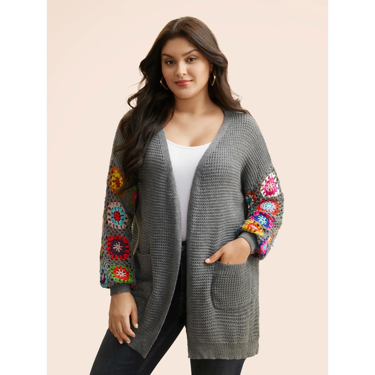 Plus Size Crochet Floral Drop Shoulder Cut Out Cardigan DarkGray Women Playful Loose Long Sleeve Casual Cardigans BloomChic 30/6X