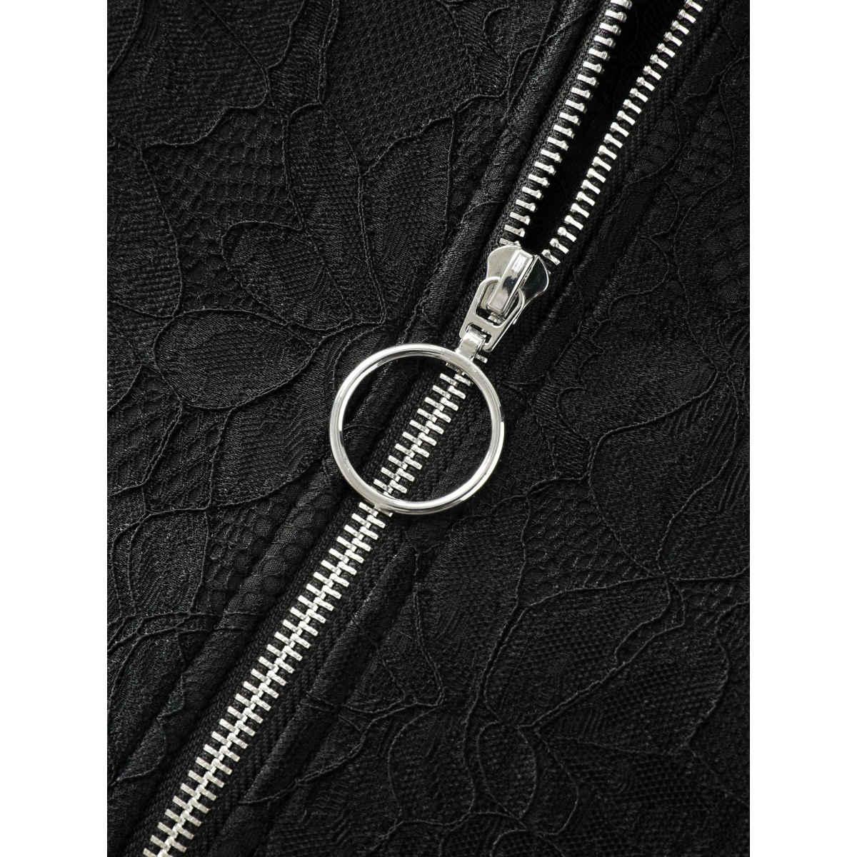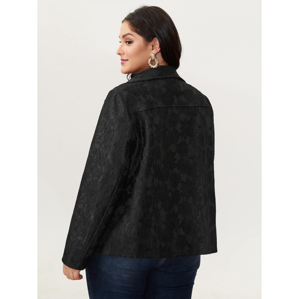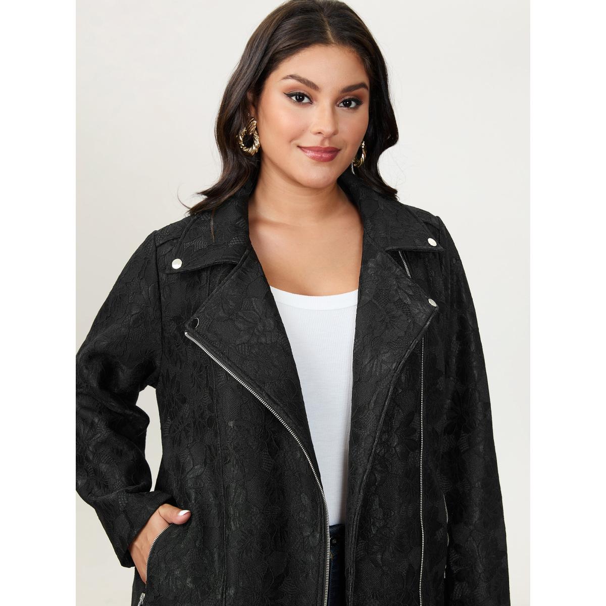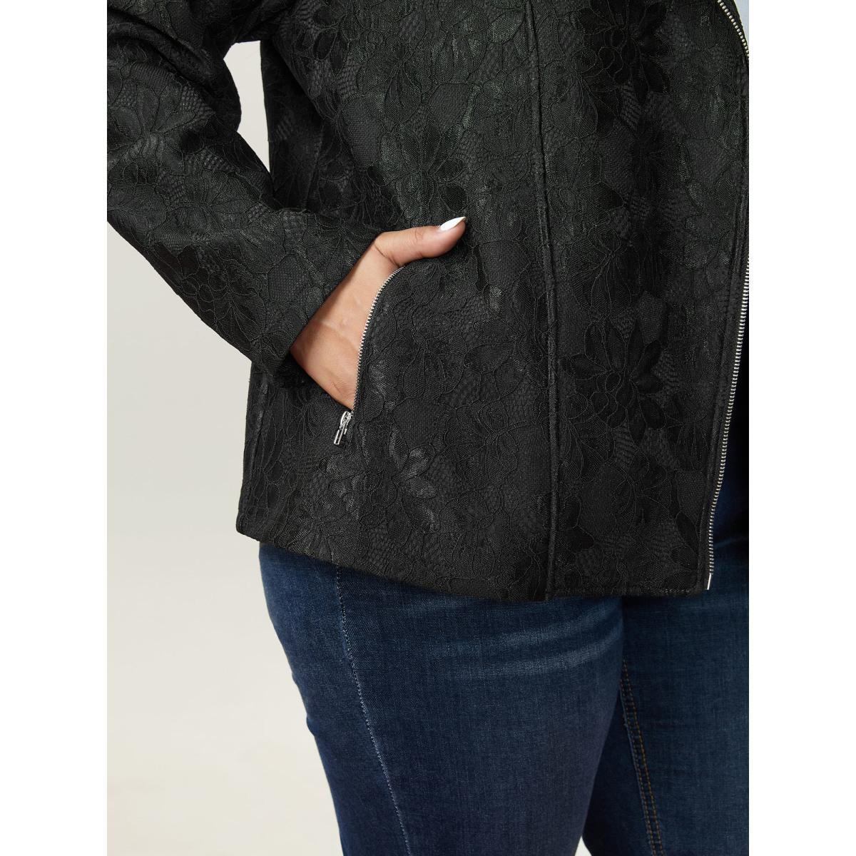 Plus Size Crochet Lace Mesh Pocket Zipper Coat Women Black Romantic Overlapping Ladies Elegant Winter Coats BloomChic 26/4X Product Image