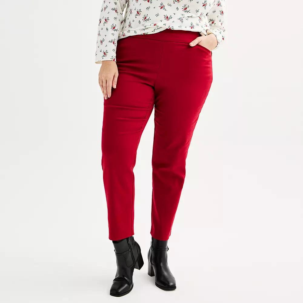 Comfortable style you crave. These women's pants from Croft & Barrow are the way to go. Click on this WOMEN'S GUIDE to find the perfect fit and more!PRODUCT FEATURES 2 front pockets, 2 back pockets Stretchy sateen constructionFIT & SIZING Short: 27-in. inseam Average: 29-in. inseam Tall/Long (T/L): 31-in. inseam Straight-leg opening Hidden comfort elastic waistbandFABRIC & CARE Cotton, polyester, rayon, spandex Machine wash - Delicate ImportedRESPONSIBLE Supports more sustainable cotton farming Size: 28W Short. Color: Crimson. Gender: female. Age Group: adult.