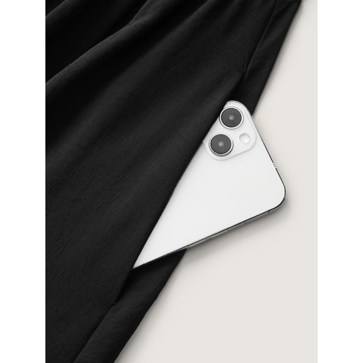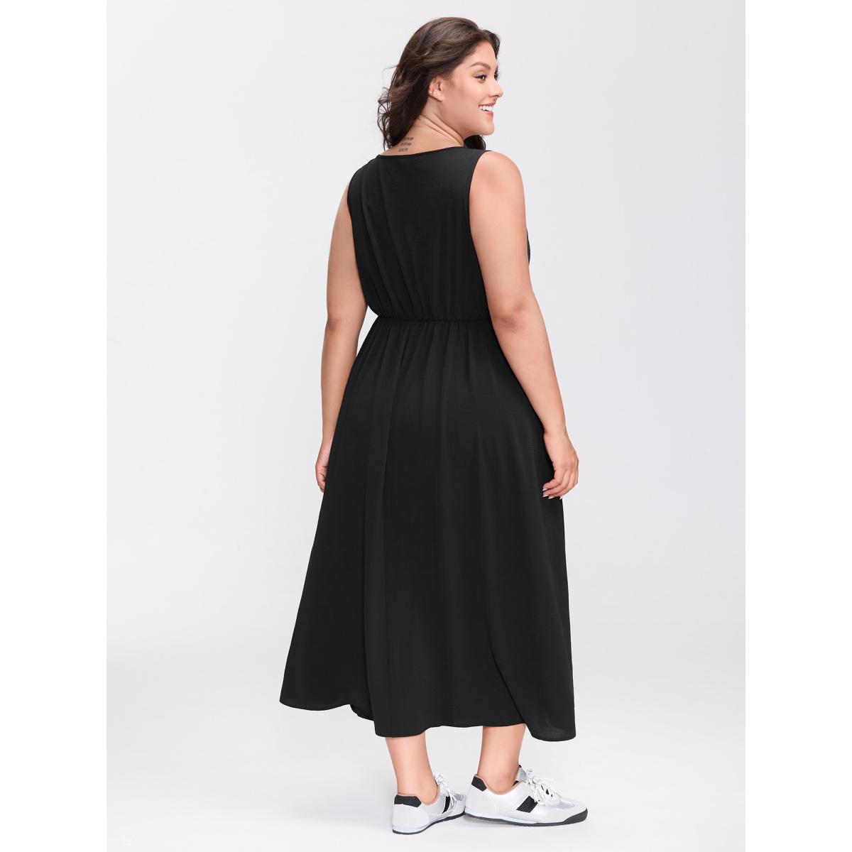 Plus Size Crosswrap Bodice Pockets Midi Dress Black Women Leisure Twist-front Heart neckline Sleeveless Curvy BloomChic 14-16/1X