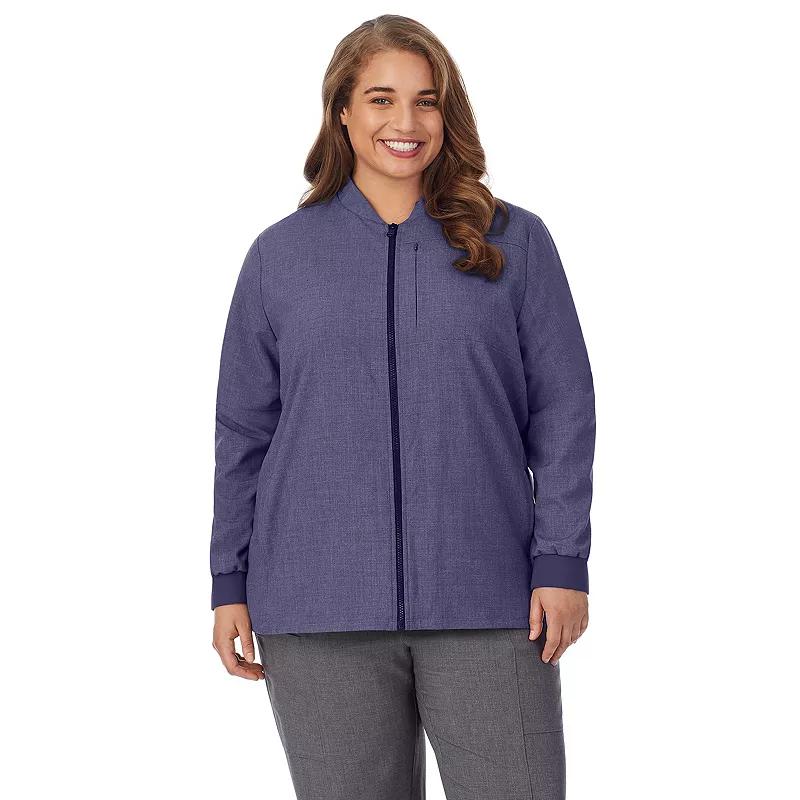 Featuring ample pockets and a stretch construction for ease of motion, this women's Cuddl Duds Scrubs lined jacket is perfect for layering on a busy day. Featuring ample pockets and a stretch construction for ease of motion, this women's Cuddl Duds Scrubs lined jacket is perfect for layering on a busy day. 1 zippered chest pocket, 2 exterior pockets, 2 interior pockets Stretch construction for ease of motion Fully lined in cozy knit Tag free Agion® anti-microbial technology to help combat odor-causing bacteria The antimicrobial properties do not protect users or others against bacteria, viruses, germs, or other disease organisms.FIT & SIZING Classic fit Zipper frontFABRIC & CARE Polyester, rayon, spandex Machine wash Imported Size: 3X. Color: Dark Blue. Gender: female. Age Group: adult.