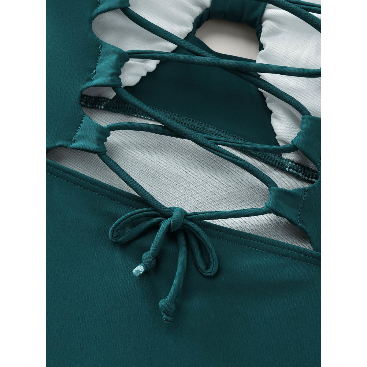 Plus Size Cut-Out Back-Tie Keyhole One-Piece Swimsuit Women's Swimwear Indigo Resort Wraparound straps Curve Bathing Suits High stretch One Pieces BloomChic 14-16/1X