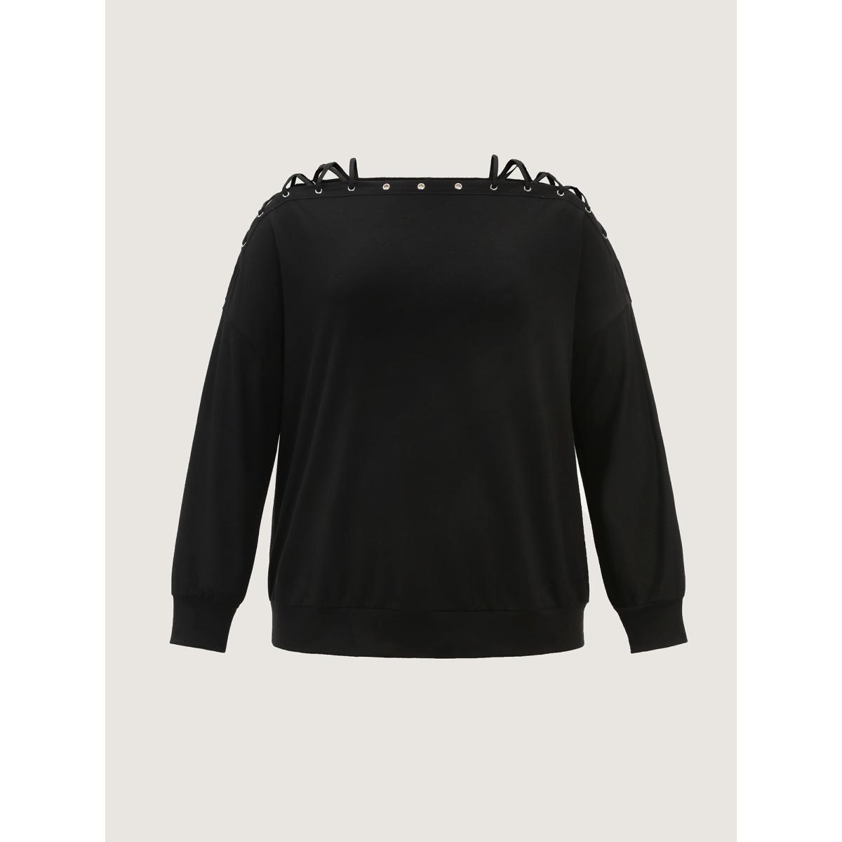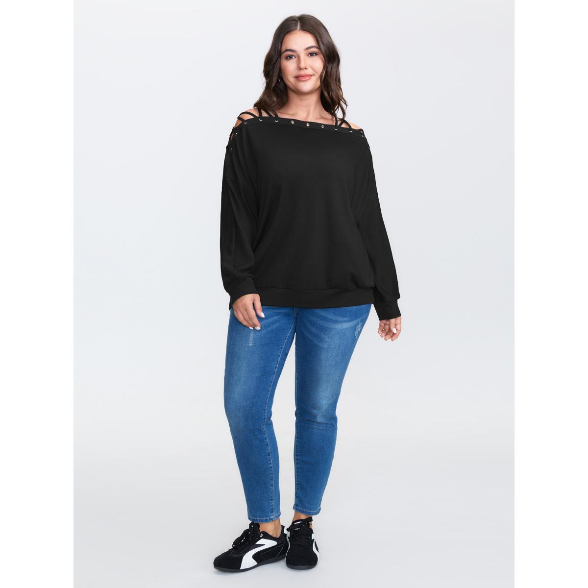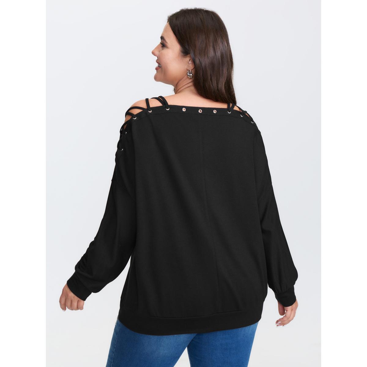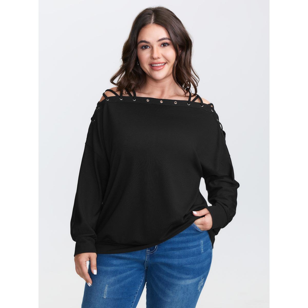 Plus Size Cut-Out Off-Shoulder Plain Sweatshirt Women Black Leisure Eyelet One-shoulder neck Casual Sweatshirts BloomChic 30/6X