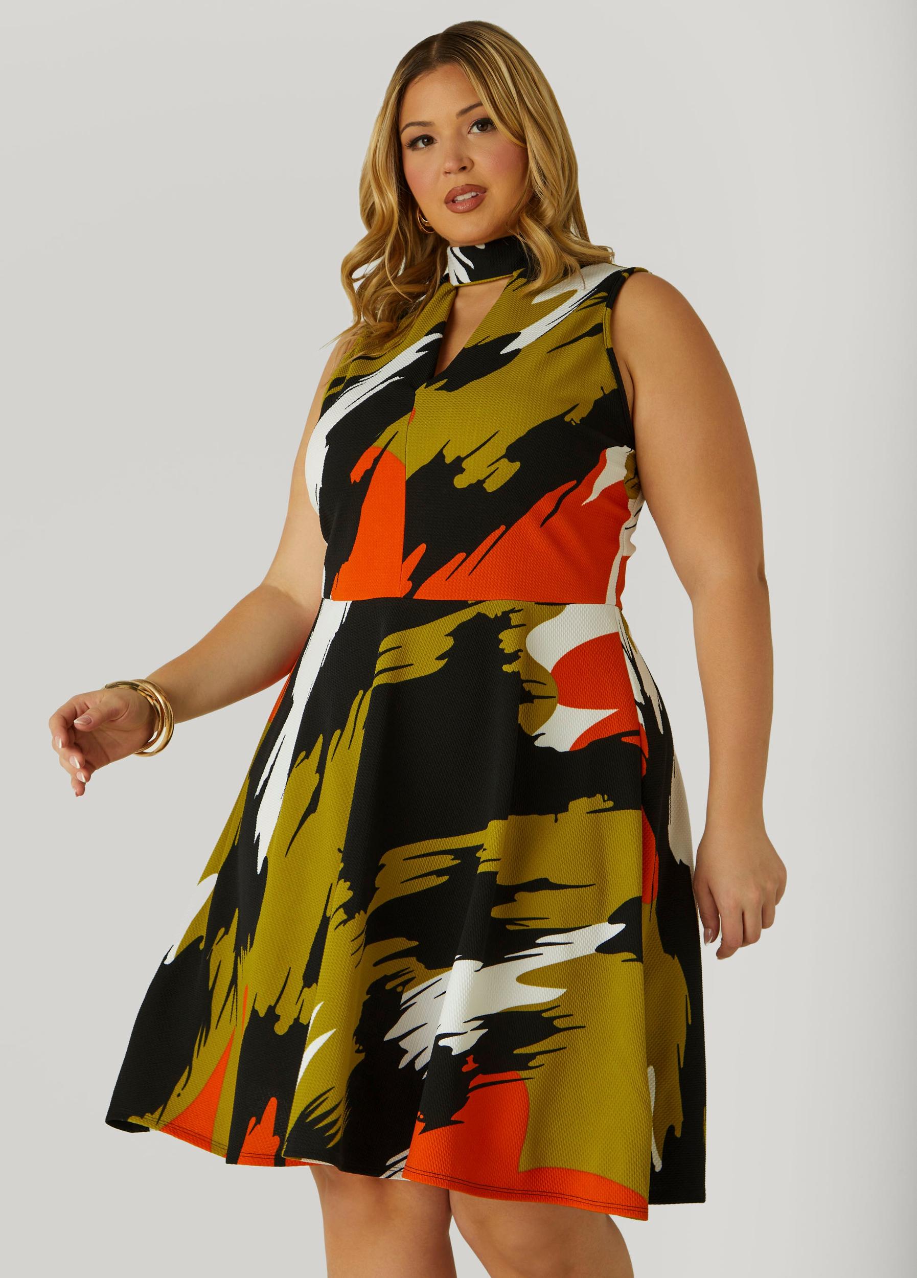 Plus Size Cutout Brushstroke A Line Dress Ashley Stewart