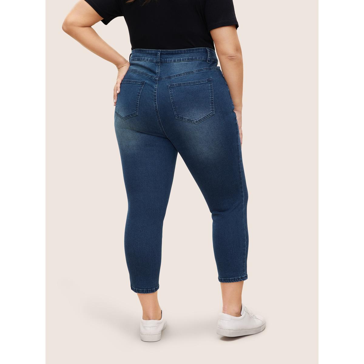 Plus Size High Stretch Slanted Pocket Slim Cropped Jeans Women Denimblue Casual Button High stretch Slanted pocket Jeans BloomChic 26/4X