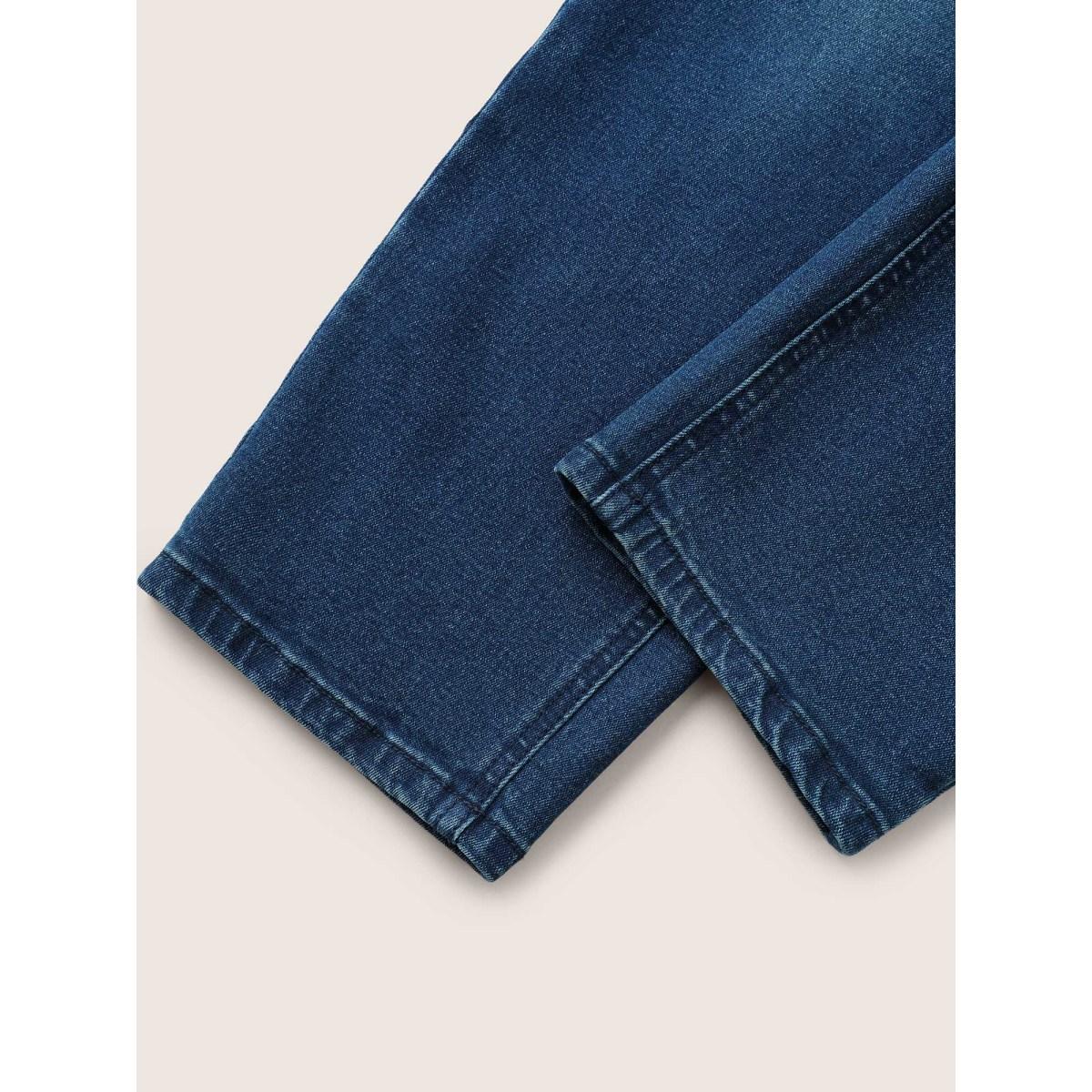 Plus Size Very Stretchy High Rise Dark Wash Cropped Jeans Women Blue Leisure Plain Roll Hem High stretch Slanted pocket Jeans BloomChic 24/3X