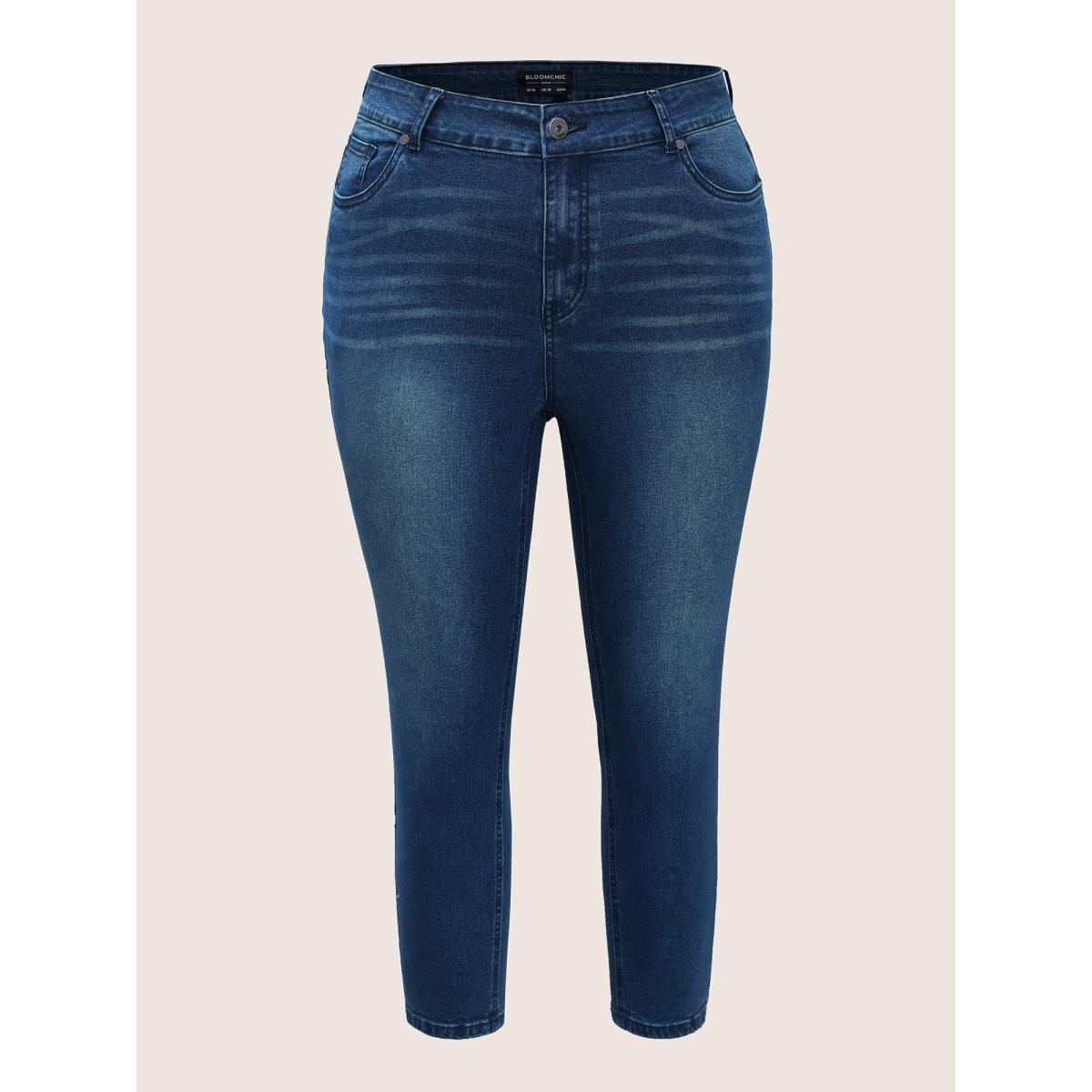 Plus Size Skinny Very Stretchy High Rise Medium Wash Cropped Jeans Women DarkBlue Casual Plain High stretch Side seam pocket Jeans BloomChic 30/6X