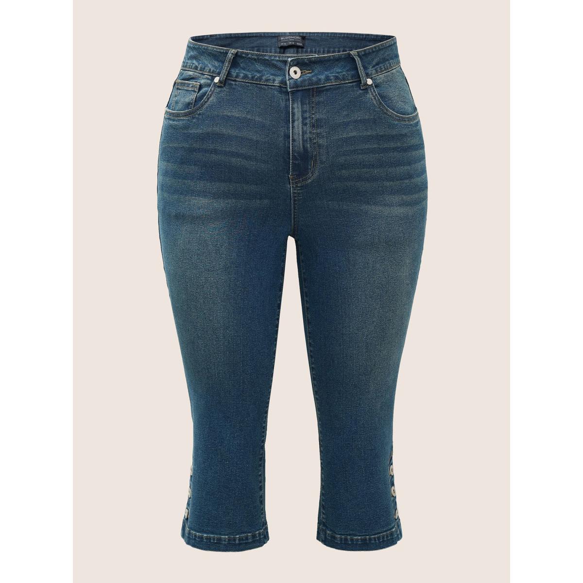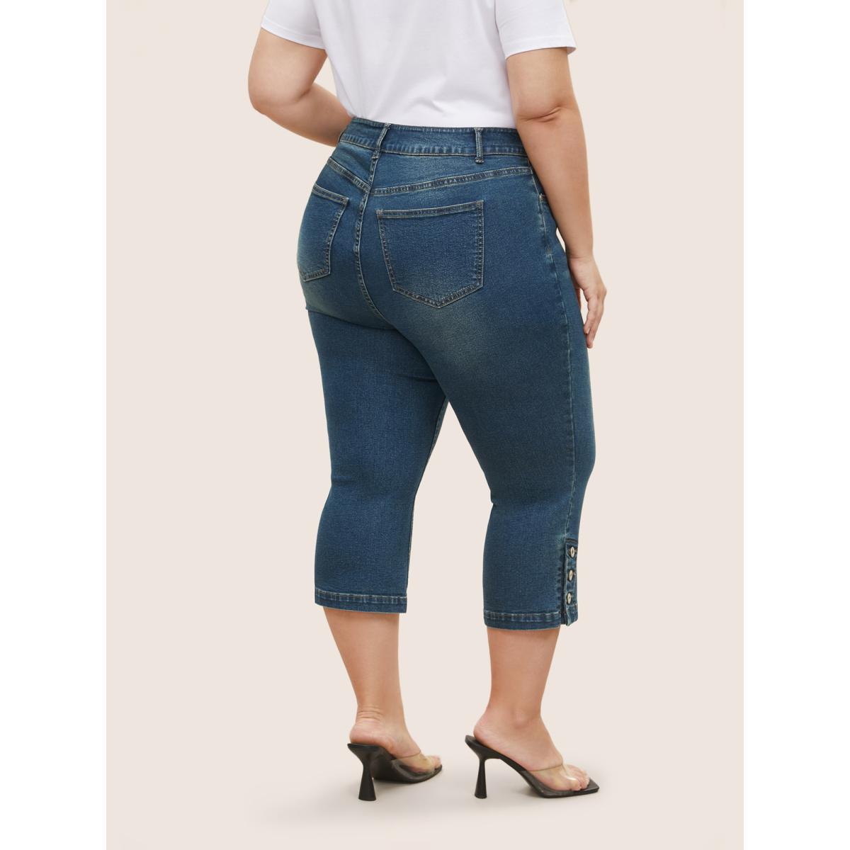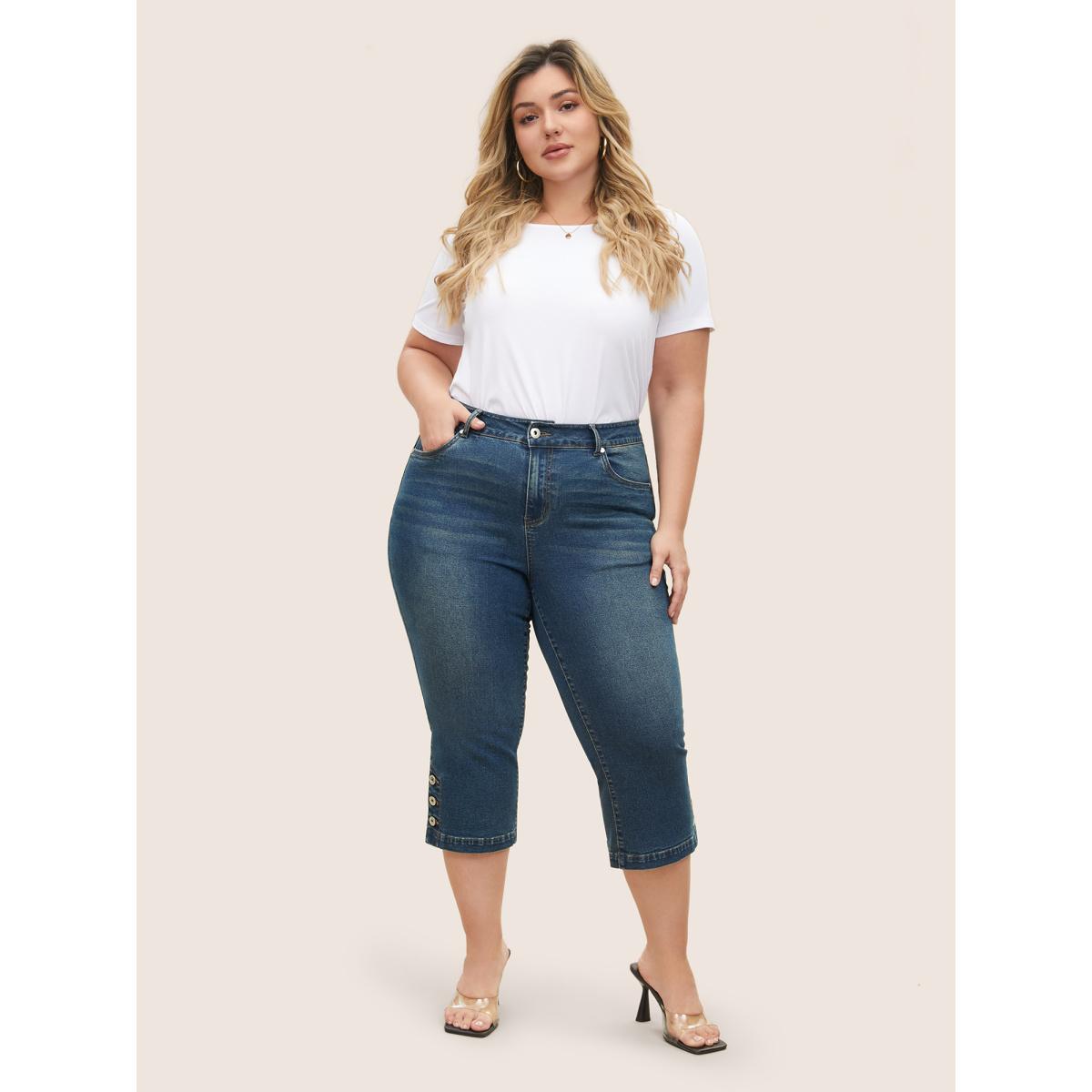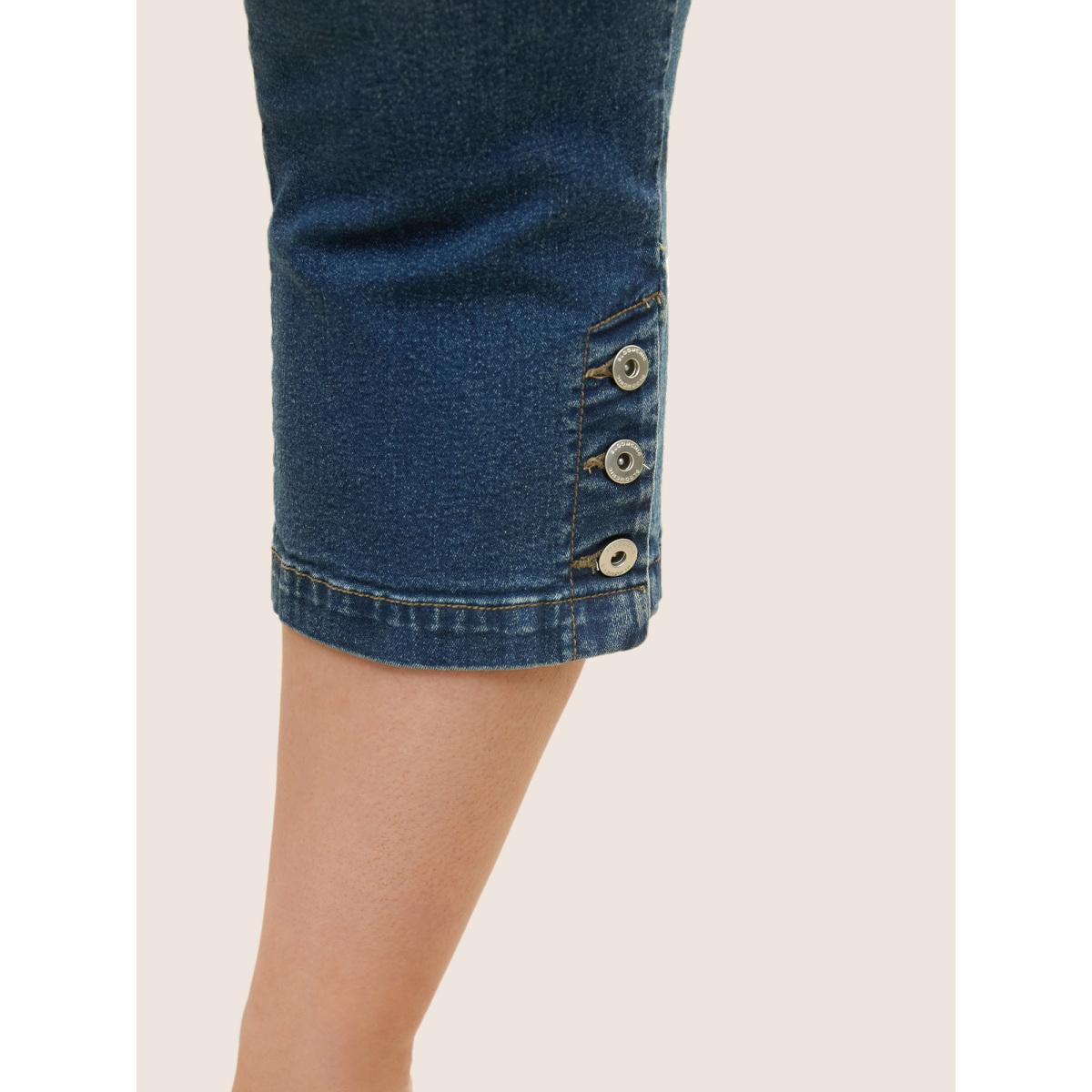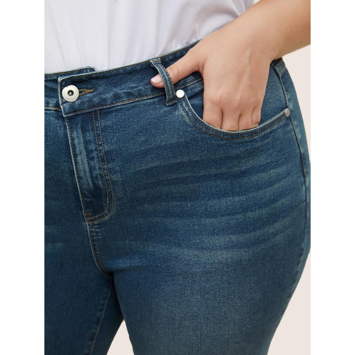 Plus Size Dark Wash Slit Hem Pull On Jegging Jeans Women Indigo Elegant Plain Non High stretch Slanted pocket Jeans BloomChic 28/5X