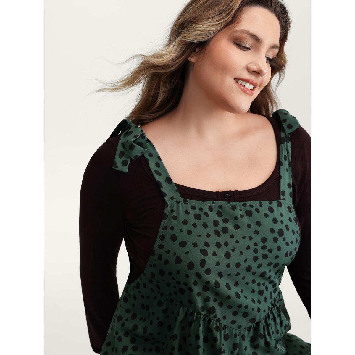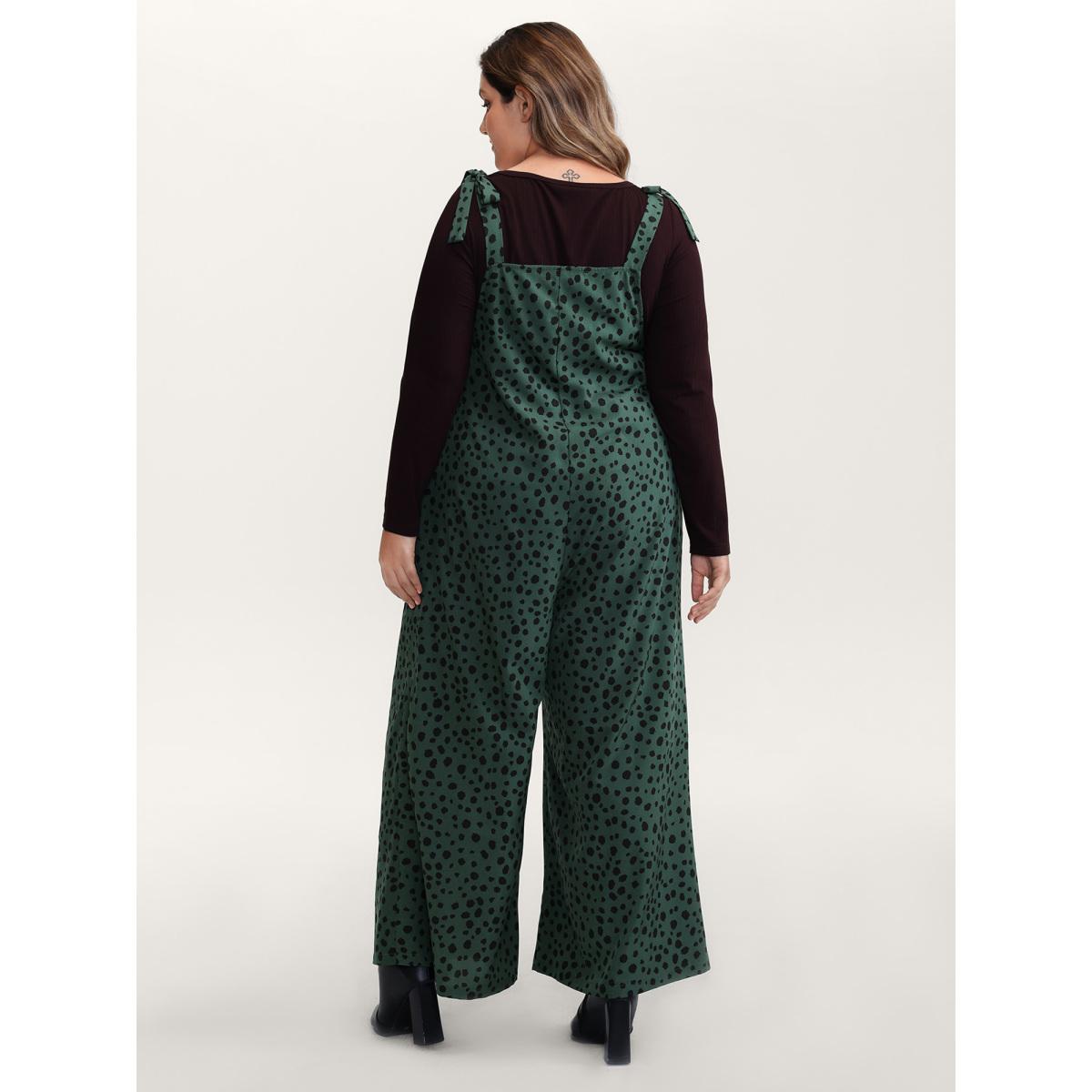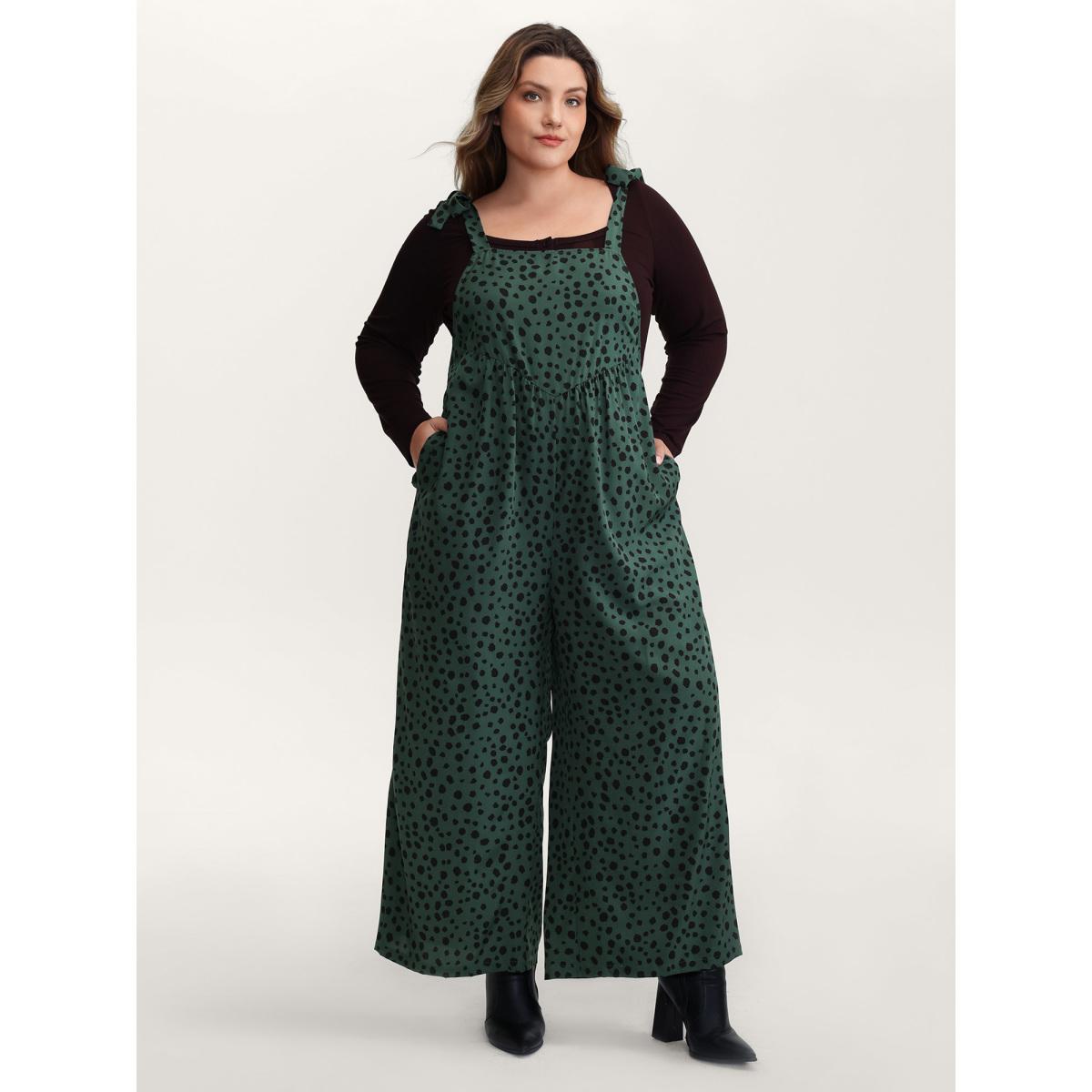 Plus Size DarkSlateGray Leopard Print Shirred Shoulder Ties Jumpsuit Women Leisure Sleeveless Square Neck Vacation Loose Jumpsuits BloomChic 22-24/3X