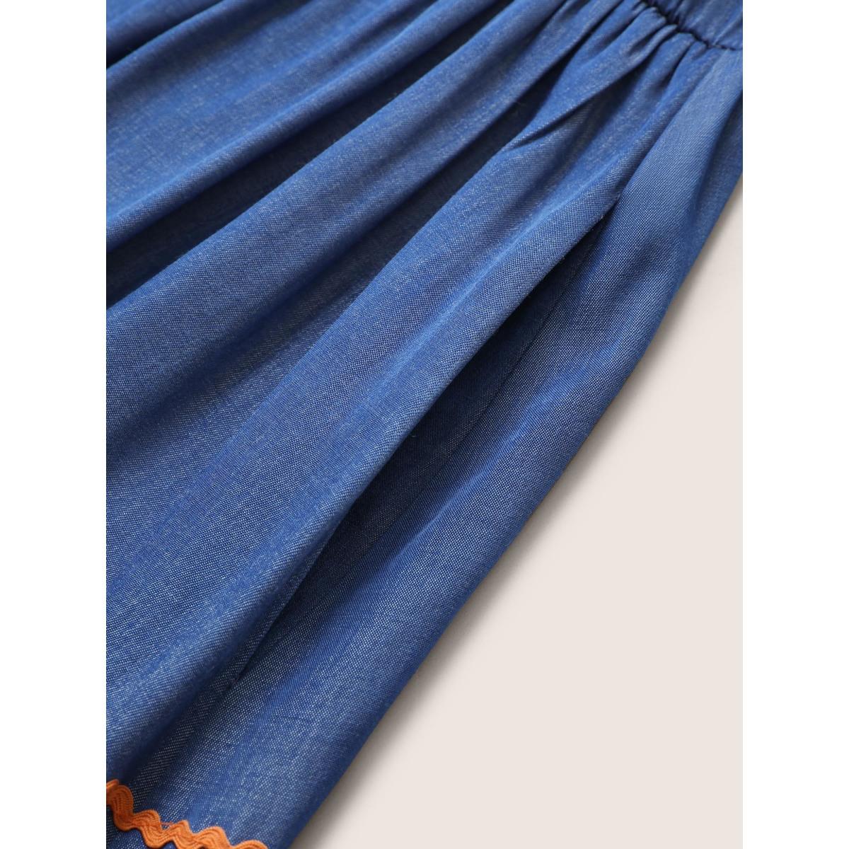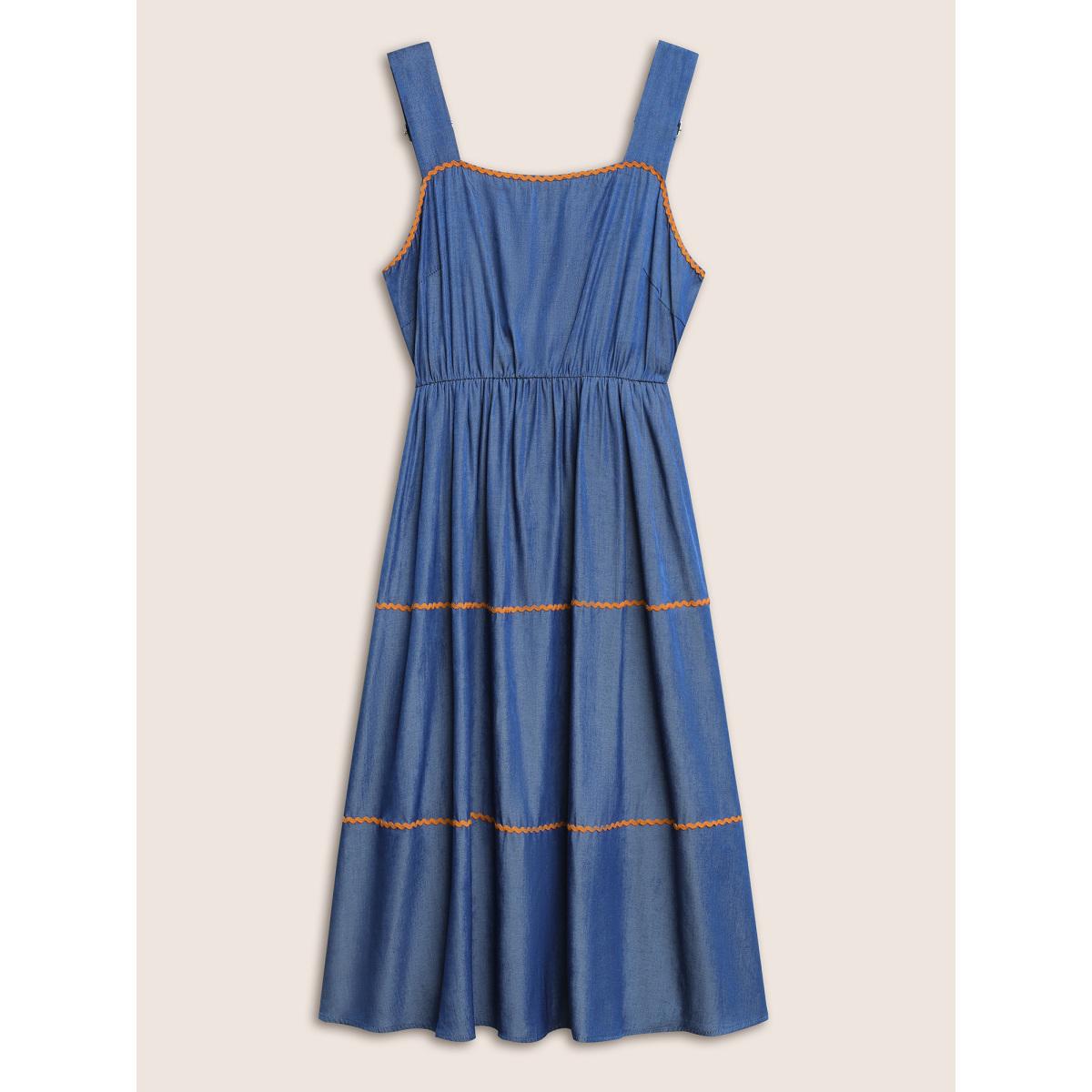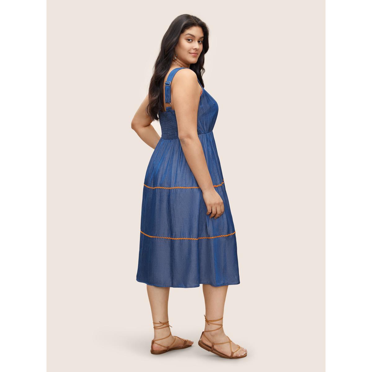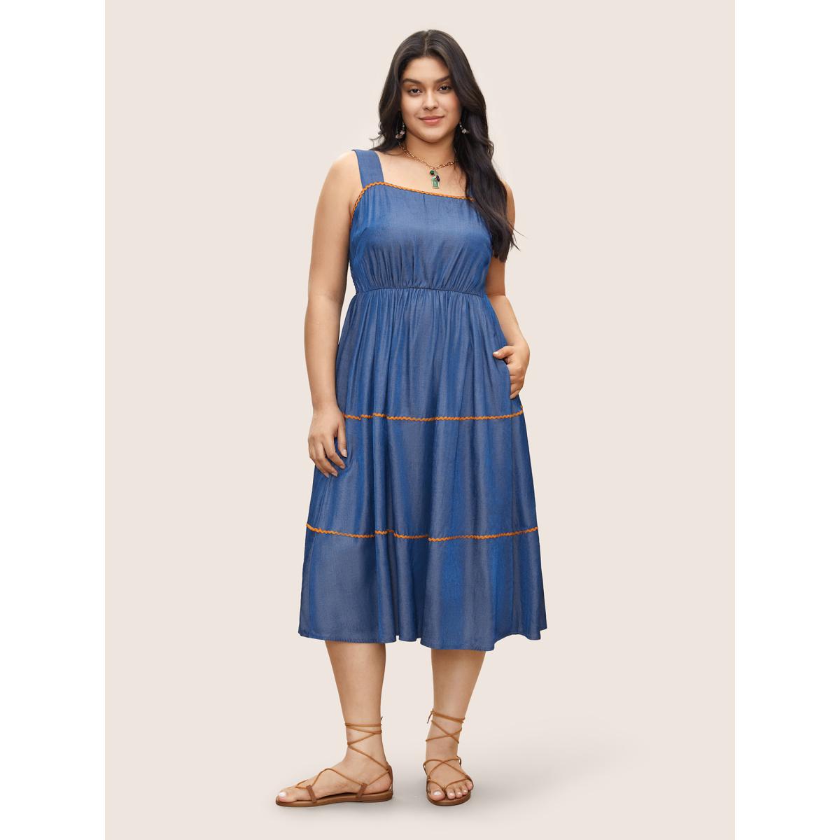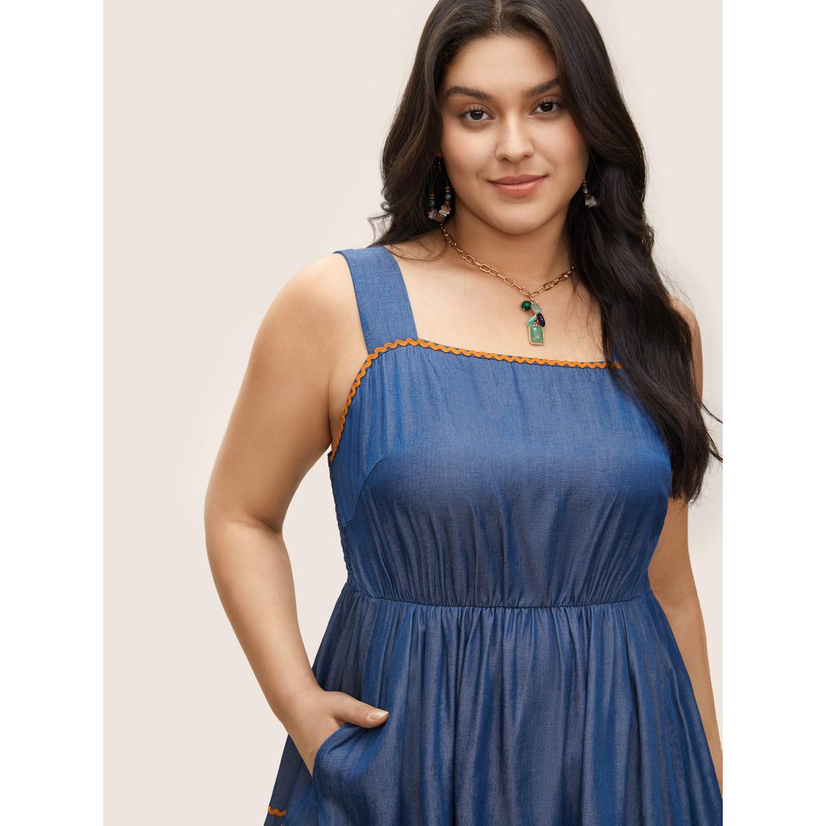 Plus Size Denim-Effect Print Contrast Elastic Waist Cami Dress Aegean Women Resort Non Non Sleeveless Curvy Midi Dress BloomChic 12/L