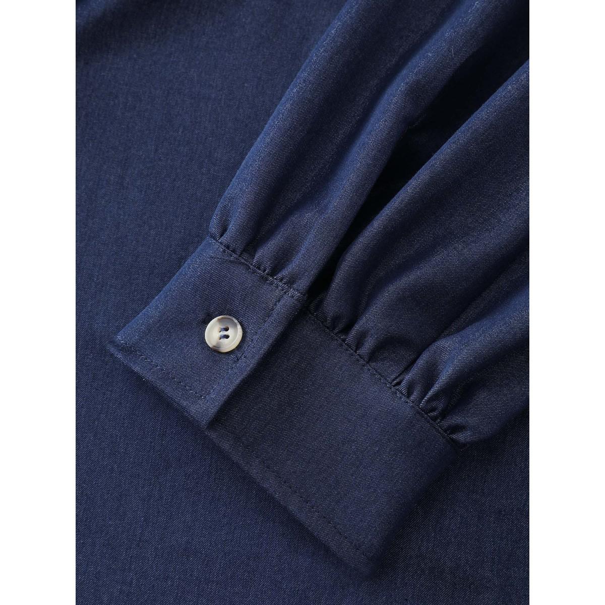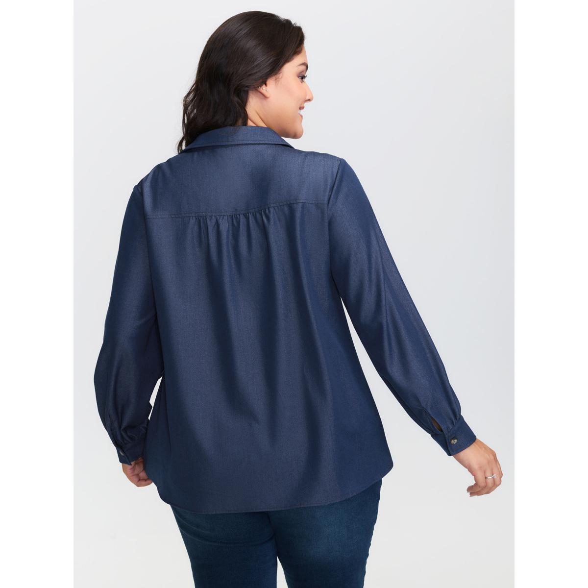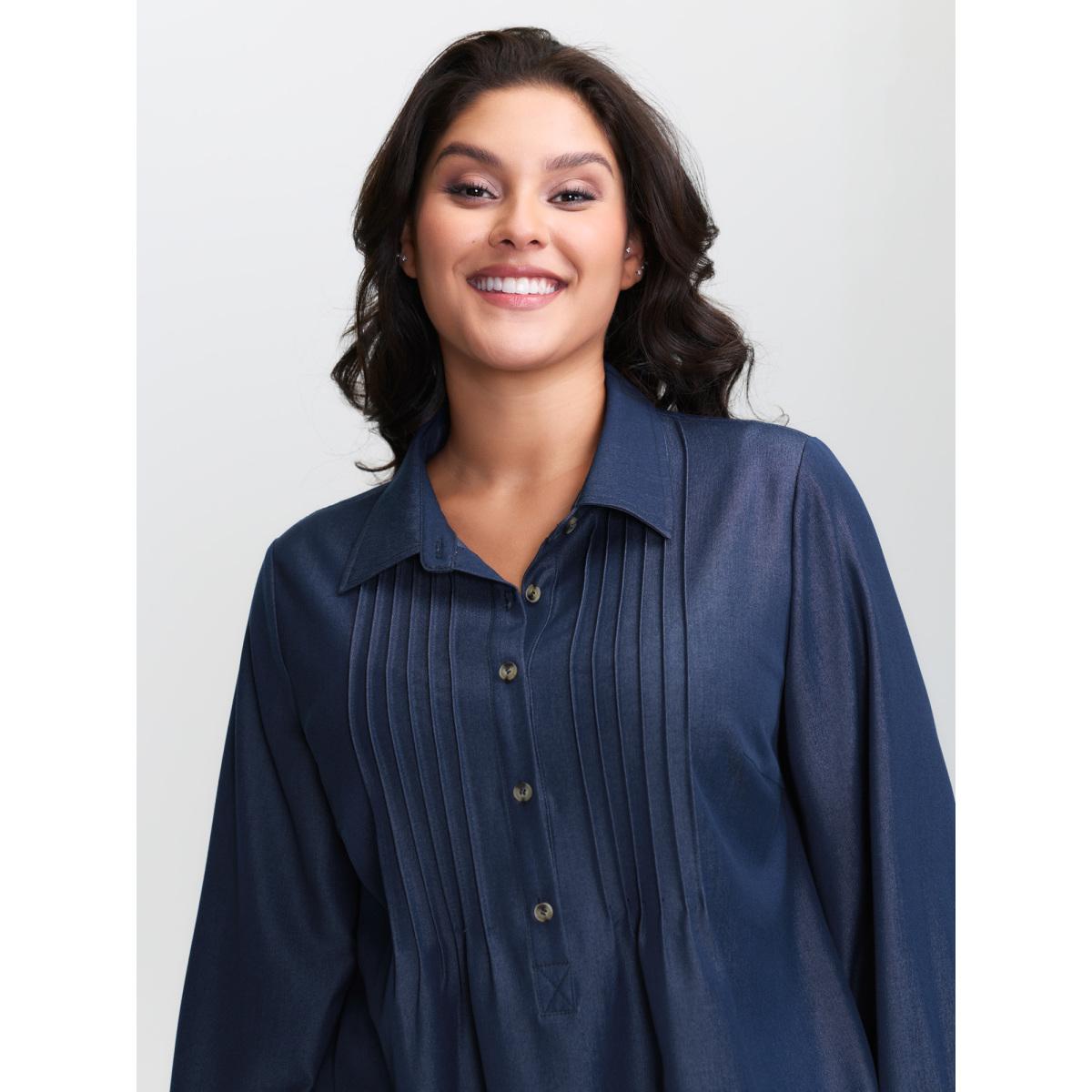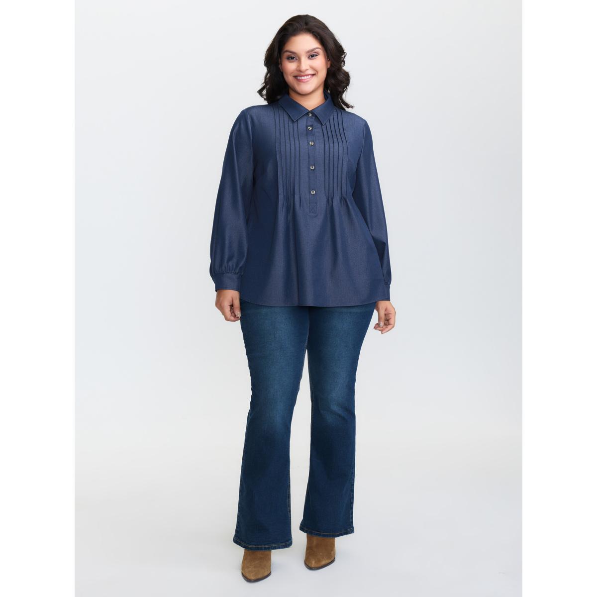 Plus Size Denimindigo Buttons Pleated Denim Blouse Women Long Sleeve Shirt collar Casual Blouses BloomChic 26/4X
