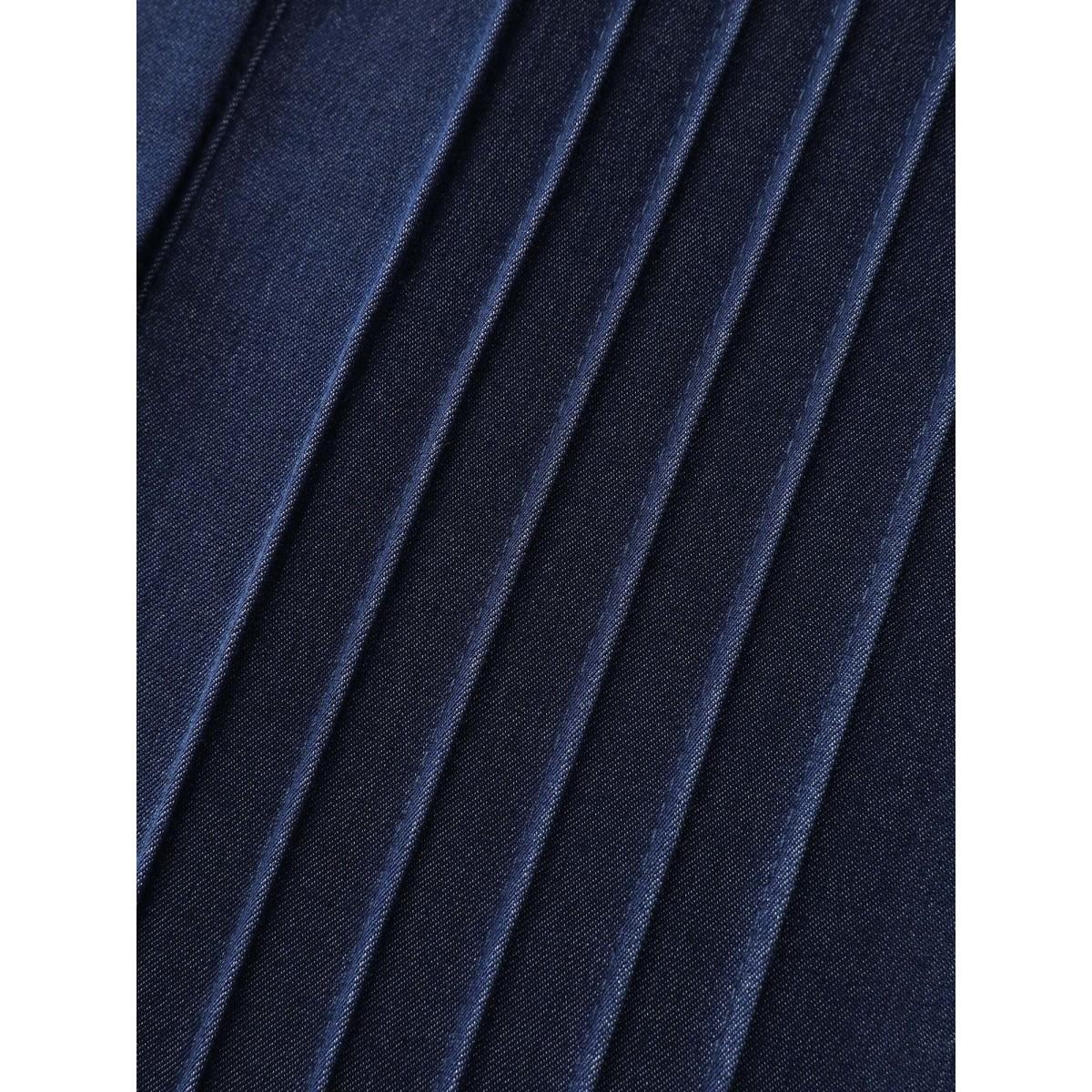 Plus Size Denimindigo Buttons Pleated Denim Blouse Women Long Sleeve Shirt collar Casual Blouses BloomChic 26/4X Product Image