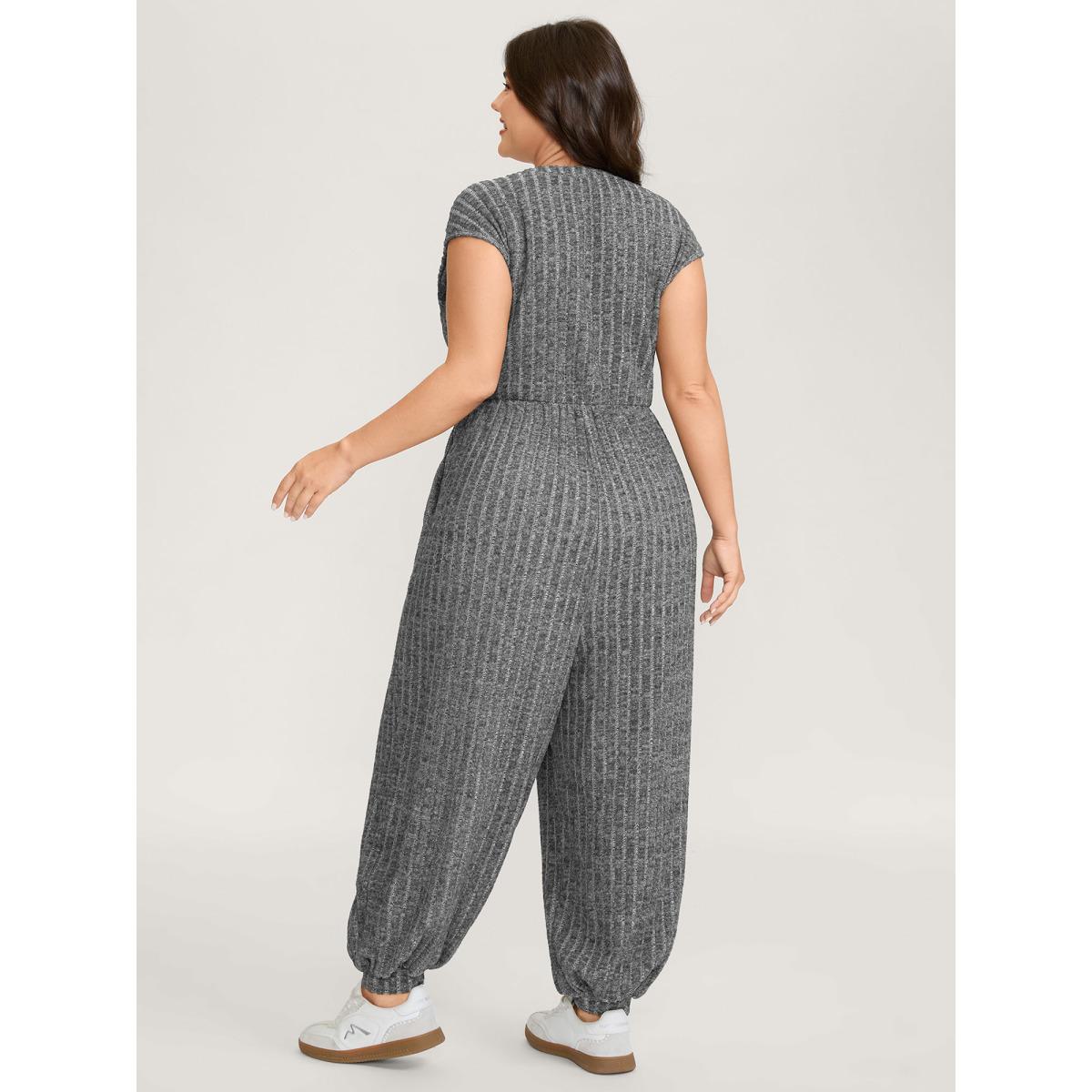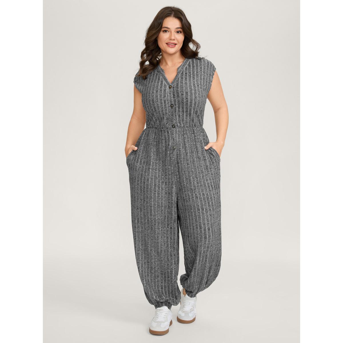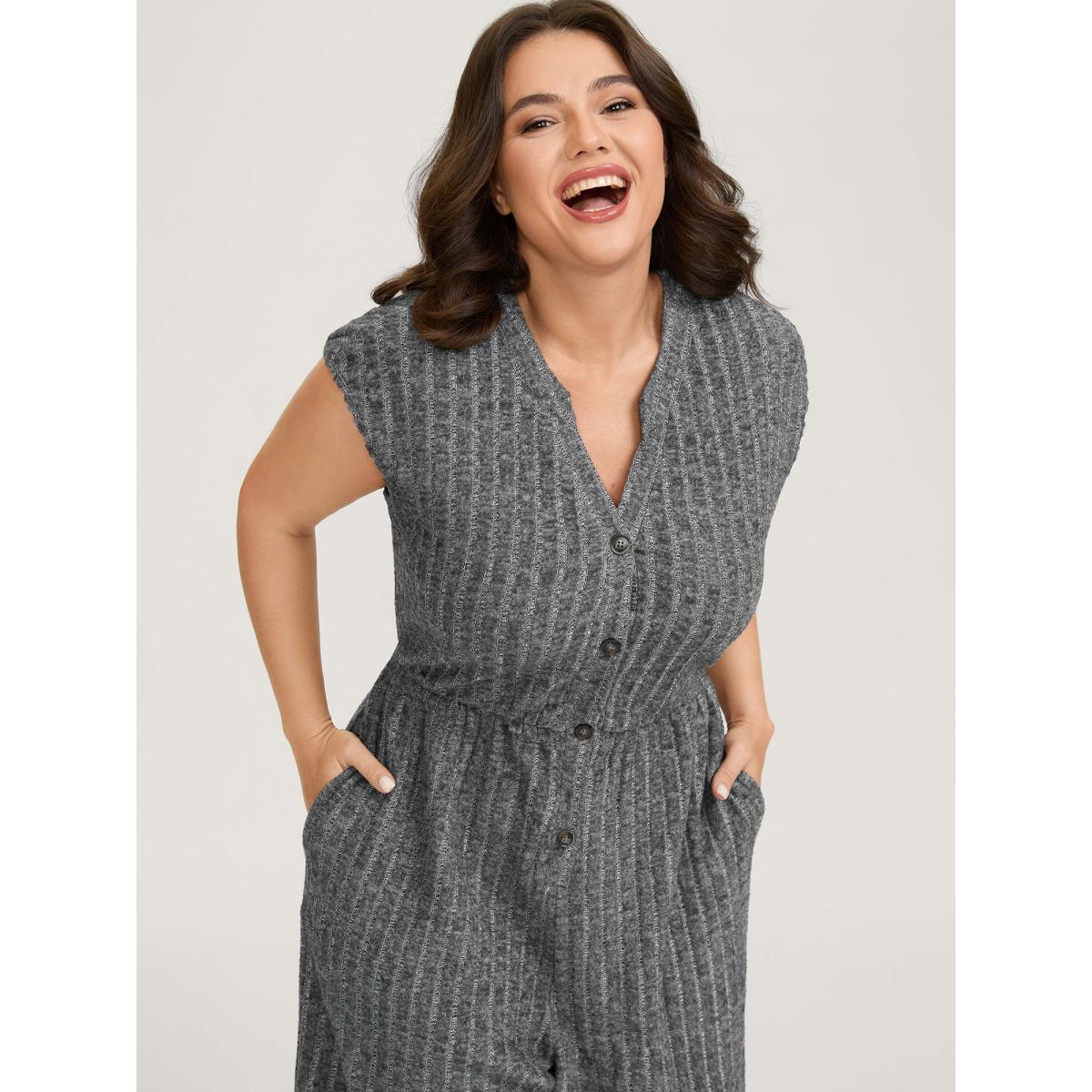 Plus Size DimGray Supersoft Textured Notched Collar Jumpsuit Women Leisure Sleeveless Flat collar with V-notch Casual Loose Jumpsuits BloomChic 26/4X