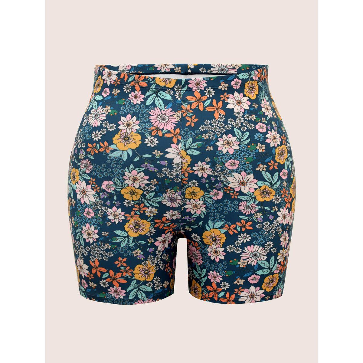 Plus Size Ditsy Floral High Rise Skinny Swim Bottom Women's Swimwear Indigo Beach Non High stretch Skinny High Rise Curve Swim Bottoms BloomChic 10/M