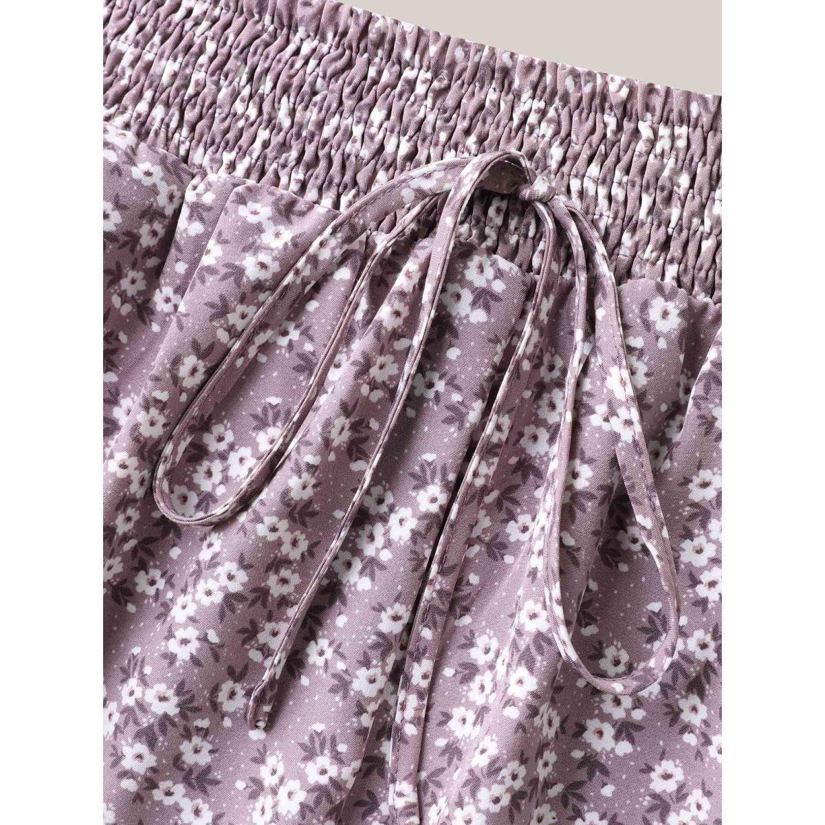 Plus Size Ditsy Floral Print Wide-Leg Shorts Women Lilac Leisure Non Wide Leg Casual Shorts BloomChic 22-24/3X