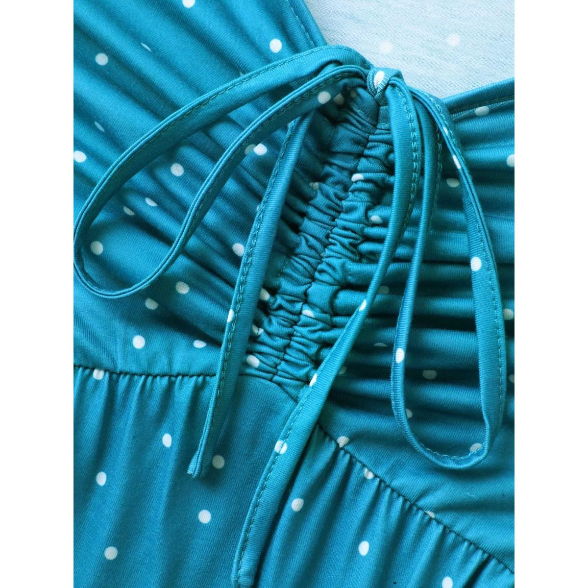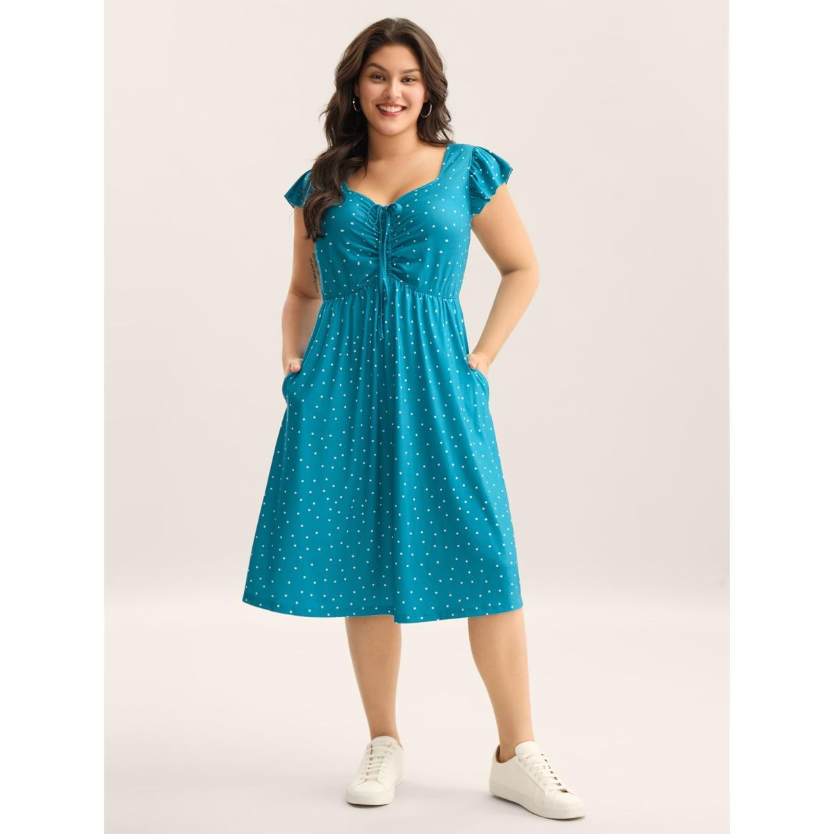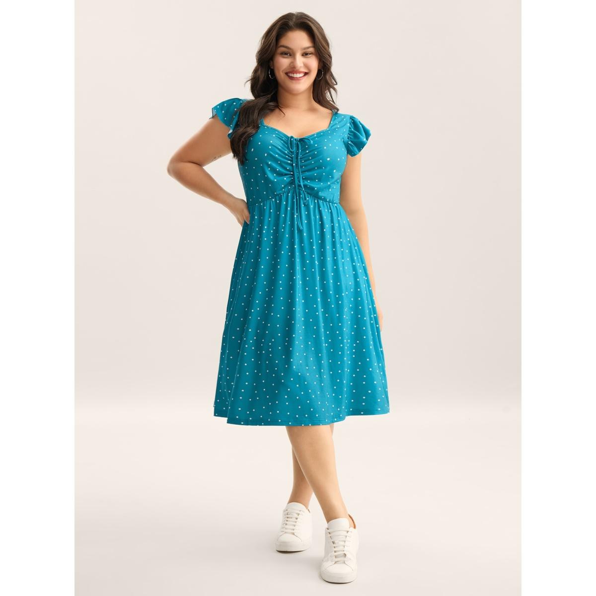 Plus Size Dot Print Ruched Drawstring Midi Dress Cerulean Women Leisure Heart neckline Short sleeve Curvy BloomChic 14-16/1X
