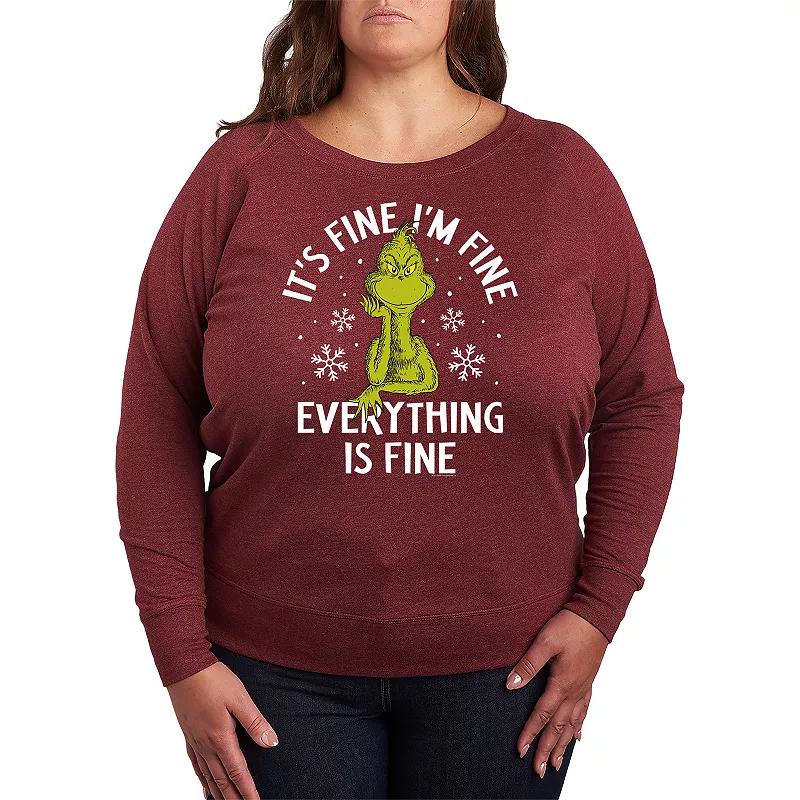 She will love showing off her style with this Plus Size Dr. Seuss Grinch Its Fine Im Fine Lightweight French Terry Sweatshirt. FEATURES Long sleeves ScoopneckFABRIC & CARE Cotton/Polyester, French Terry Machine wash Imported Size: 1X. Color: Black. Gender: female. Age Group: adult.