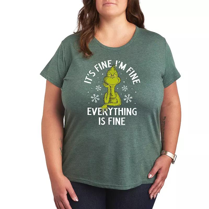 Shell love the look and feel of this Missy Plus Size Dr. Seuss Grinch Its Fine Im Fine Graphic Tee. Shell love the look and feel of this Missy Plus Size Dr. Seuss Grinch Its Fine Im Fine Graphic Tee. FEATURES Crewneck Short SleevesFABRIC & CARE Solid: Cotton Heather: Cotton/Polyester Machine wash Imported Size: 4X. Color: Med Grey. Gender: female. Age Group: adult.