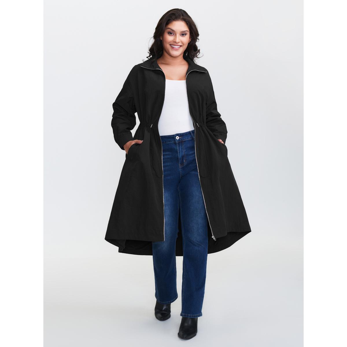 Plus Size Curved Hem Zipper Placket Pockets Coat Women Black Elegant Non Bodycon Ladies Everyday Winter Coats BloomChic 14-16/1X