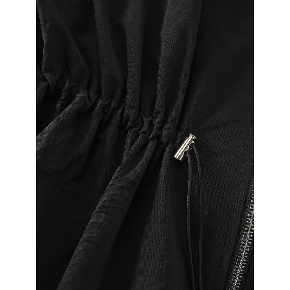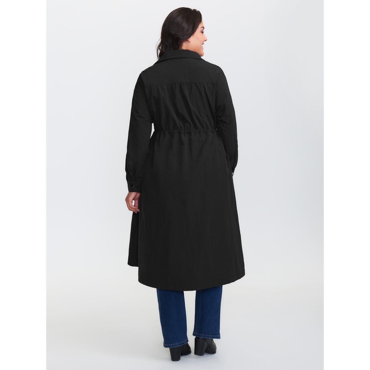 Plus Size Drawstring Pockets Zipper Long Coat Women Black Leisure Texture Ladies Casual Winter Coats BloomChic 22-24/3X Product Image