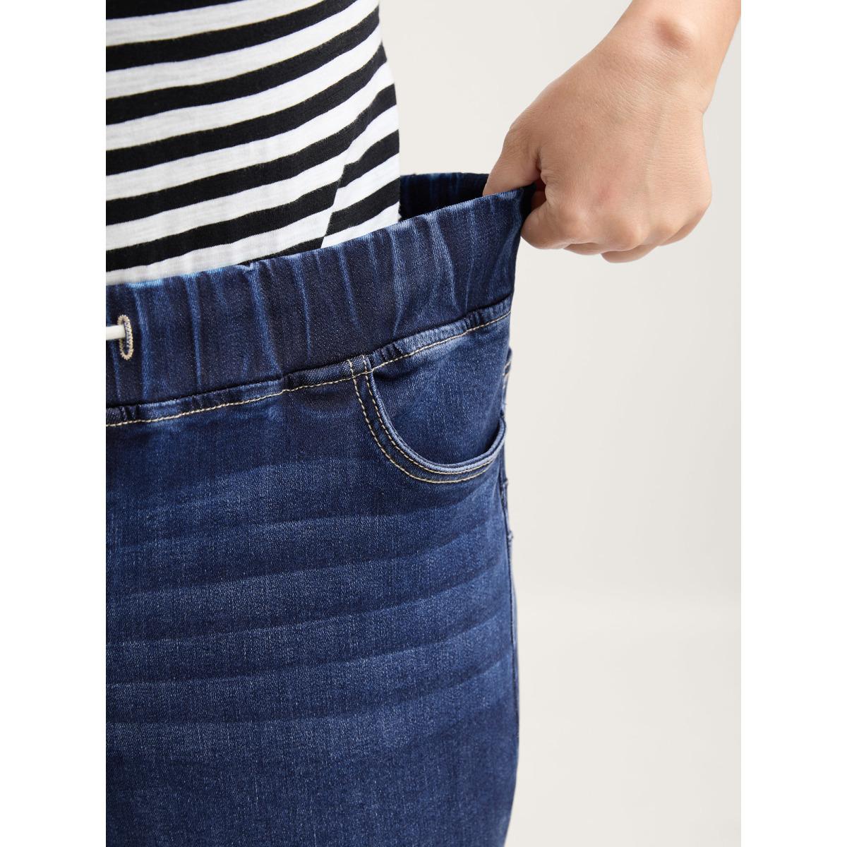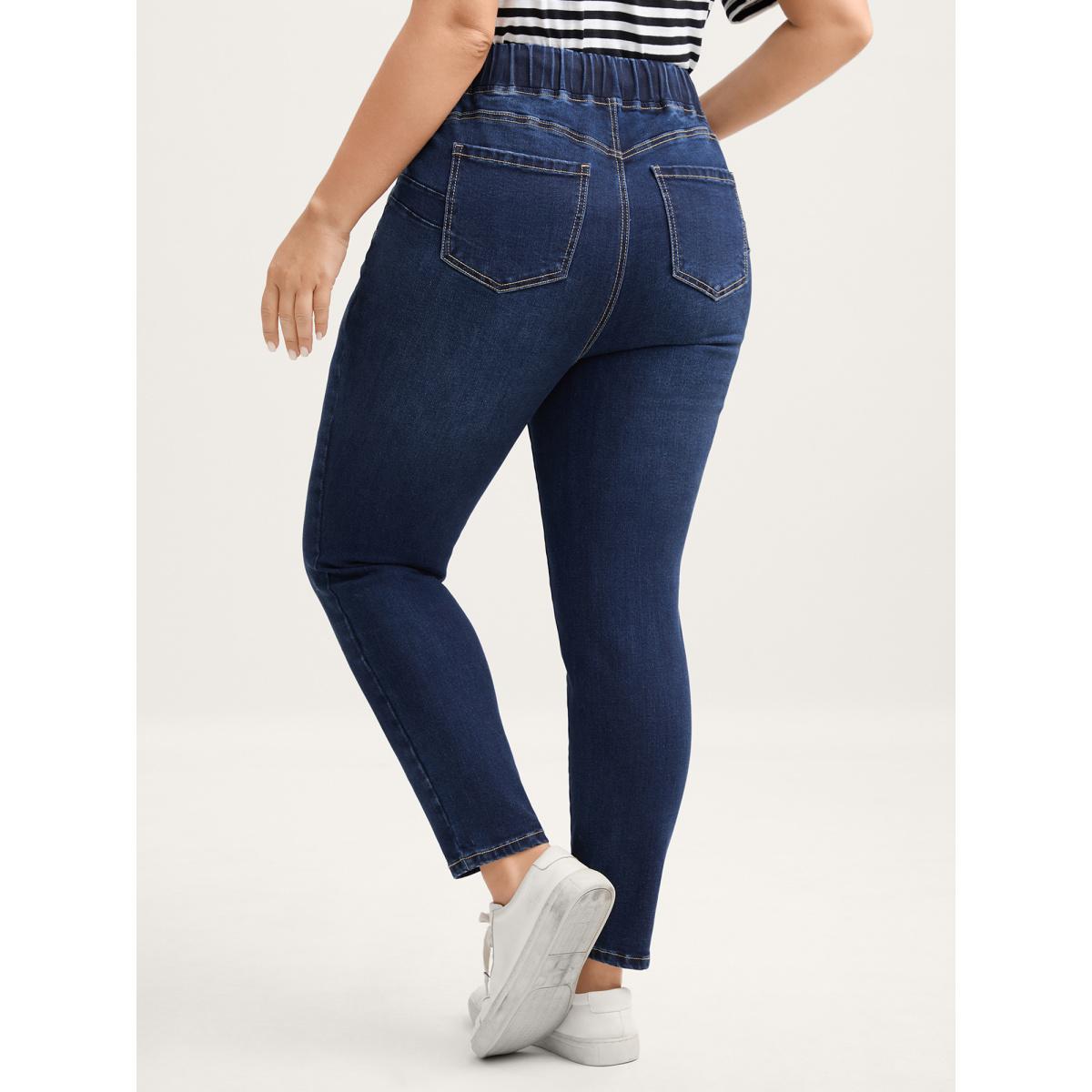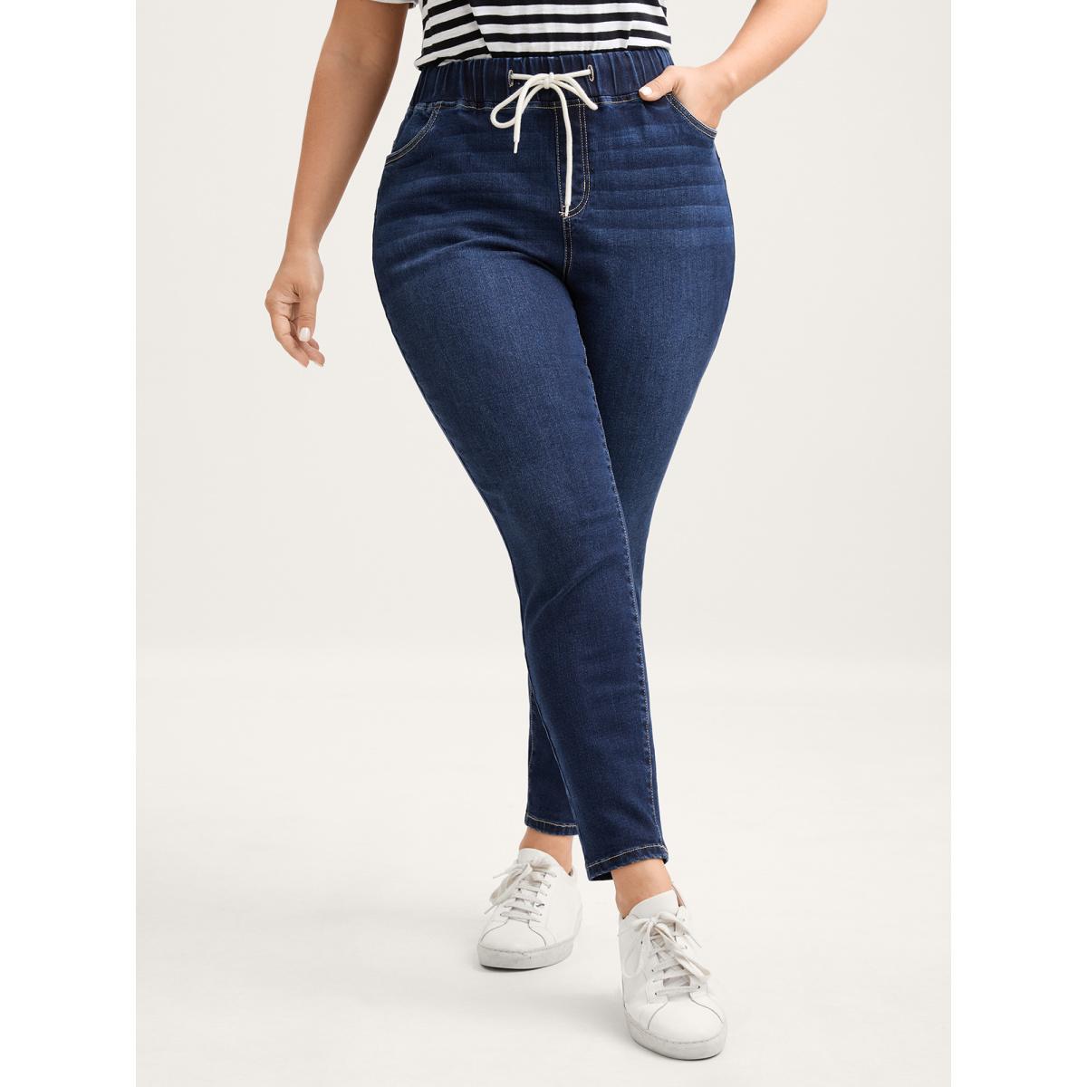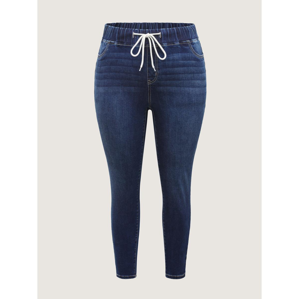 Plus Size Drawstring Stretchy Waist Skinny-Fit Jeans Women Darkindigo Leisure Elastic Waist High stretch Slanted pocket Jeans BloomChic 24/3X
