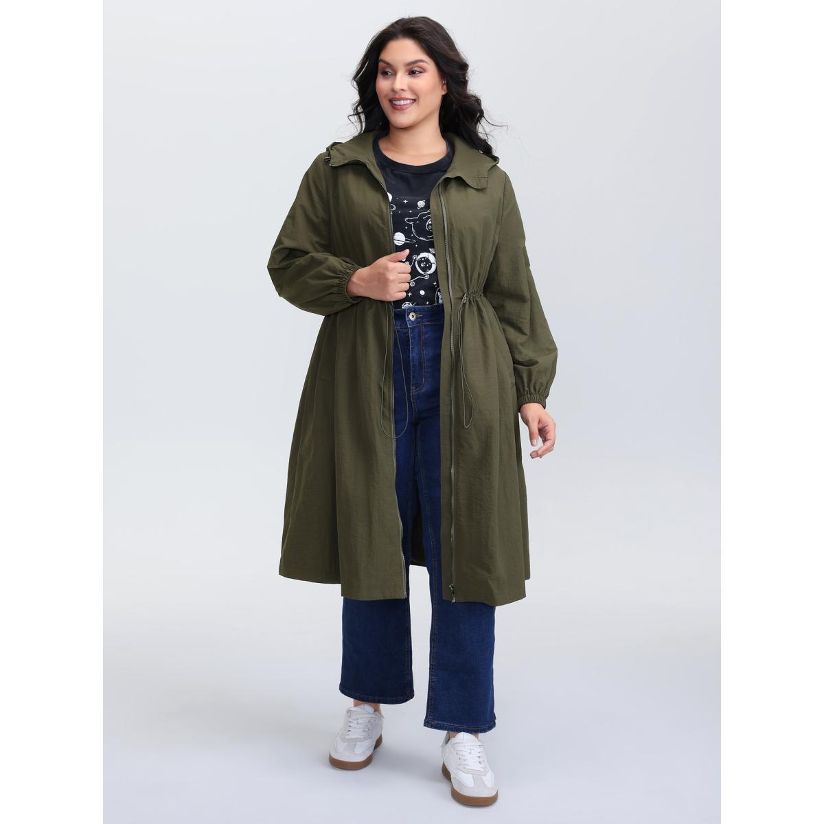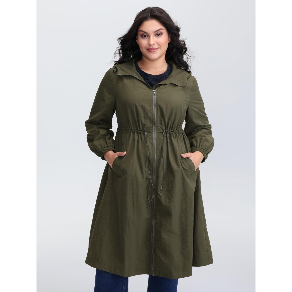 Plus Size Drawstring Waist Pockets Hooded Coat Women ArmyGreen Leisure Drawstring Ladies Casual Winter Coats BloomChic 18-20/2X