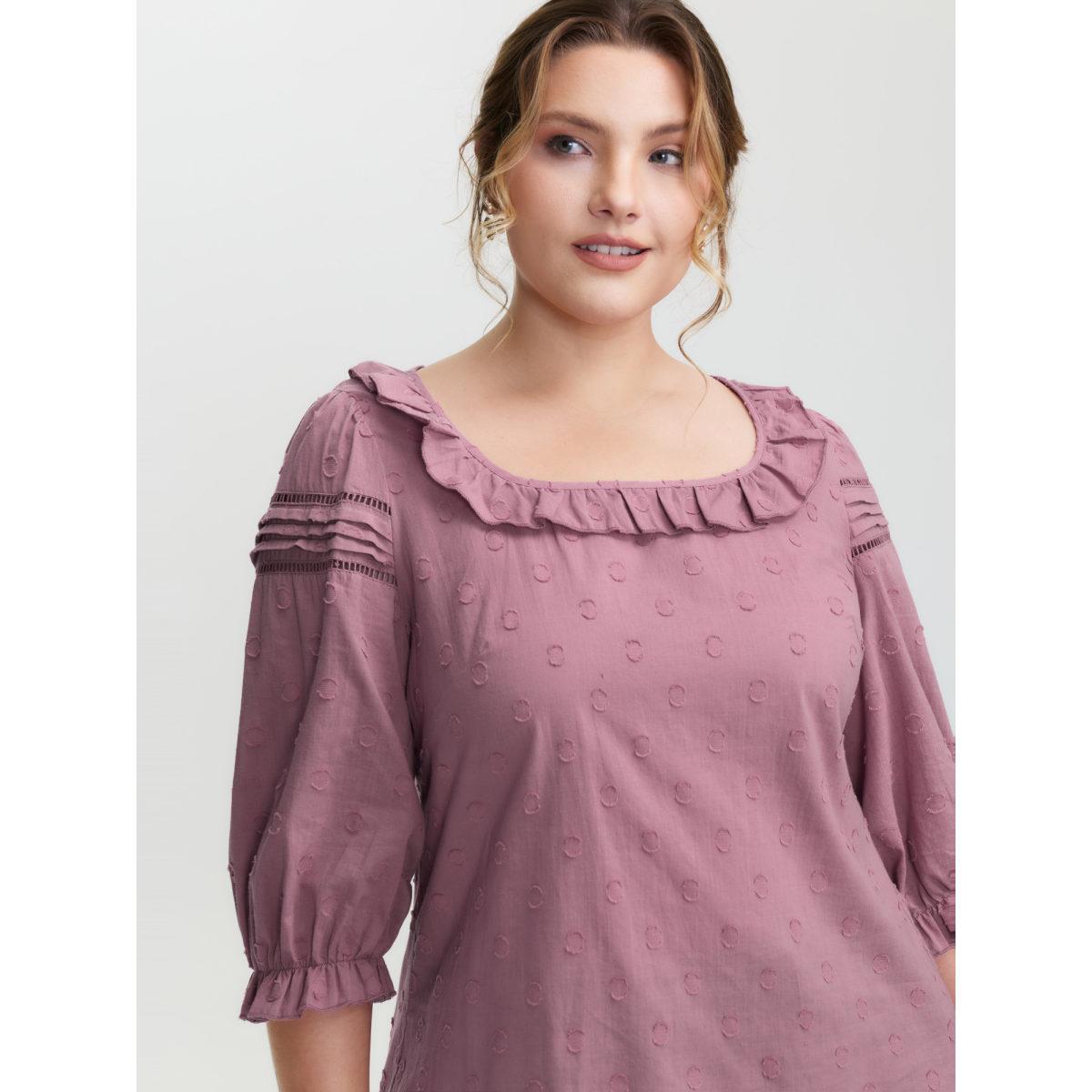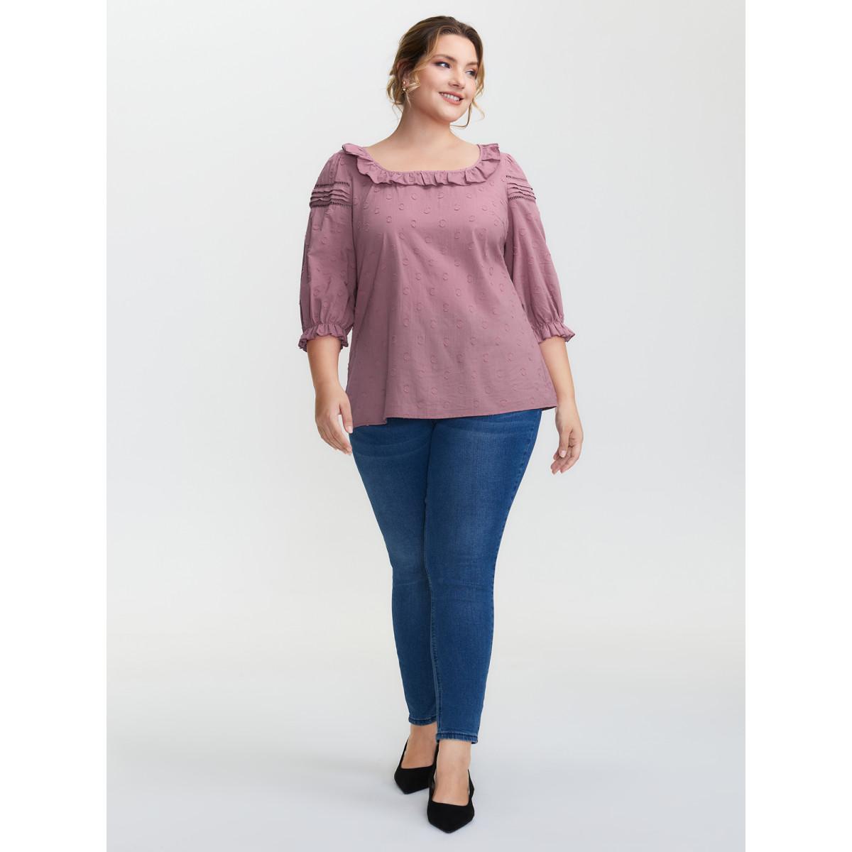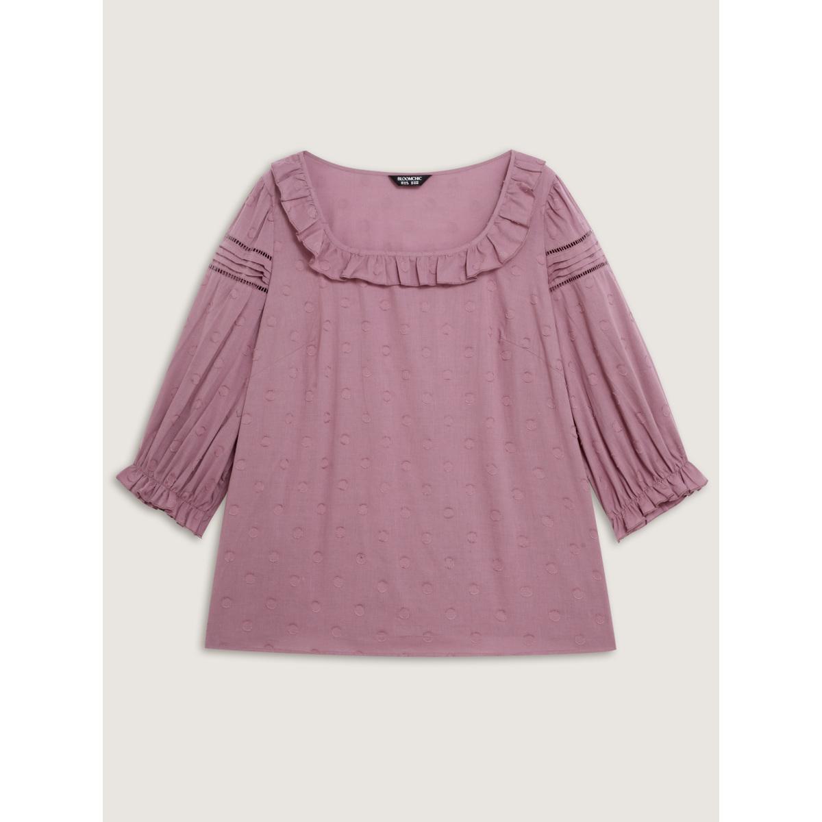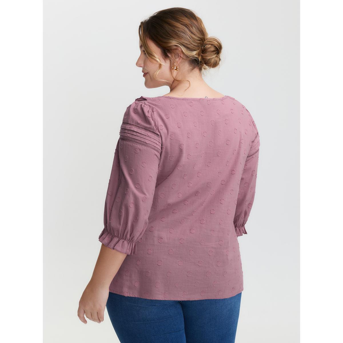 Plus Size DustyPink Cotton Textured Jacquard Puffy Sleeve Blouse Women Romantic Elbow-length sleeve Square Neck Elegant Blouses BloomChic 12/L