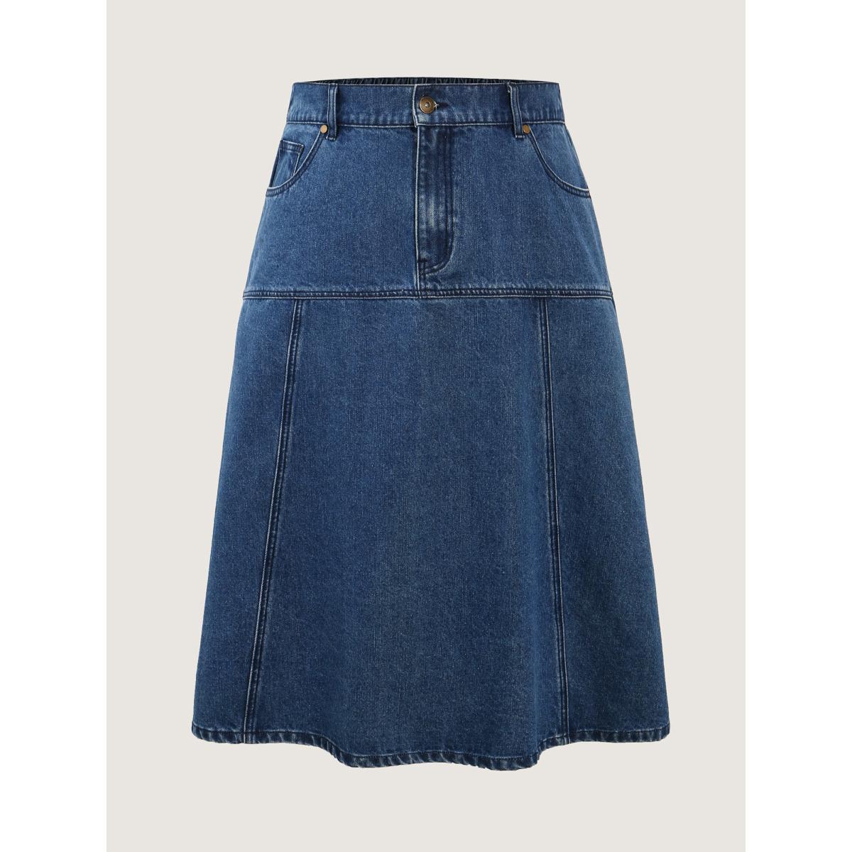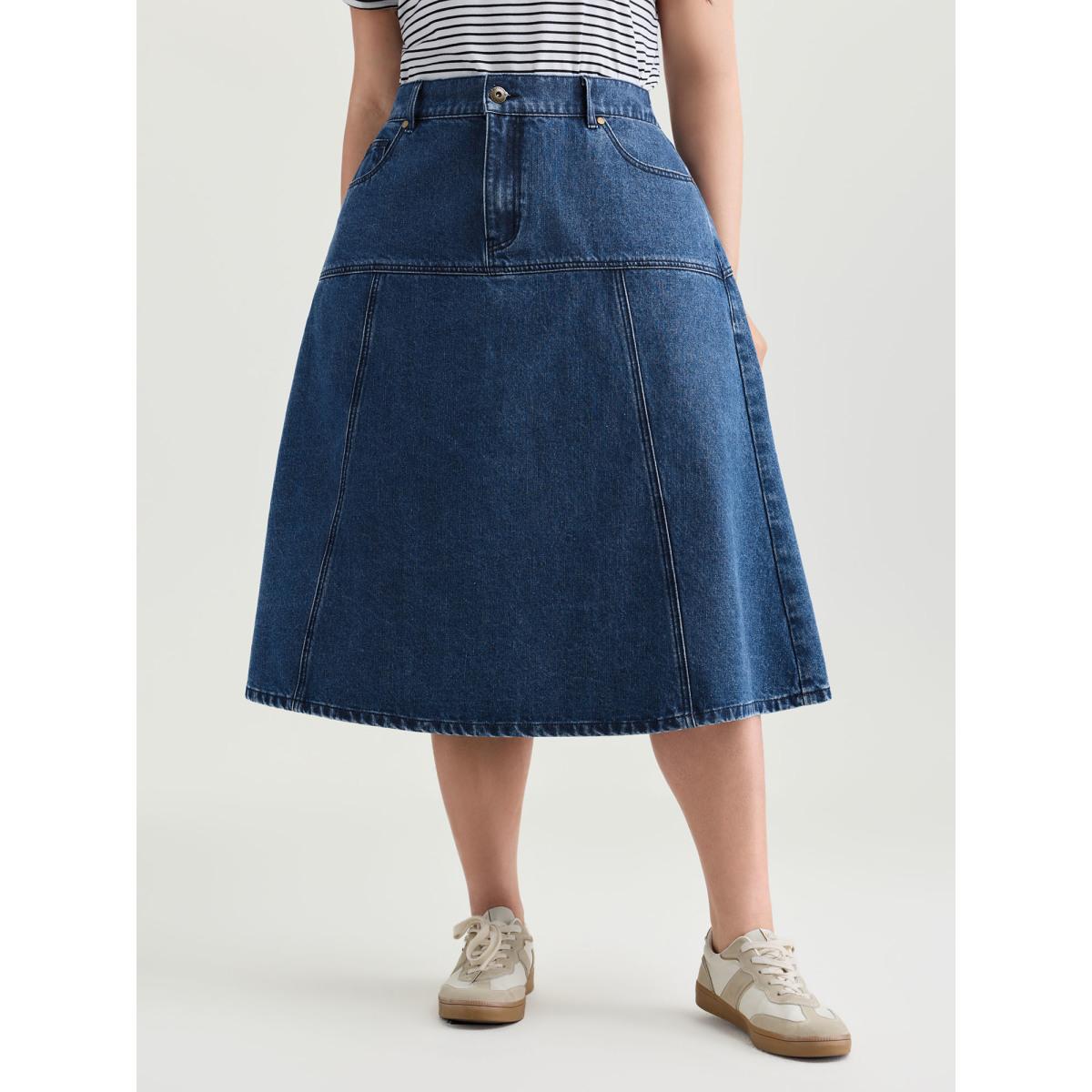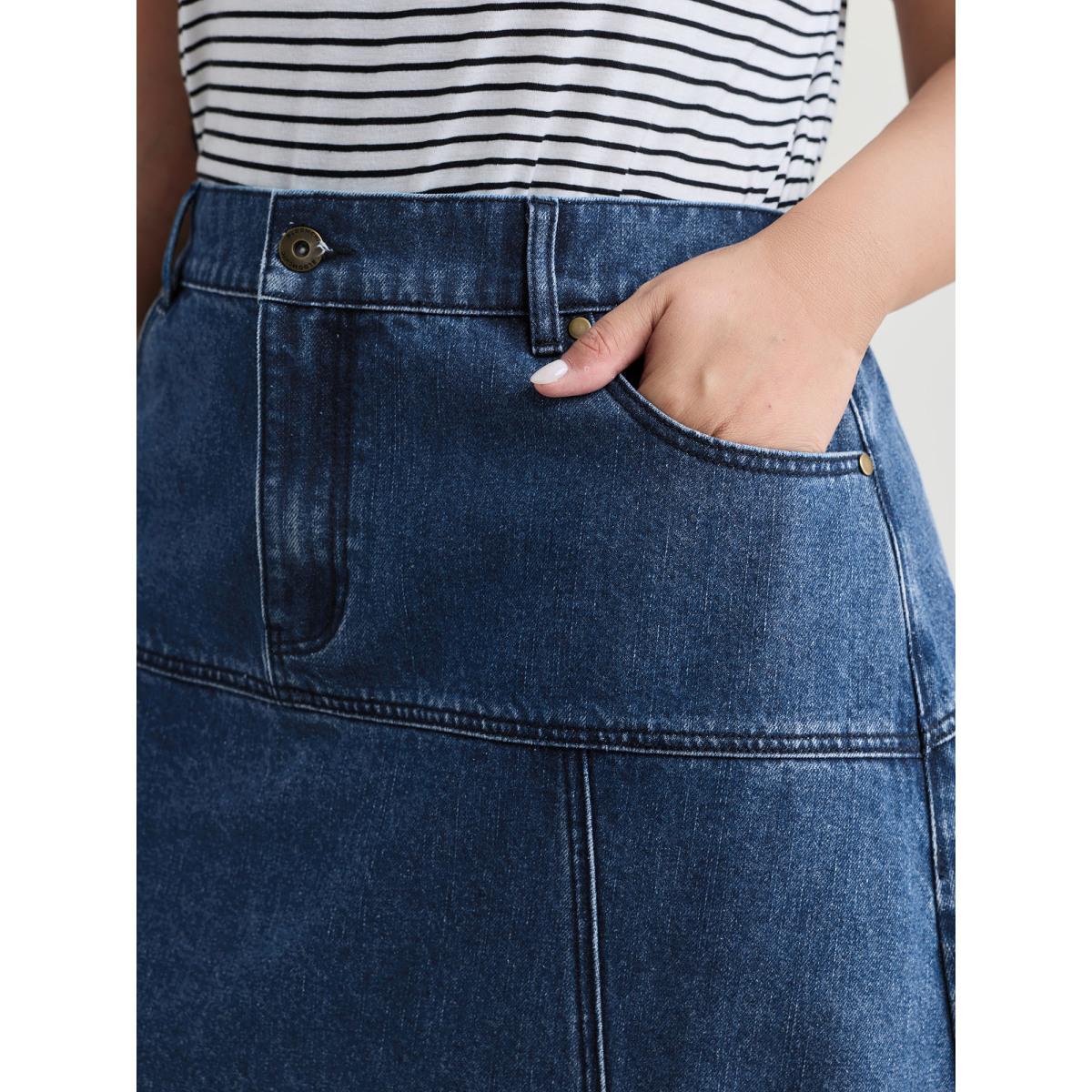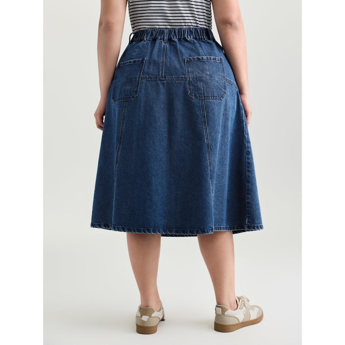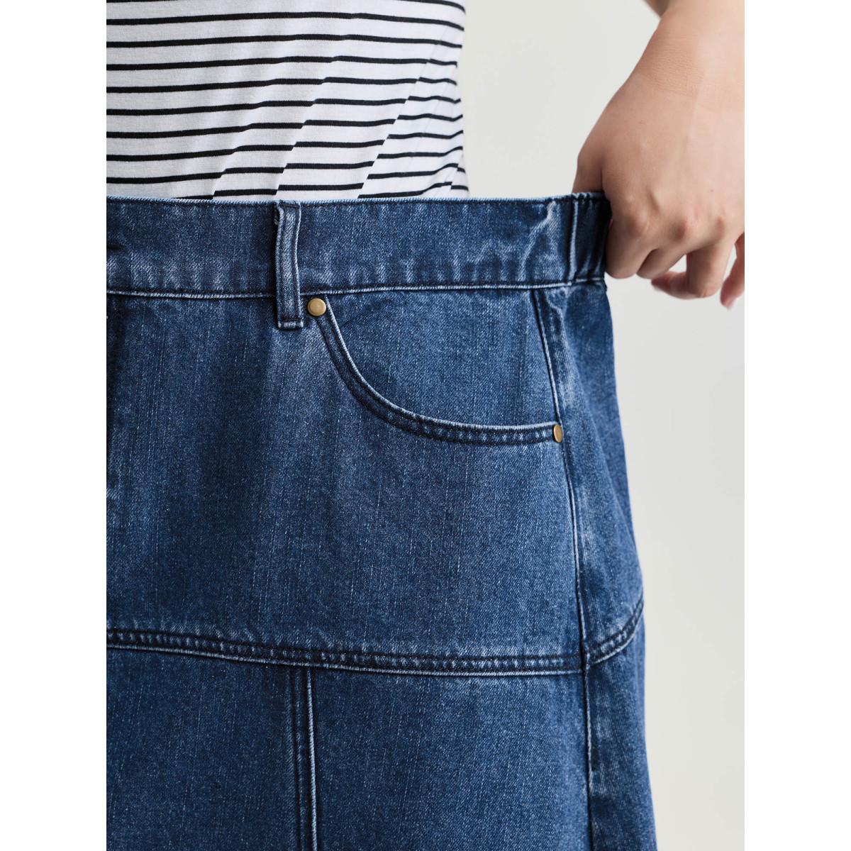 Plus Size Elastic Back Waistband Maxi Denim Skirt Women Darkindigo No stretch Casual Slanted pocket Leisure Denim Shorts BloomChic 18/2X