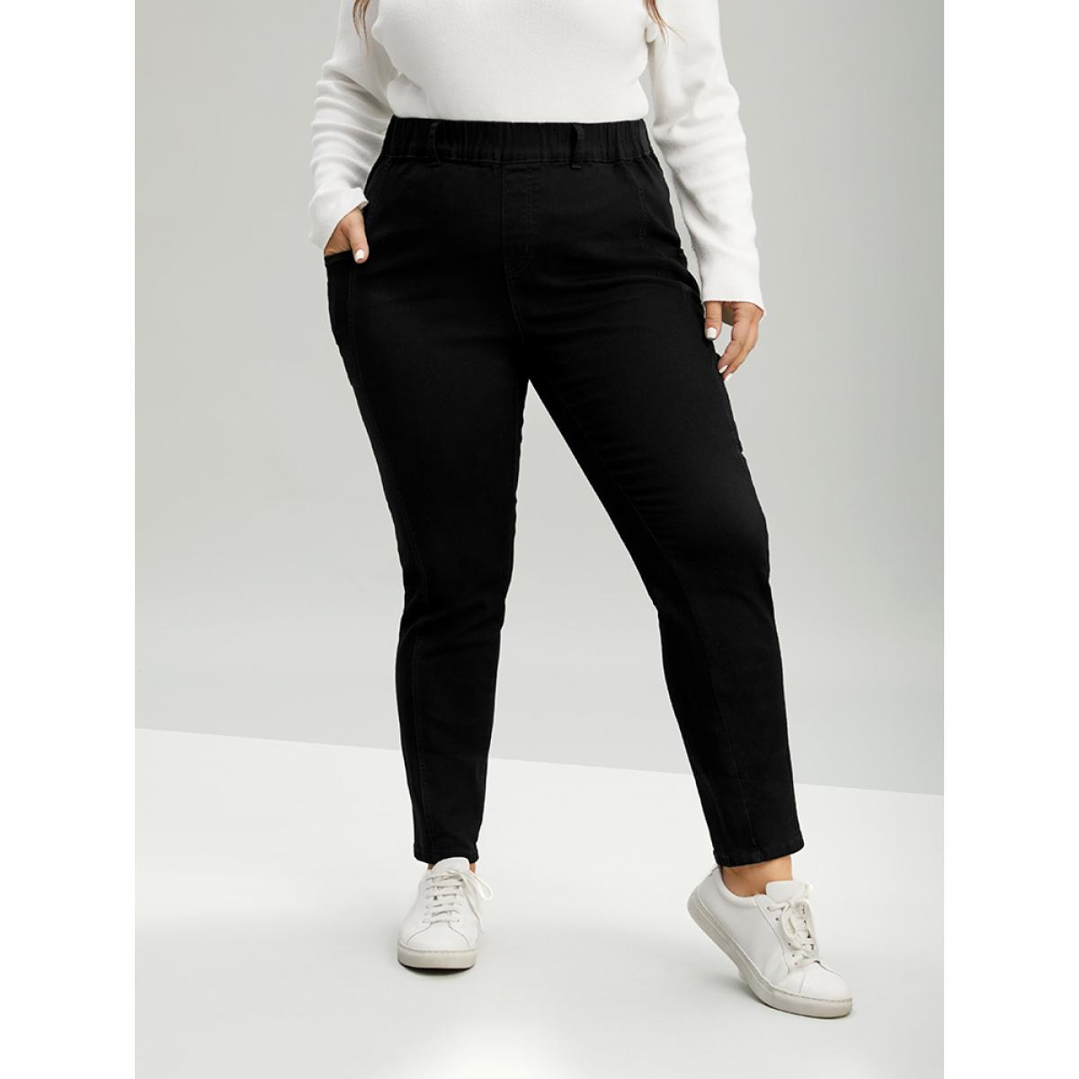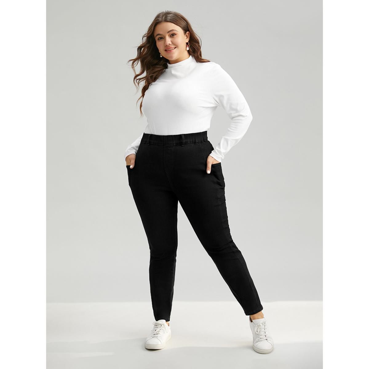 Plus Size Elastic Waist Side Pocket Skinny Jeans Women Black Casual Plain Plain High stretch Pocket Jeans BloomChic 24/3X