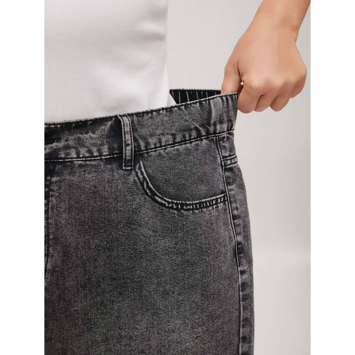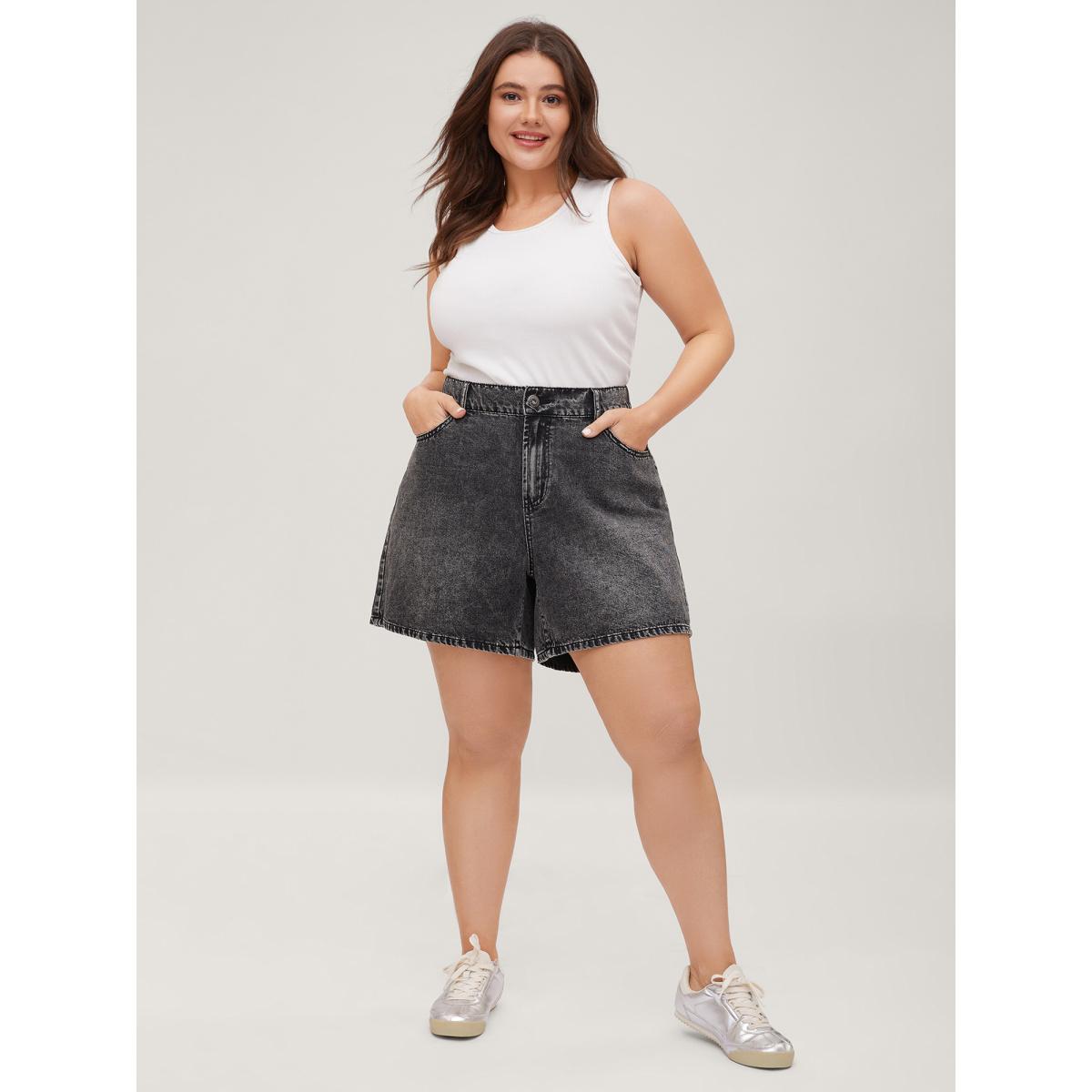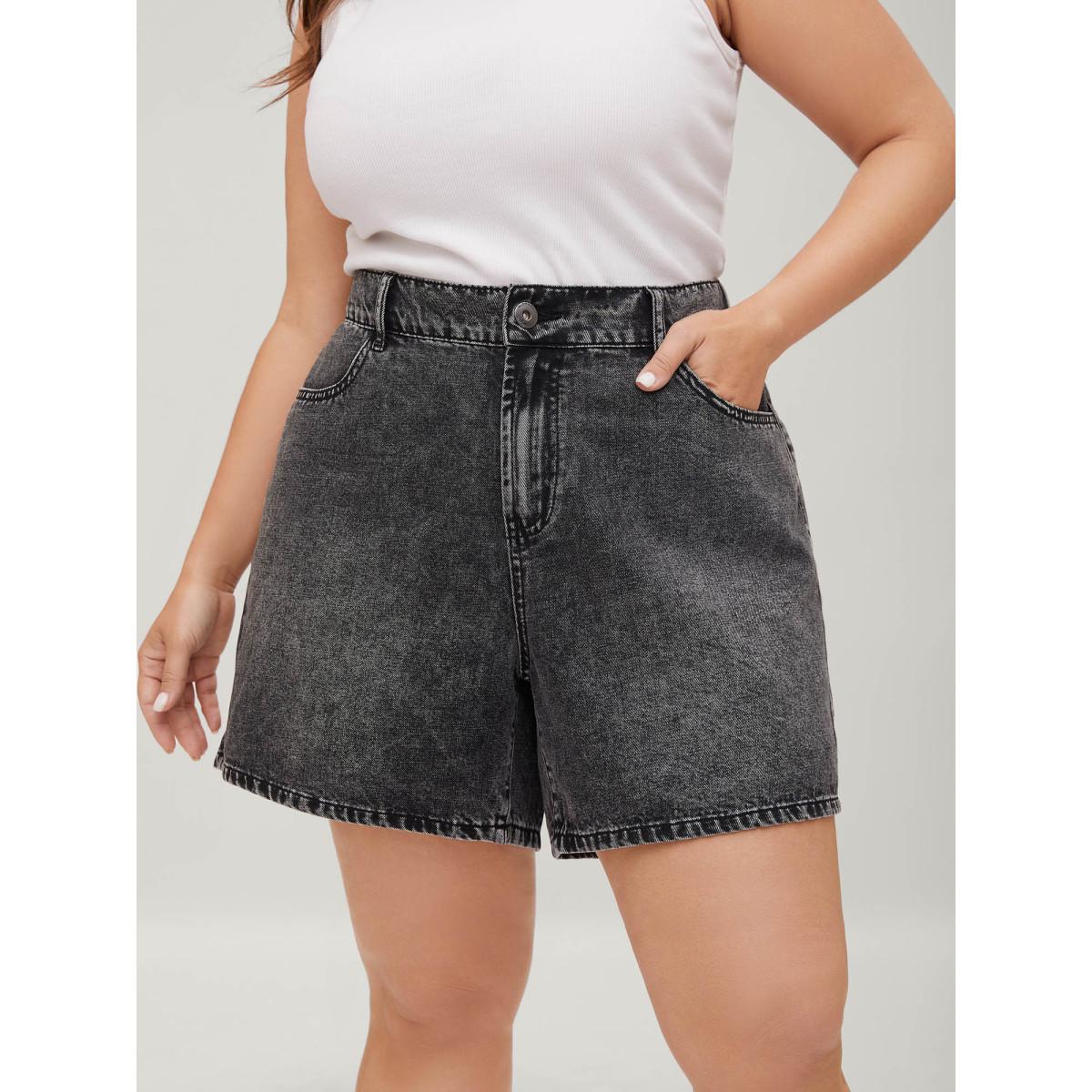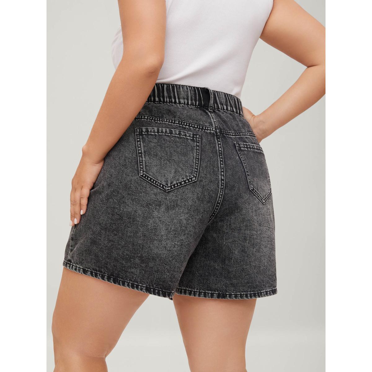 Plus Size Elastic Waistband Classic Cut Denim Shorts Women Denimcharcoal Non Mid Rise No stretch Casual Slanted pocket Leisure Denim Shorts BloomChic 10/M
