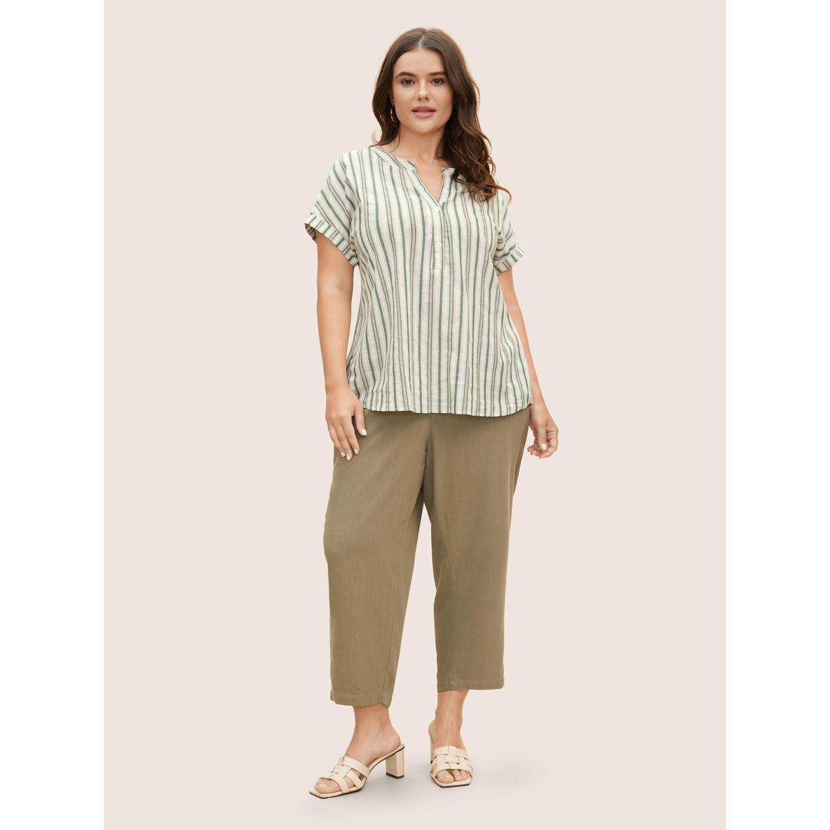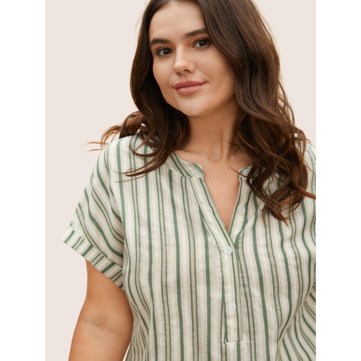 Plus Size Emerald Cotton Striped Dolman Sleeve Button Up Blouse Women Casual Cap Sleeve Flat collar with V-notch Everyday Blouses BloomChic 22-24/3X