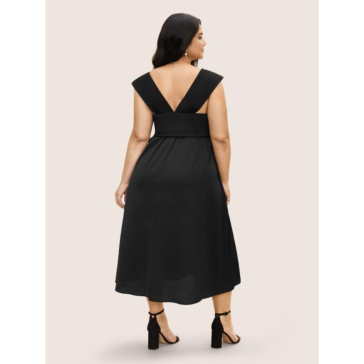Plus Size Plain Elastic Waist Midi Tank Dress Black Women Elegant Non Square Neck Sleeveless Curvy BloomChic 22-24/3X