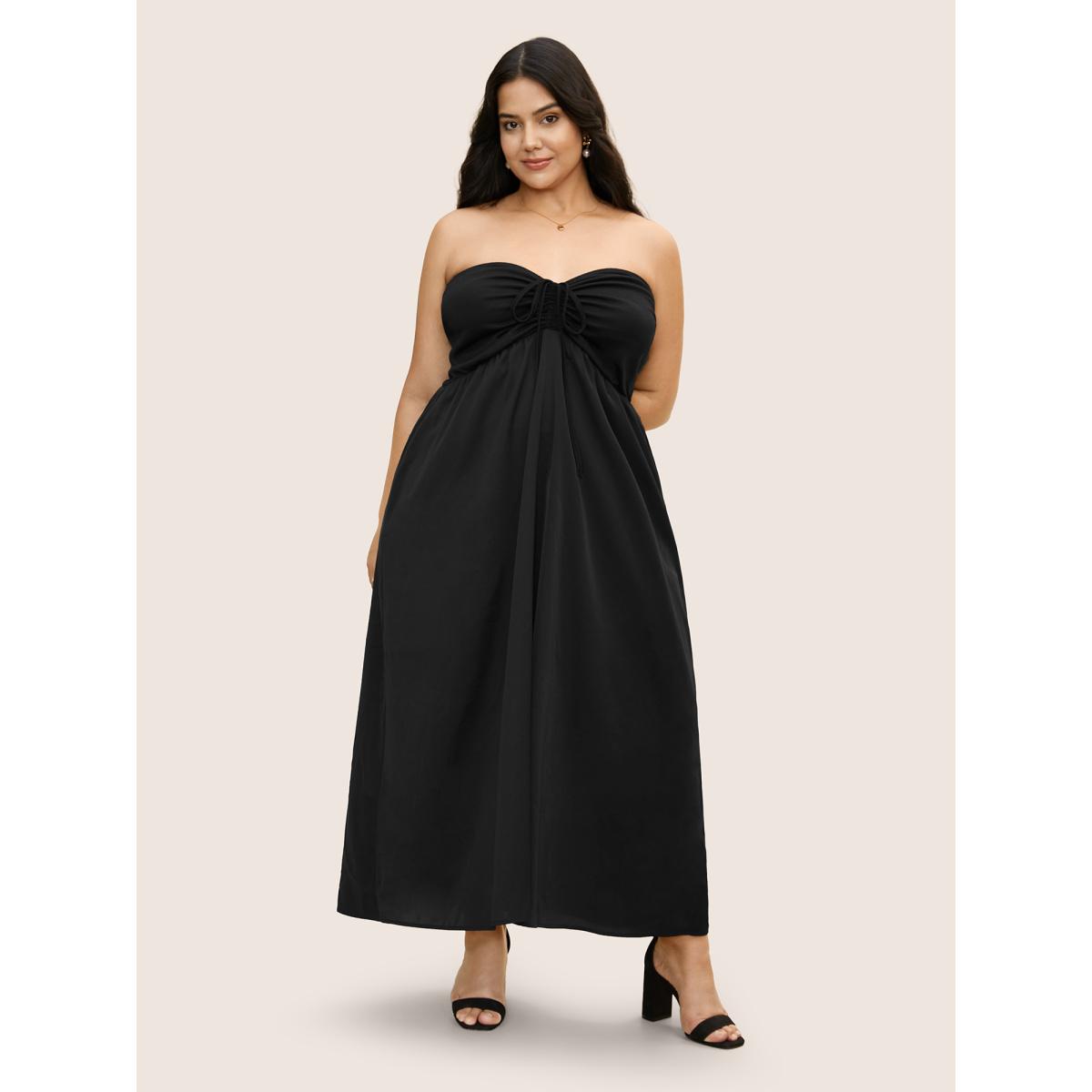 Plus Size Everywhere Dress - A-Line Monochromatic Dress Black Women Elegant Gathered Non Sleeveless Curvy BloomChic 18-20/2X