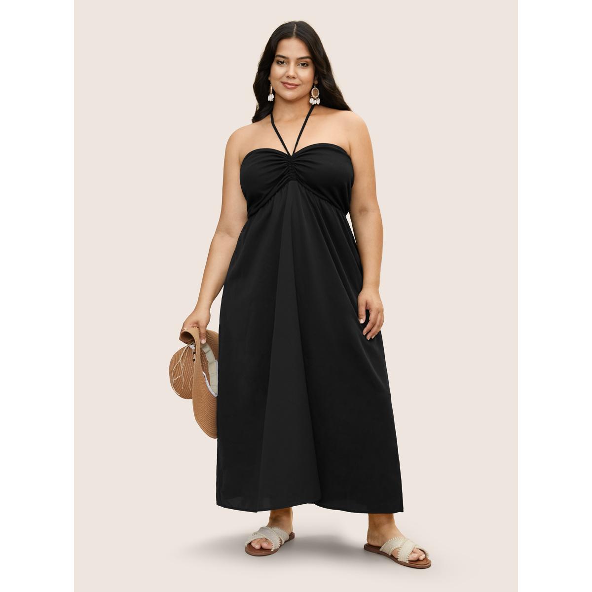Plus Size Everywhere Dress - A-Line Monochromatic Dress Black Women Elegant Gathered Non Sleeveless Curvy BloomChic 18-20/2X Product Image