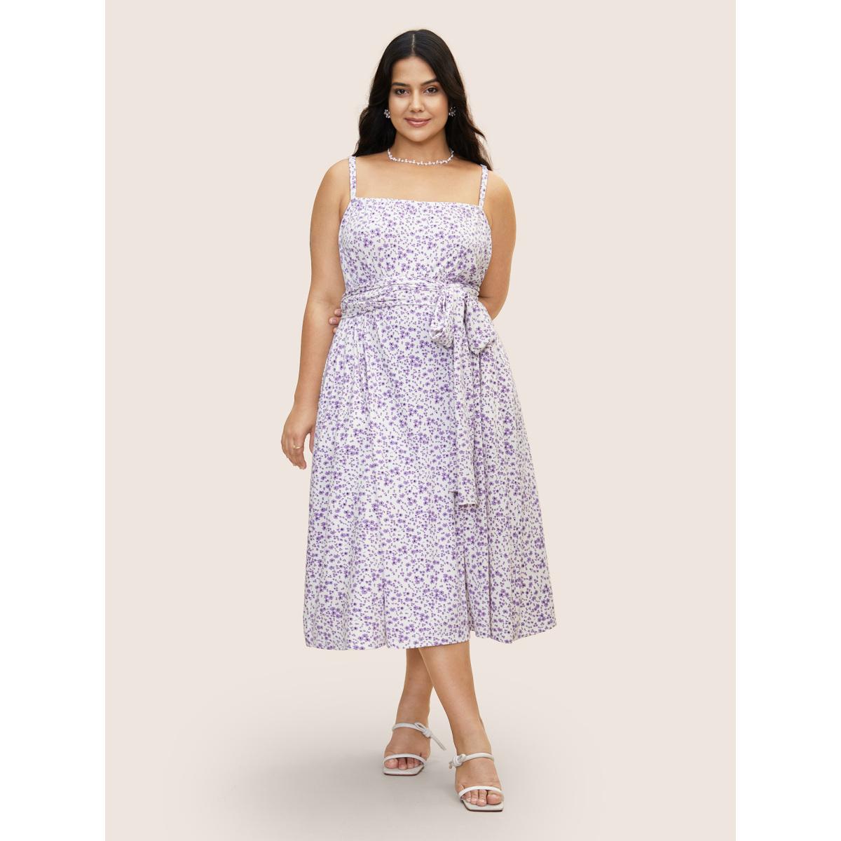 Plus Size Everywhere Dress - Ditsy Floral Belted Dress Lilac Women Elegant Belted Non Short sleeve Curvy BloomChic 14-16/1X