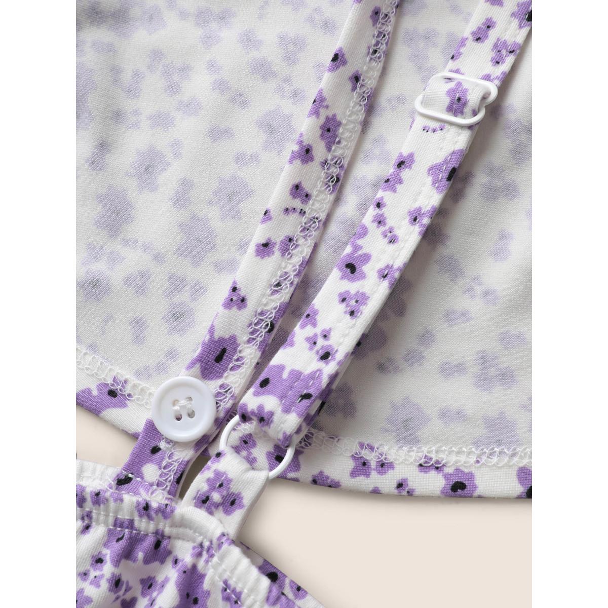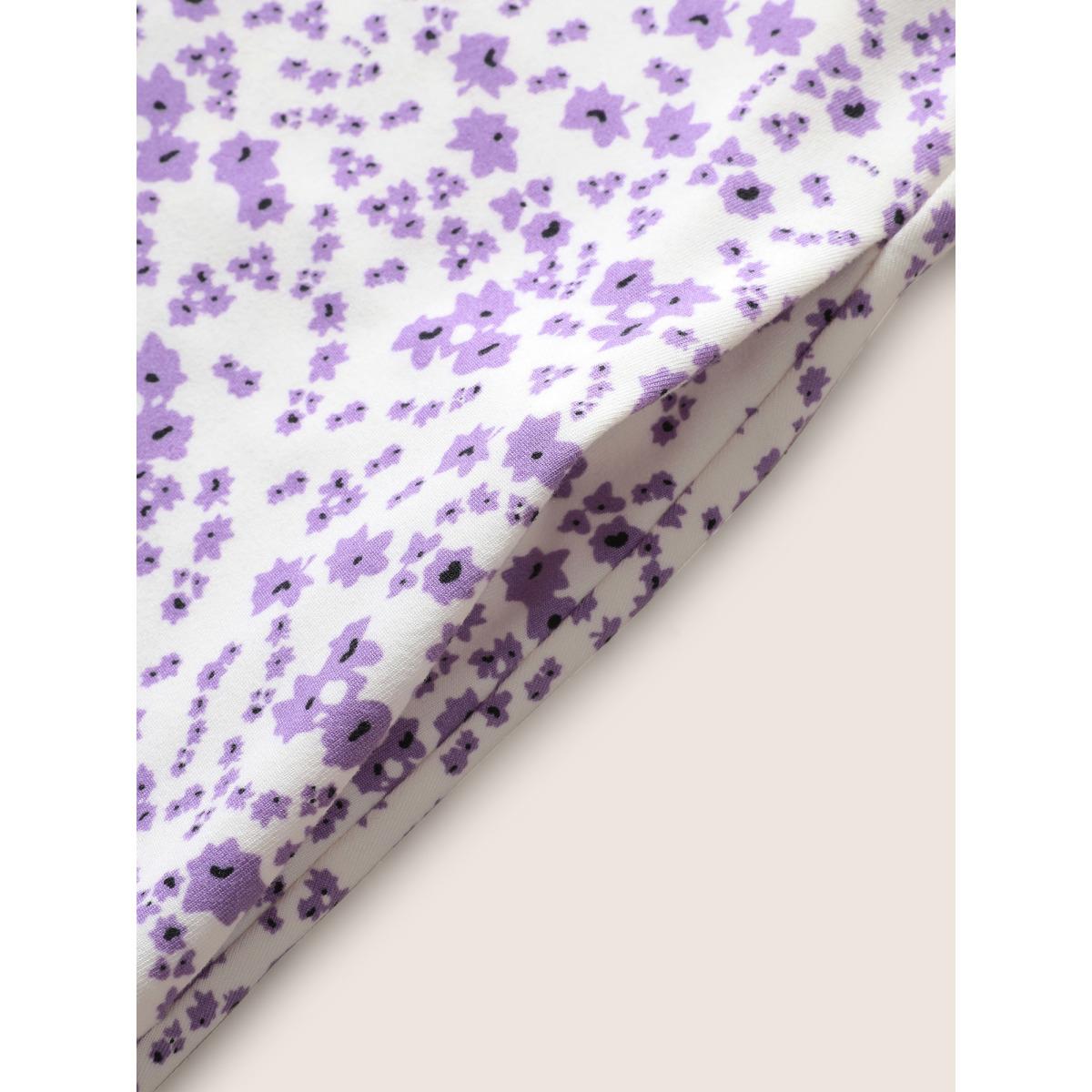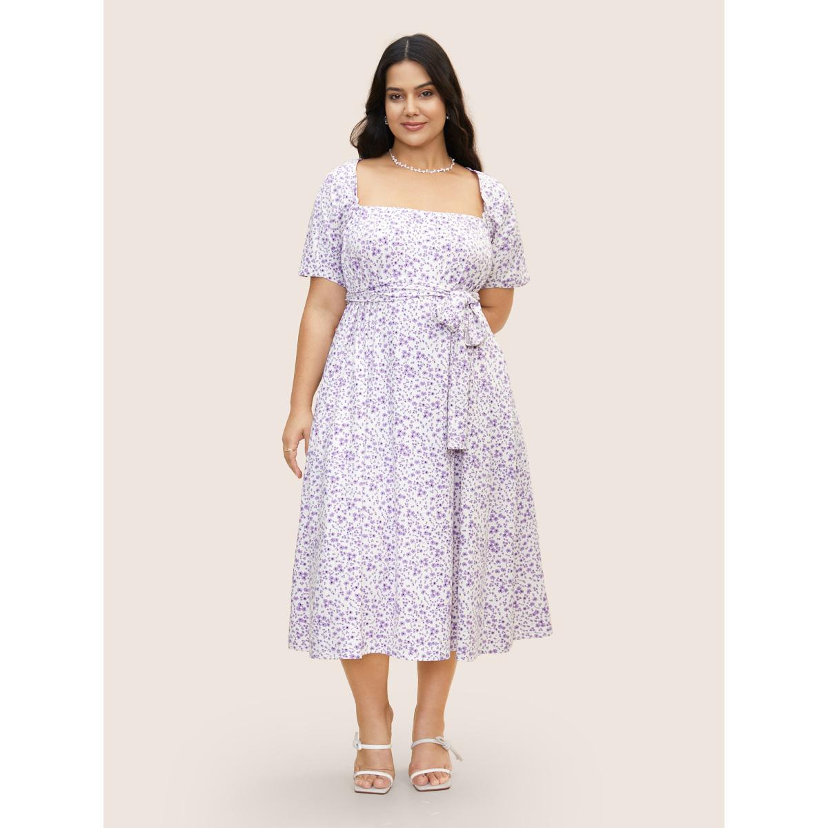 Plus Size Ditsy Floral Elastic Waist Knot Drawstring Dress Lilac Women Casual Non V-neck Short sleeve Curvy Midi Dress BloomChic 30/6X