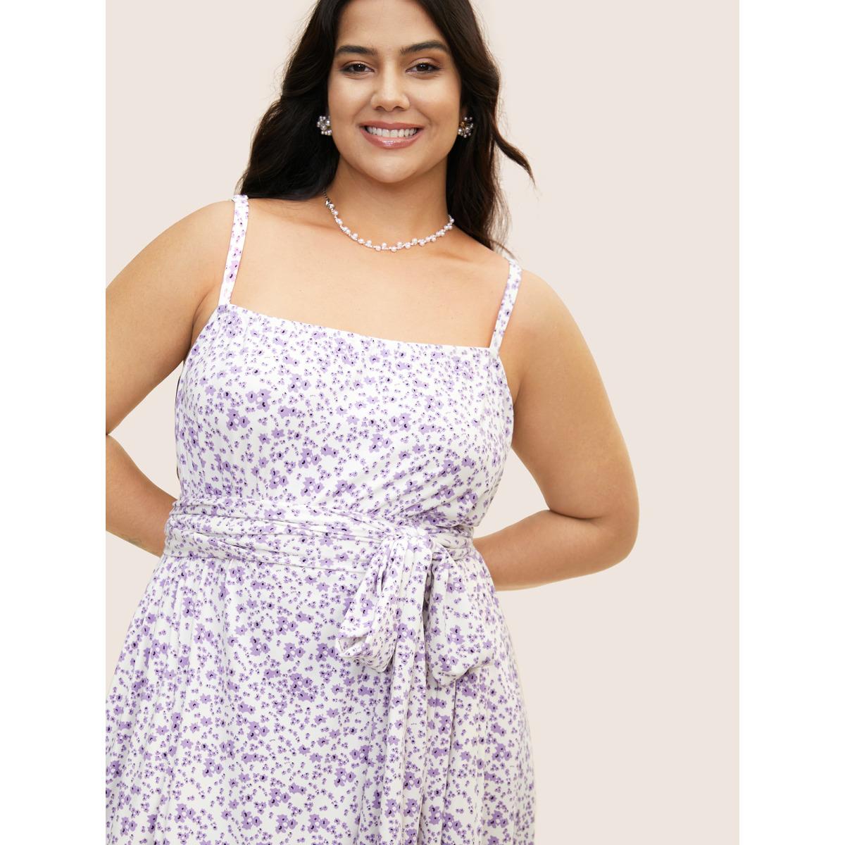 Plus Size Everywhere Dress - Ditsy Floral Belted Dress Lilac Women Elegant Belted Non Short sleeve Curvy BloomChic 14-16/1X Product Image