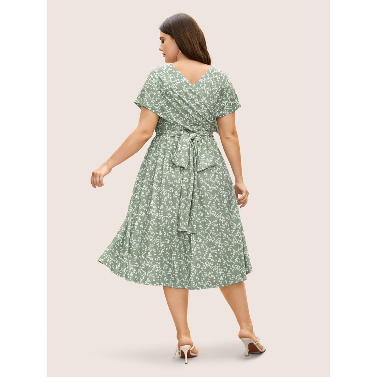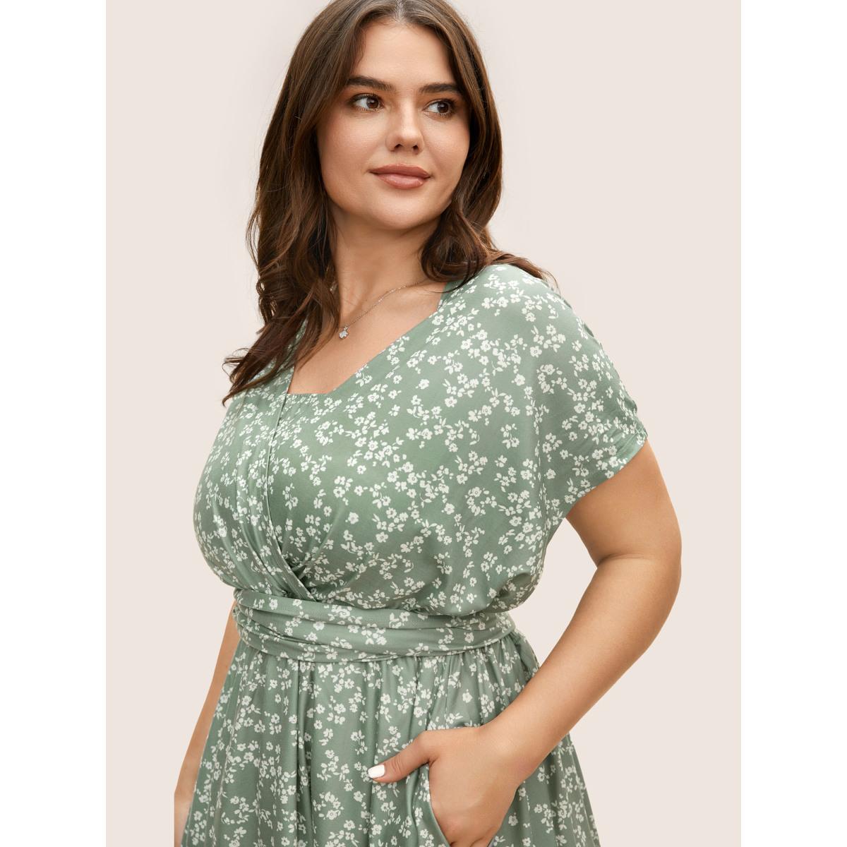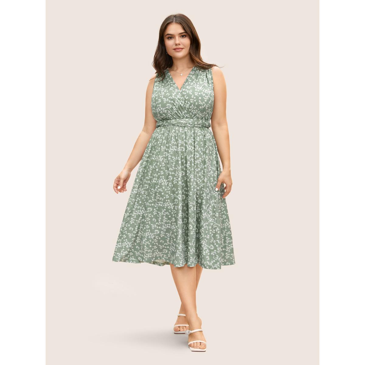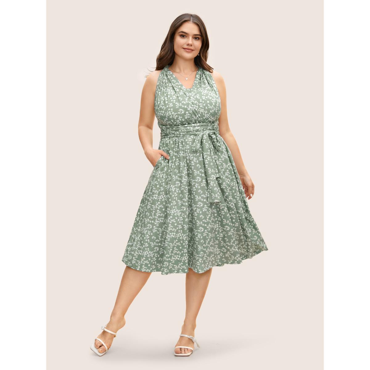 Plus Size Everywhere Dress - Ditsy Floral Wrap Pocket Dress Palemauve Women Elegant Belted V-neck Sleeveless Curvy BloomChic 22-24/3X