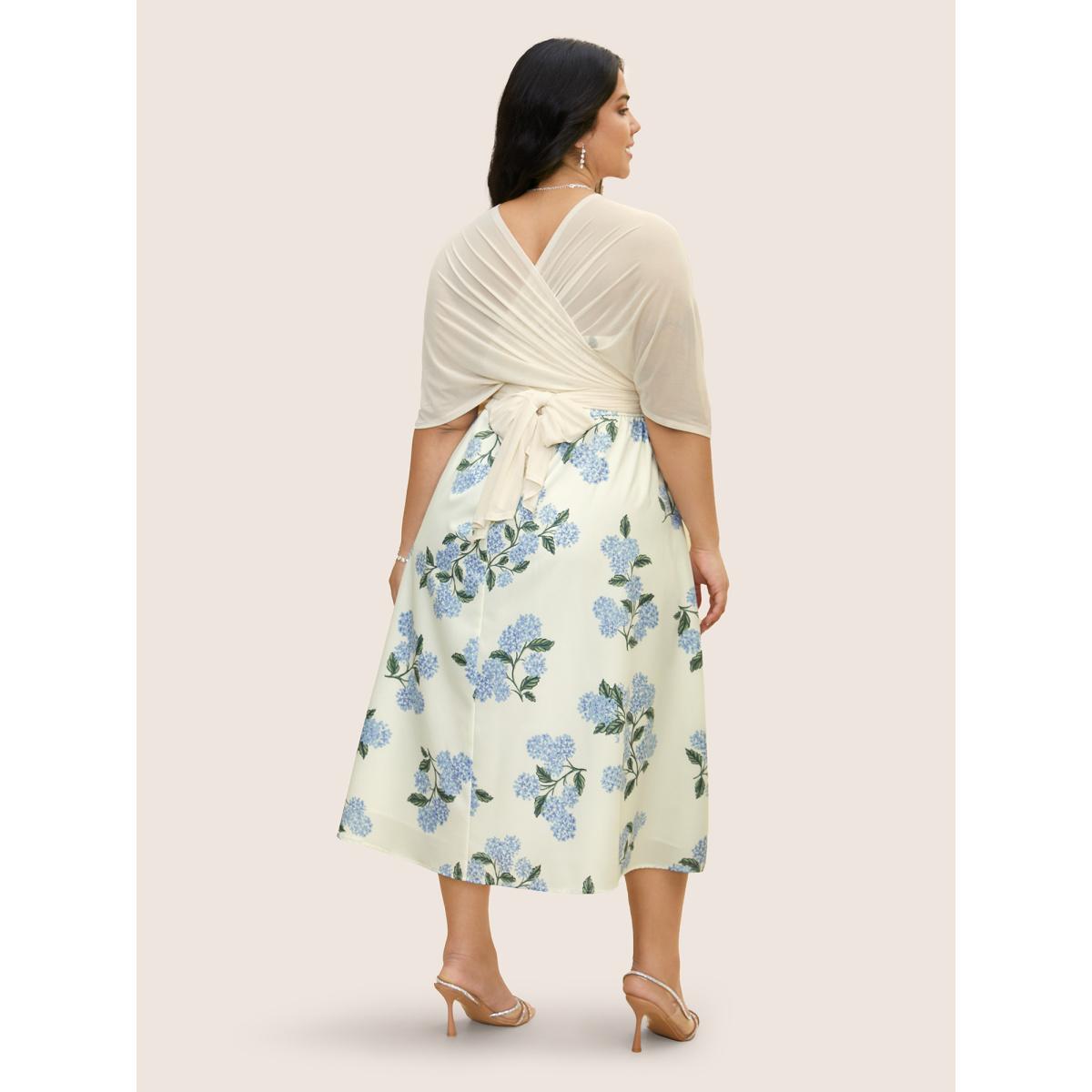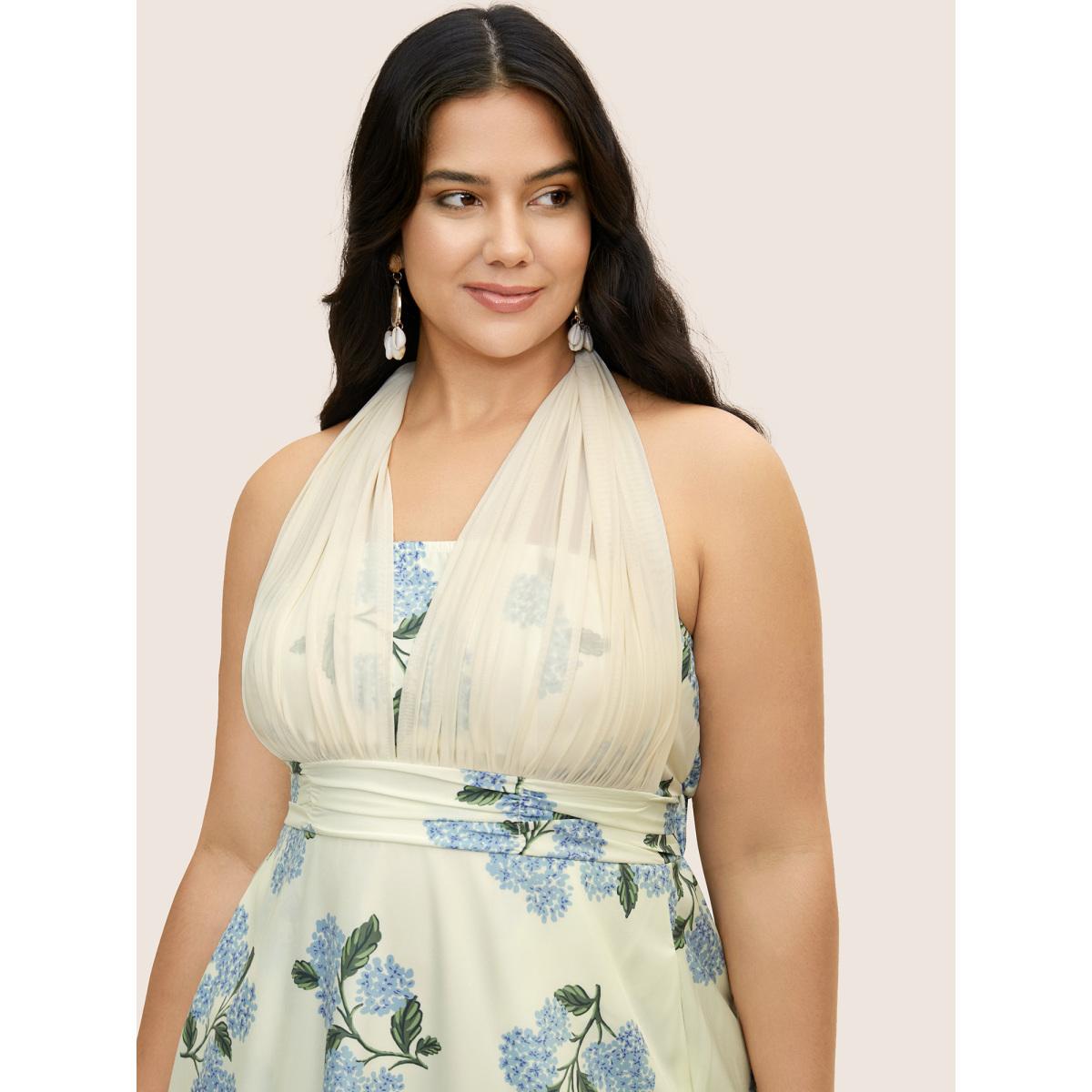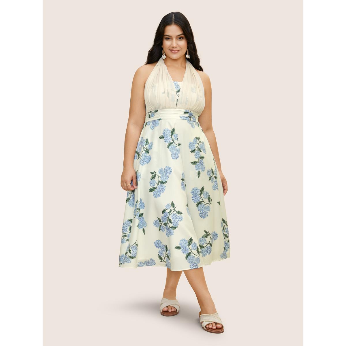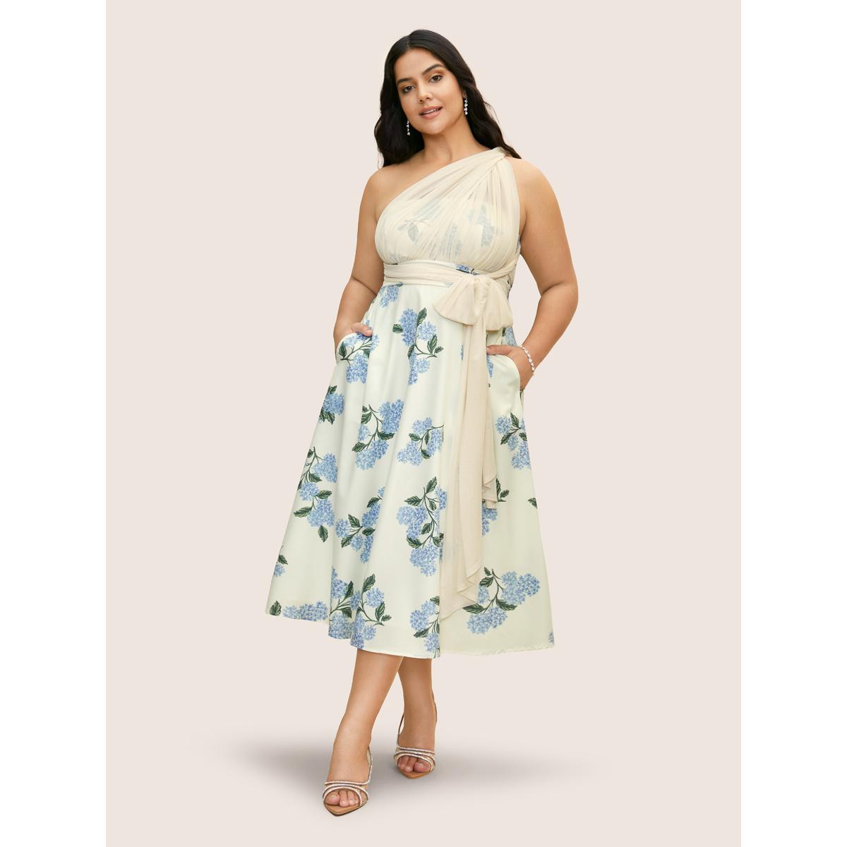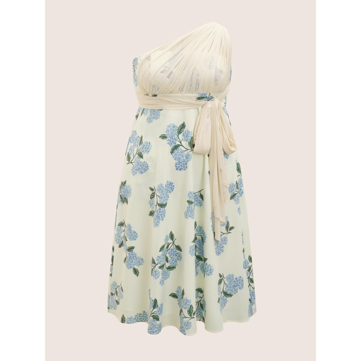 Plus Size Everywhere Dress - Floral Breathable Gauze Shoulder Dress LightBlue Women Elegant One-shoulder neck Sleeveless Curvy BloomChic 12/L