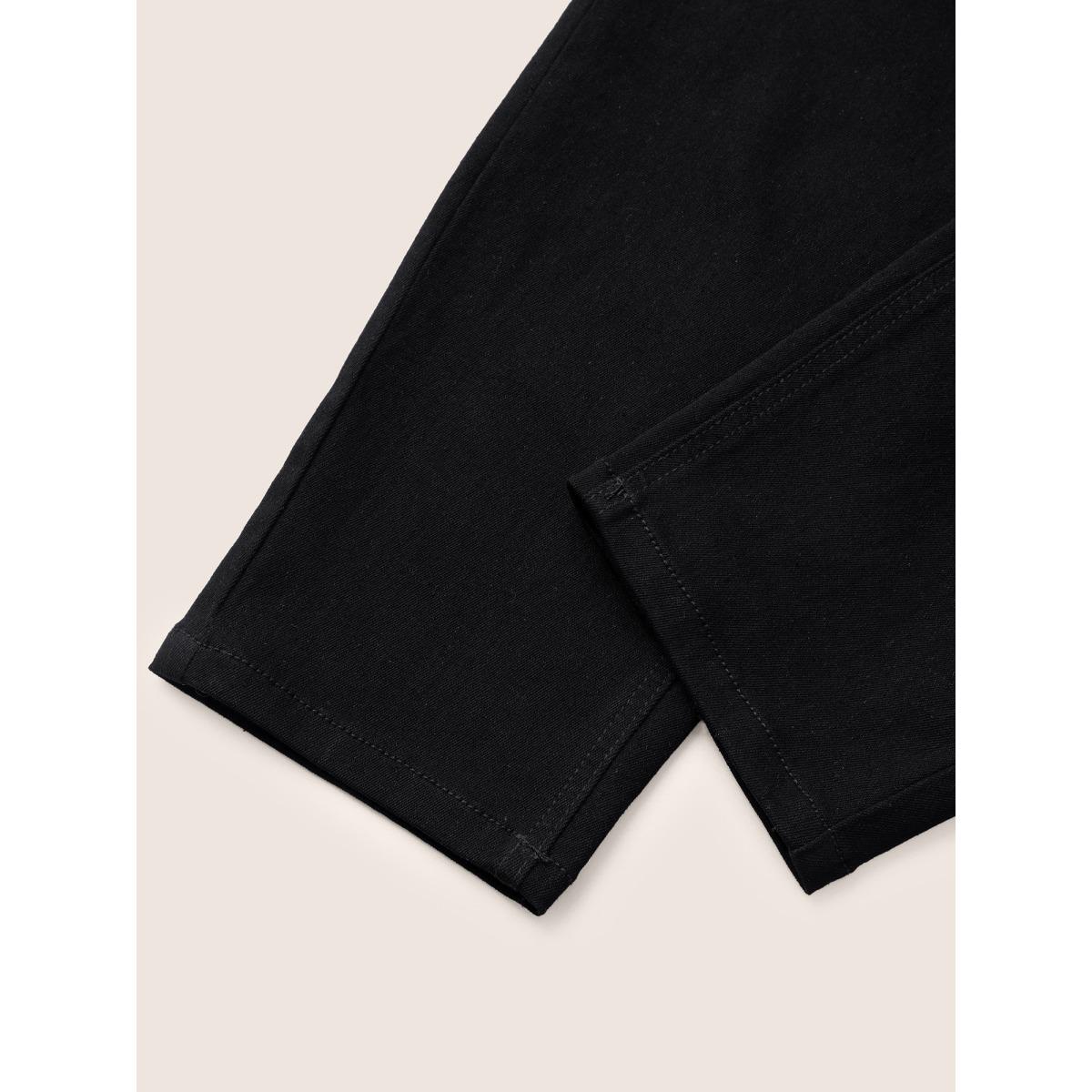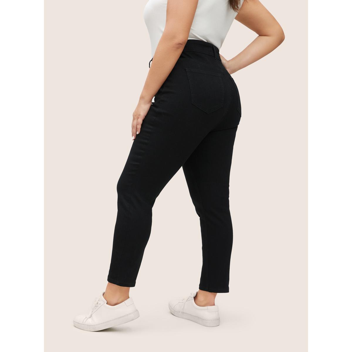 Plus Size Solid High Rise Black Wash Jeans Women Black Casual Plain Plain High stretch Pocket Jeans BloomChic 10/M