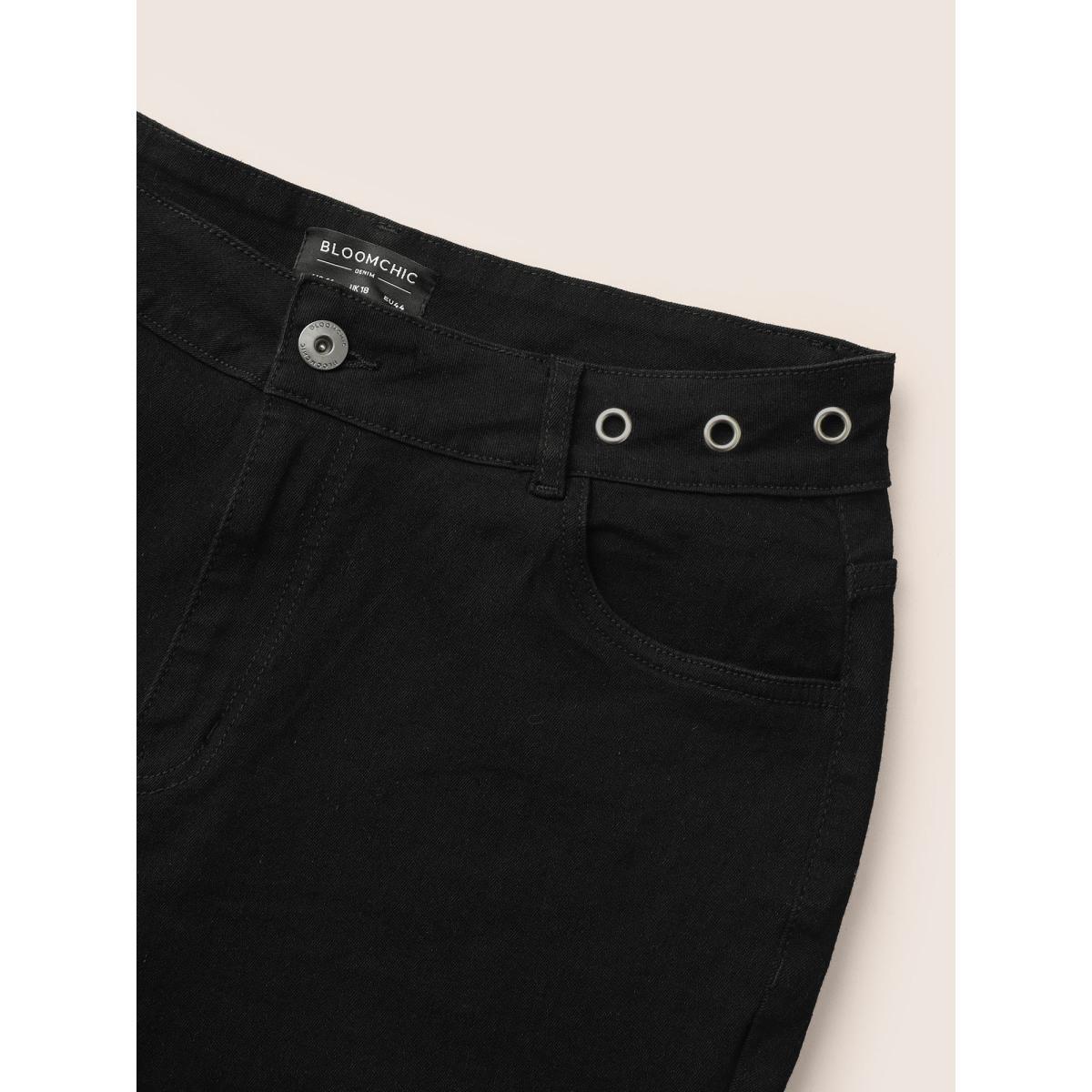 Plus Size Eyelet Detail Black Wash Ankle Jeans Women Black Casual Plain Non High stretch Slanted pocket Jeans BloomChic 20/2X
